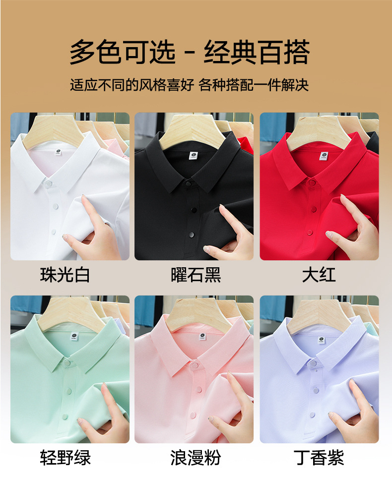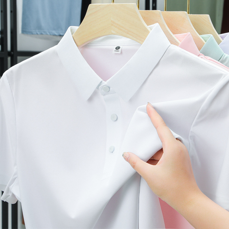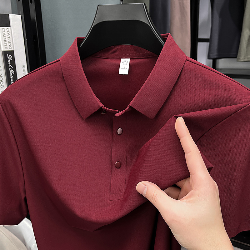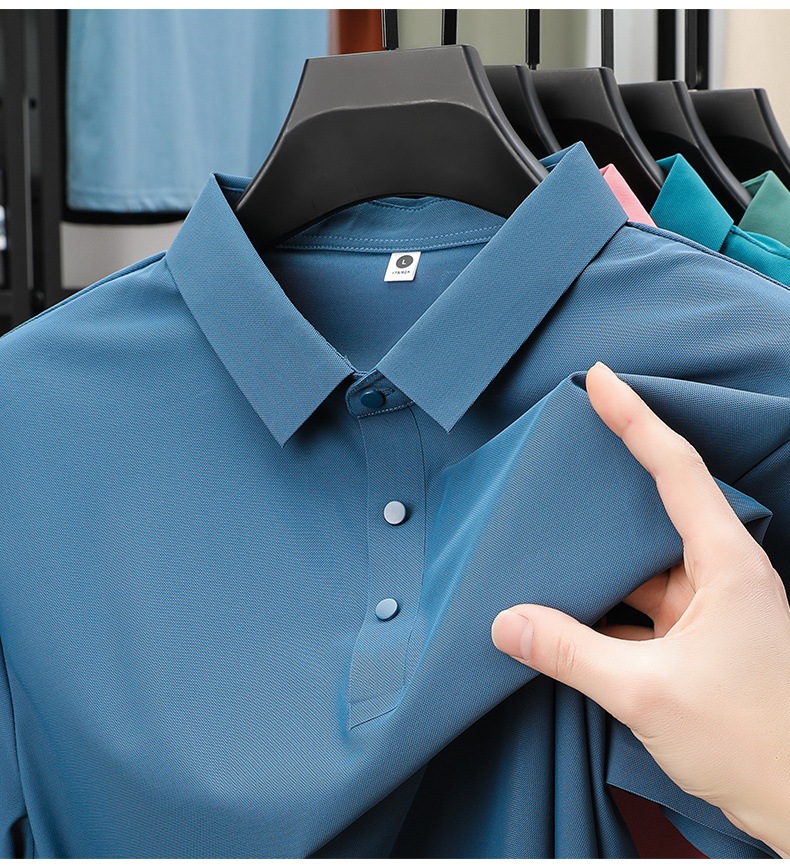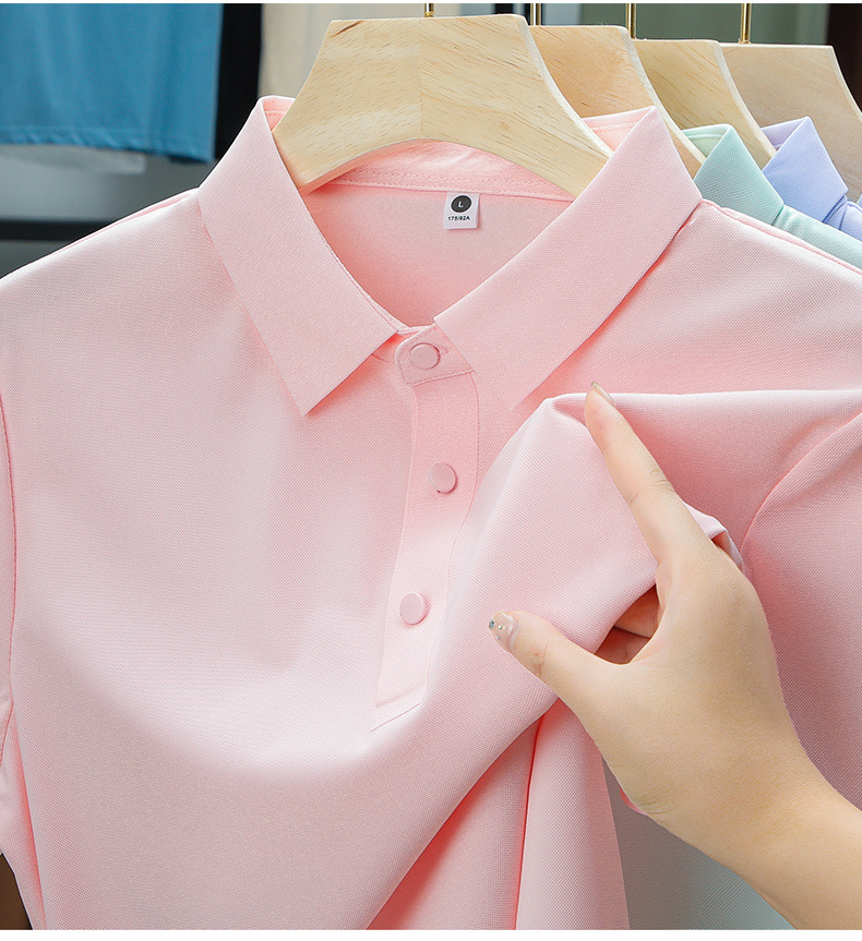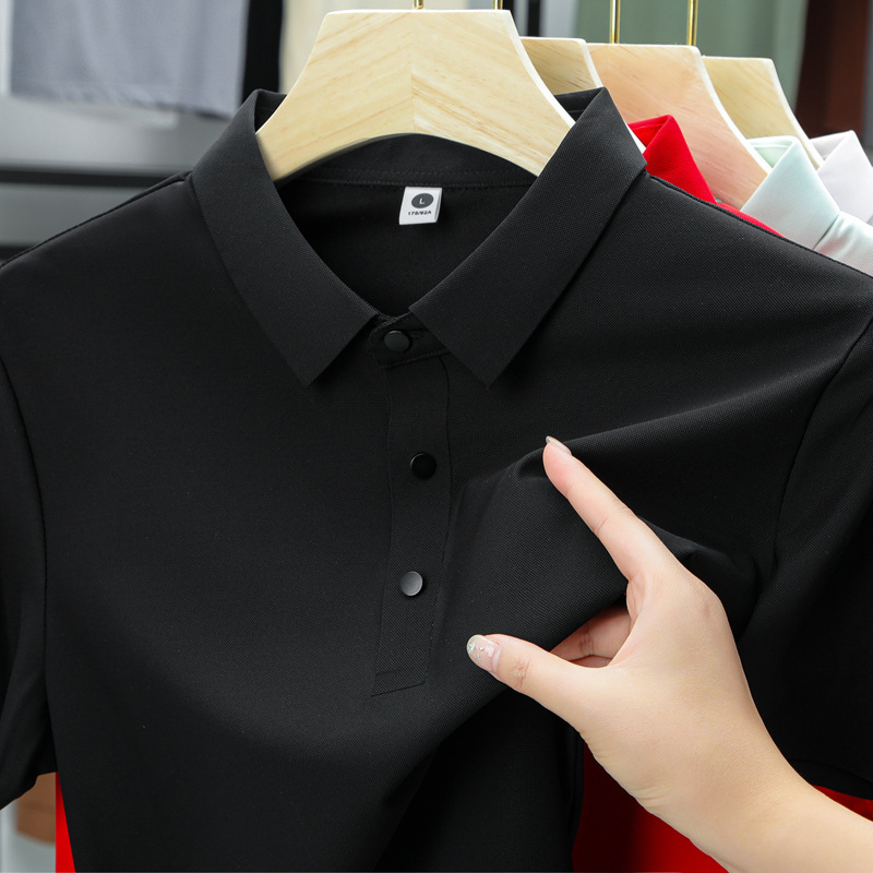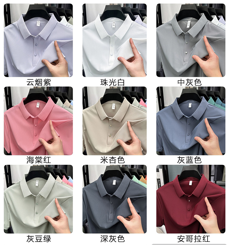 남성용 여름 반팔 티셔츠, 비즈니스 캐주얼 아이스 실크 라펠 폴로 셔츠, 남성용 및 여성용 심리스 티셔츠, 고품질스토어 가기