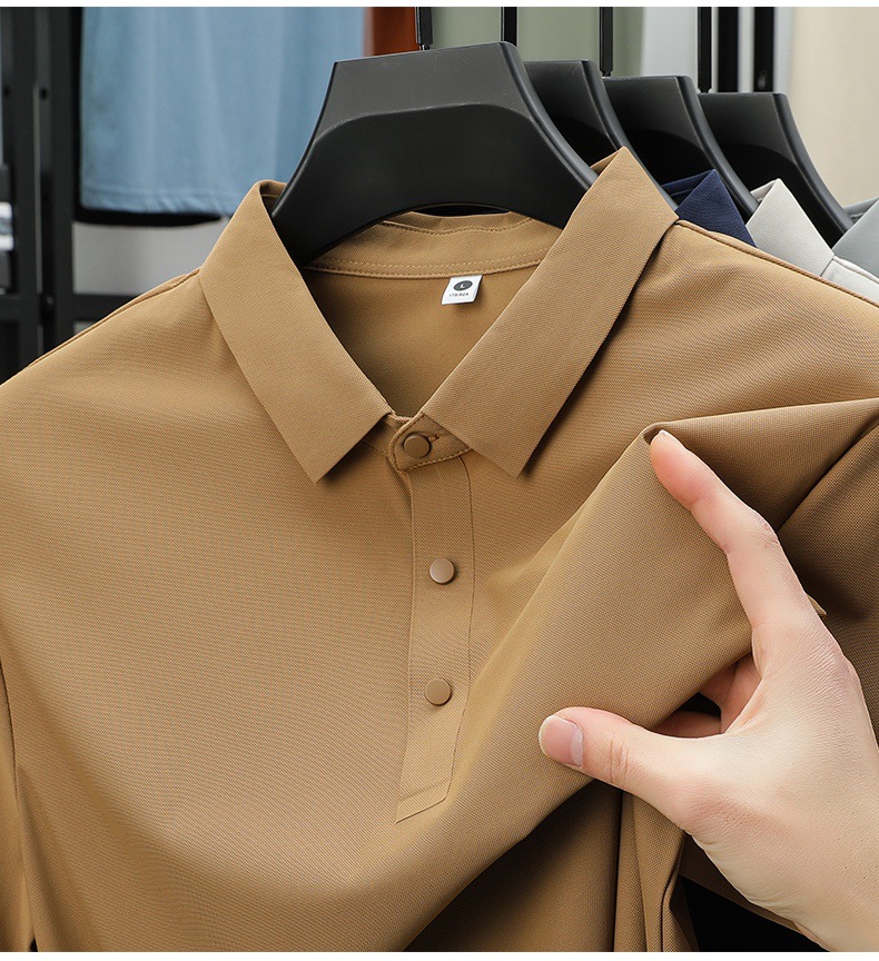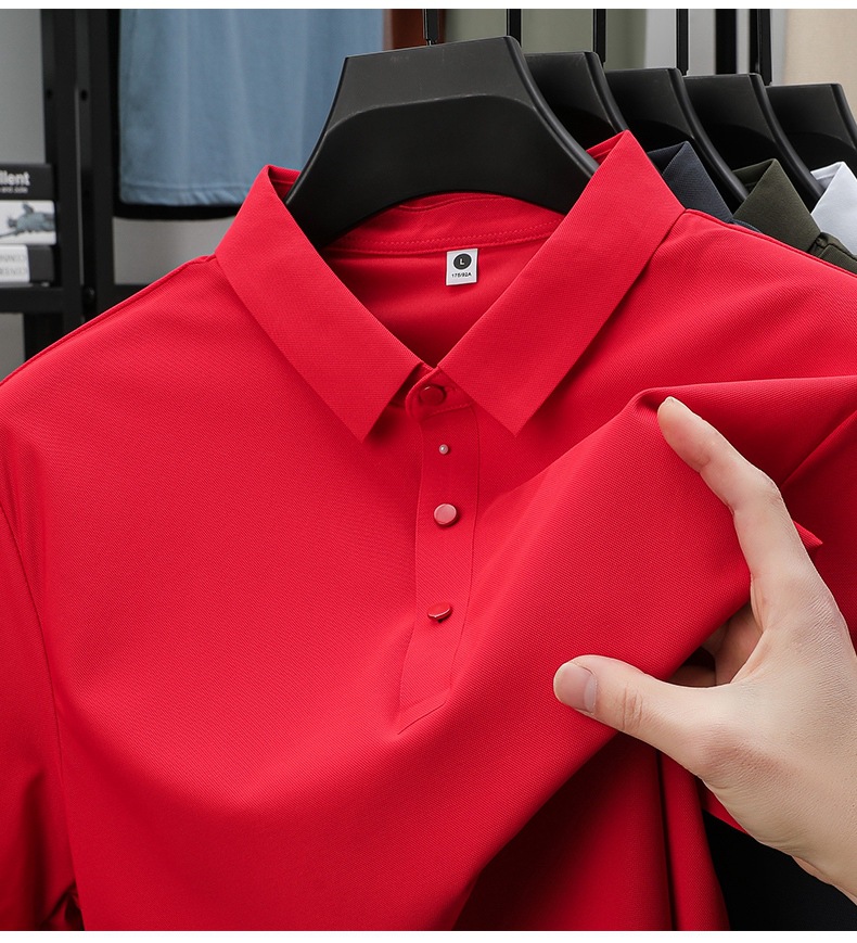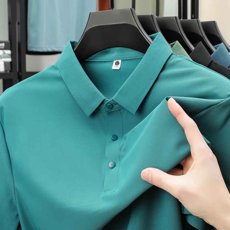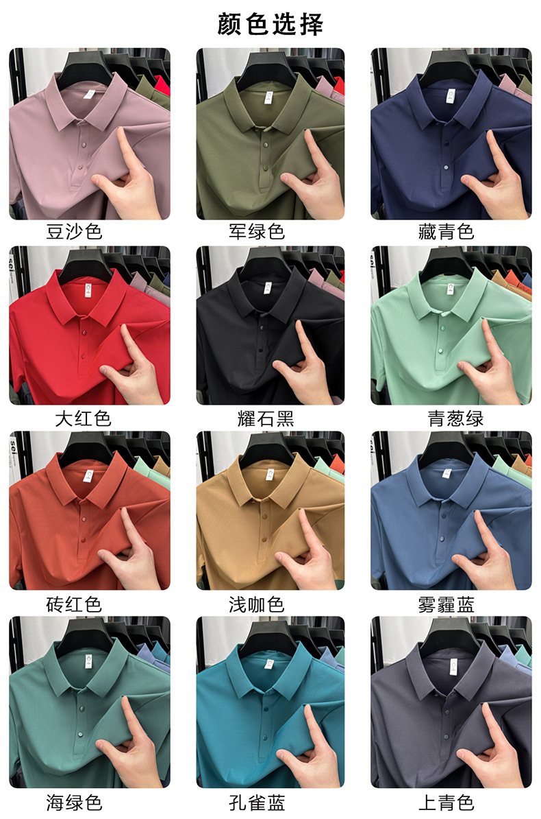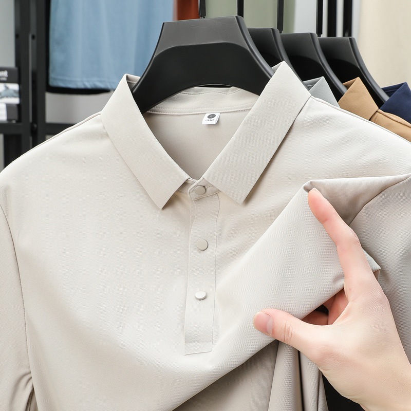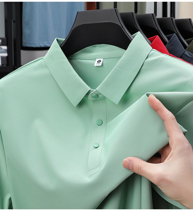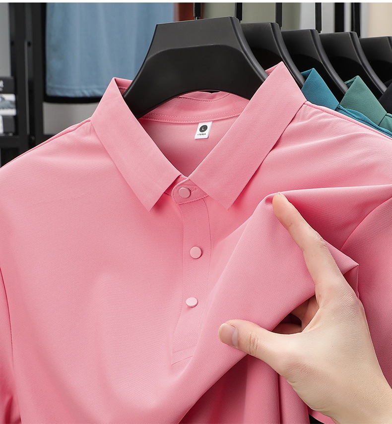 남성용 여름 반팔 티셔츠, 비즈니스 캐주얼 아이스 실크 라펠 폴로 셔츠, 남성용 및 여성용 심리스 티셔츠, 고품질스토어 가기