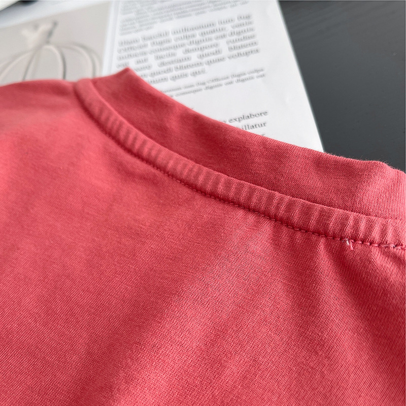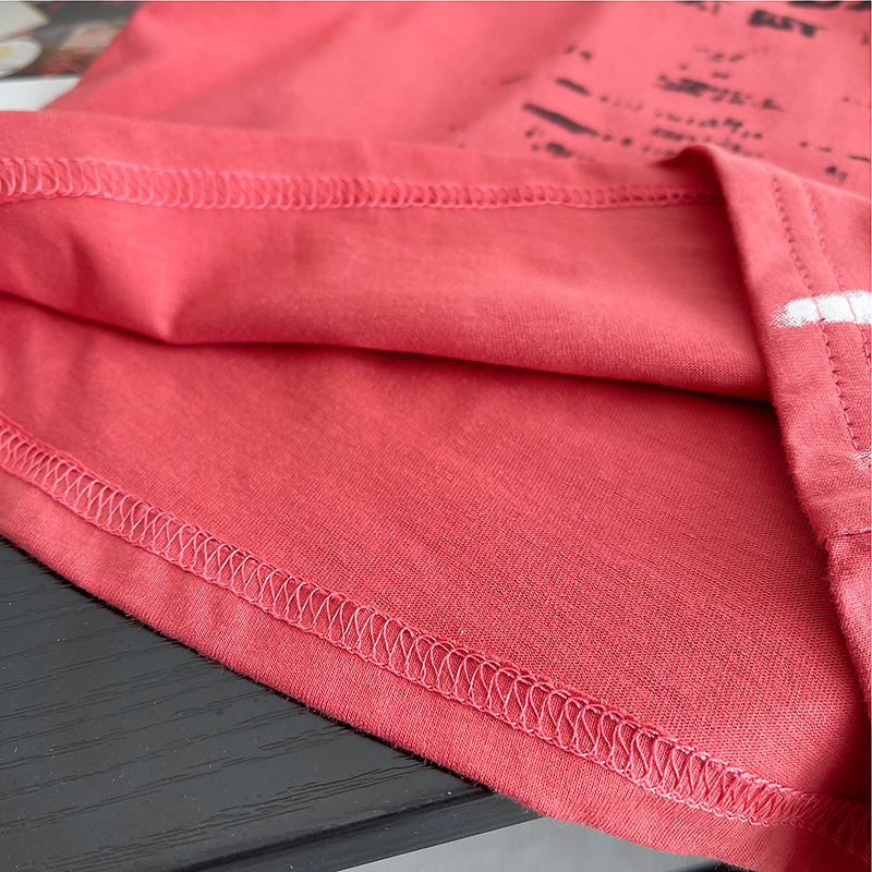 • 찢어진 레트로 라운드넥 반팔 슈트 로즈핑크