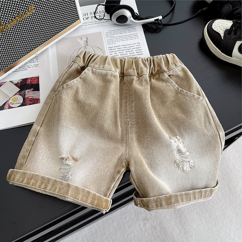 소년 세트 여름 새 여름 짧은 소매 2025 홀 복고풍 둥근 목 투피스 느슨한 머리 생성스토어 가기