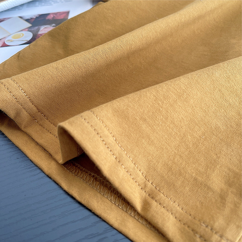 • 찢어진 빈티지 라운드넥 반팔 슈트 옐로우 브라운