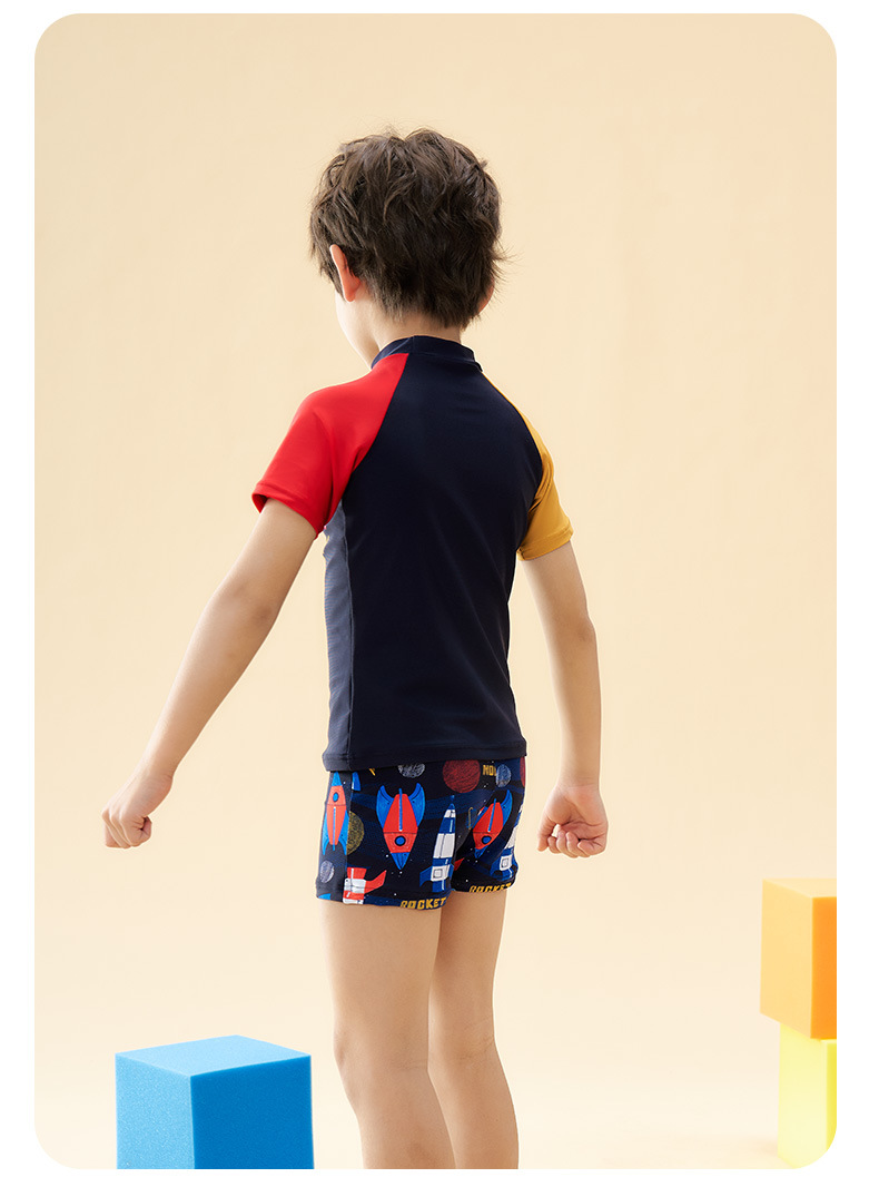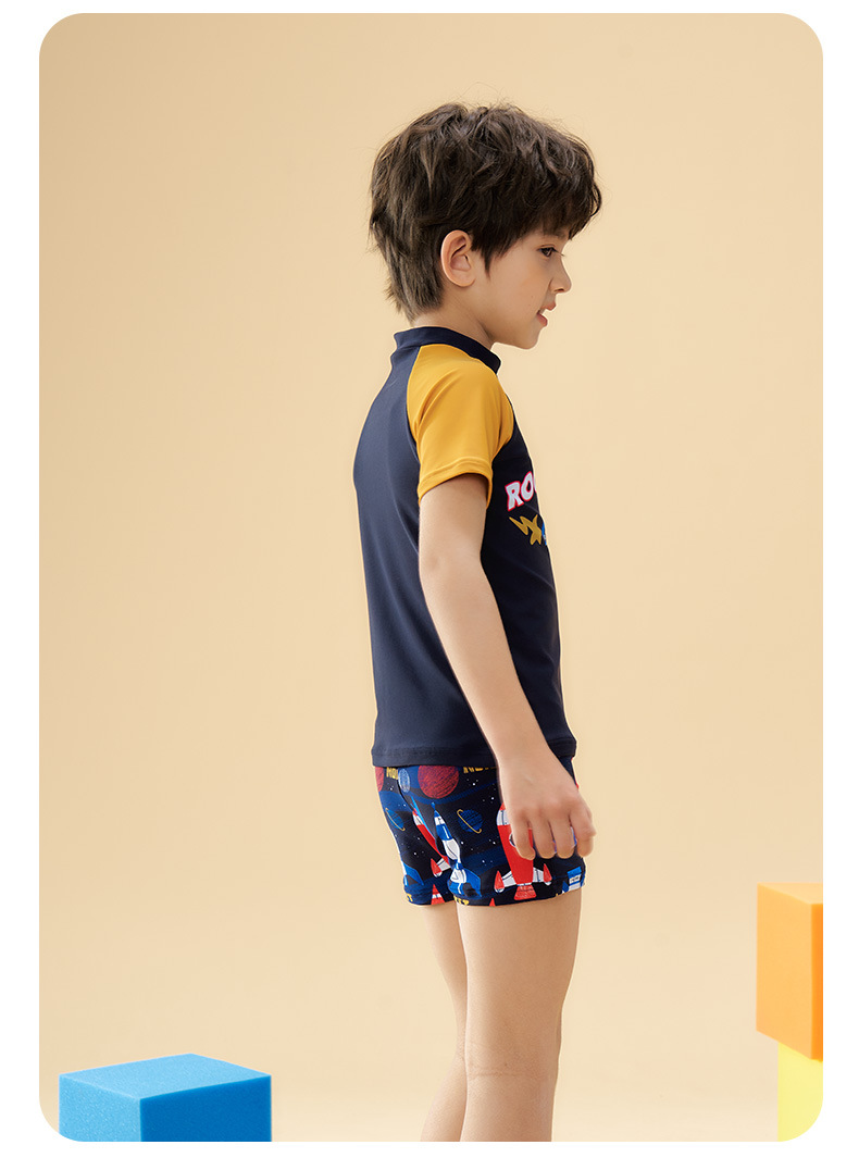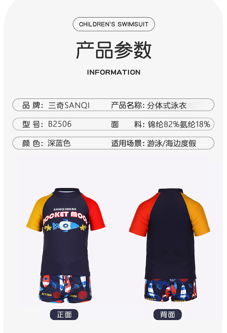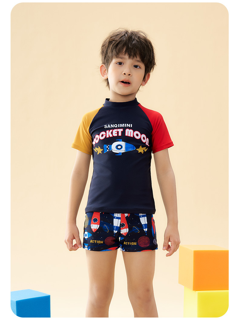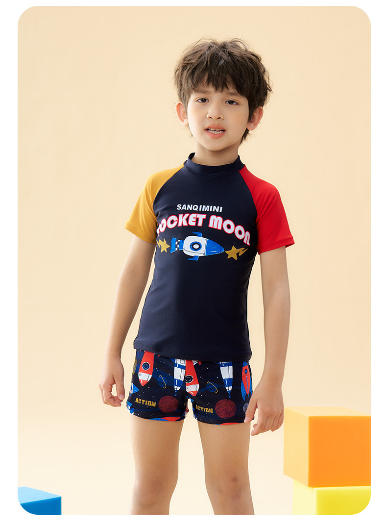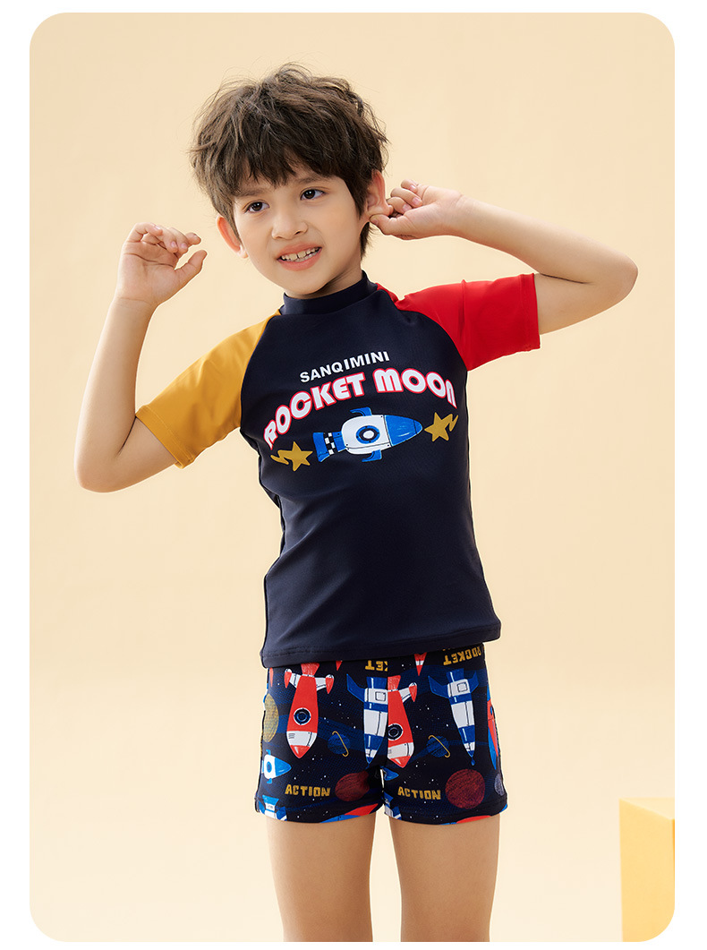 Sanqi 어린이 수영복 소년 스플릿 중형 및 대형 아동 수영복 2025 새로운 반팔 복서 속건성 소년 수영복