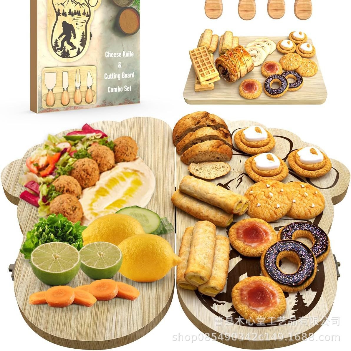 크리 에이 티브 대나무 접이식 치즈 트레이 가정용 단단한 나무 큰 발 괴물 디너 트레이 나무 피자 트레이 (칼 포함)