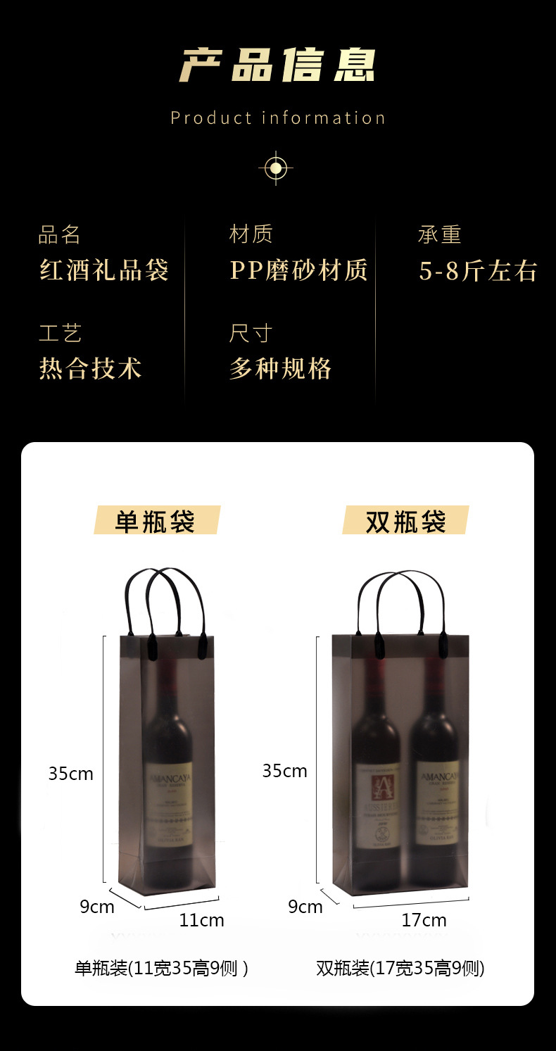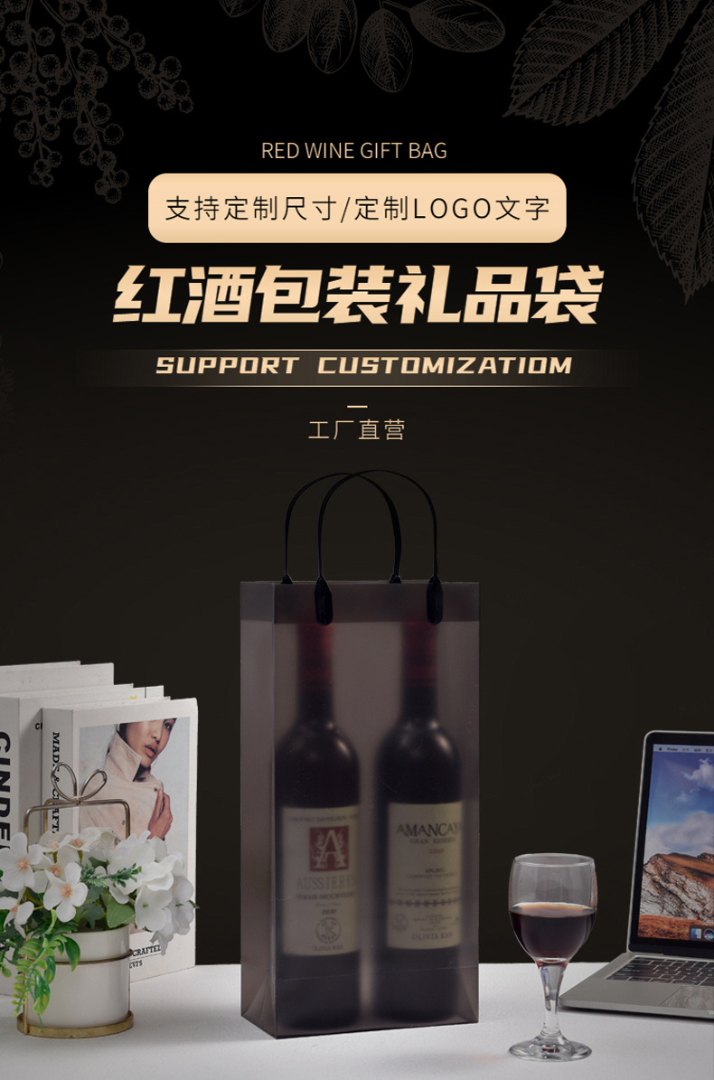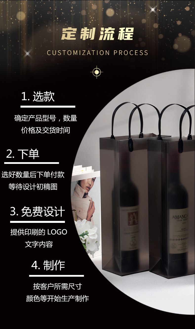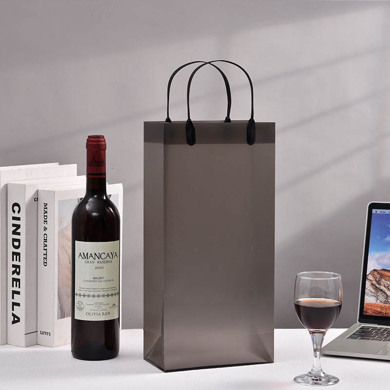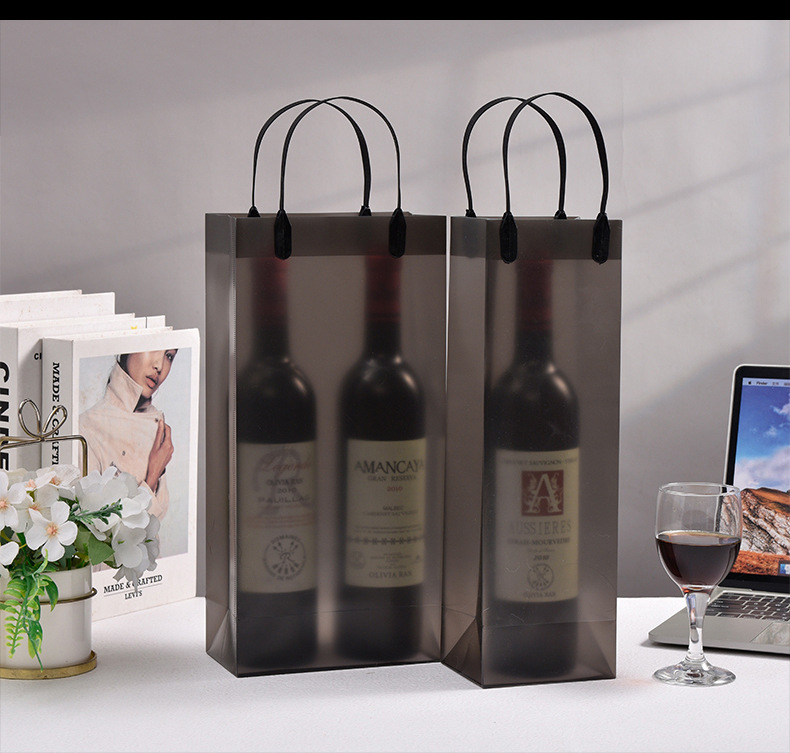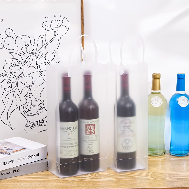 맞춤형 PP 투명 핸드백, 고급 레드 와인 가방, 싱글 및 더블 와인 가방, 인쇄된 로고, 주류 포장 선물 가방스토어 가기