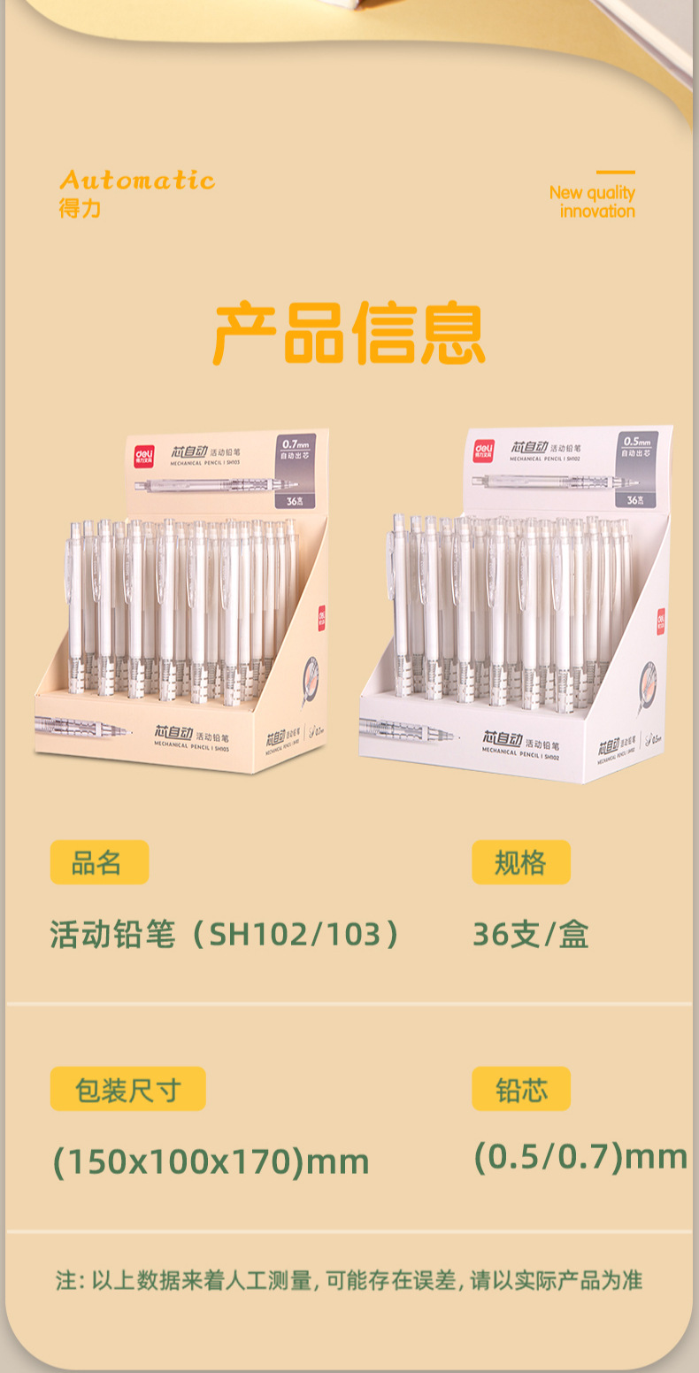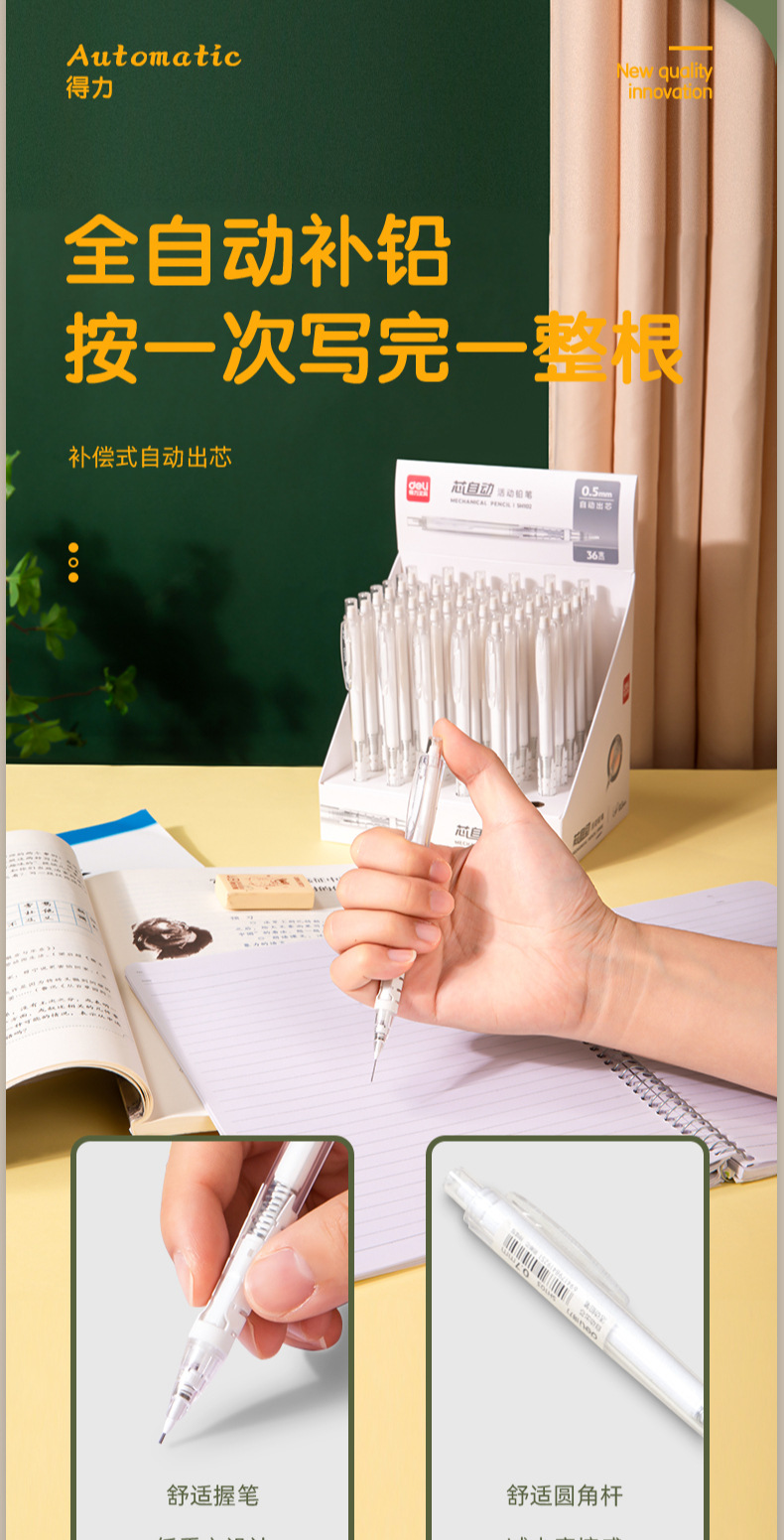 델리 SH102/SH103 자동연필 0.5mm 푸시연필 0.7mm 지우개가 있는 샤프펜슬스토어 가기