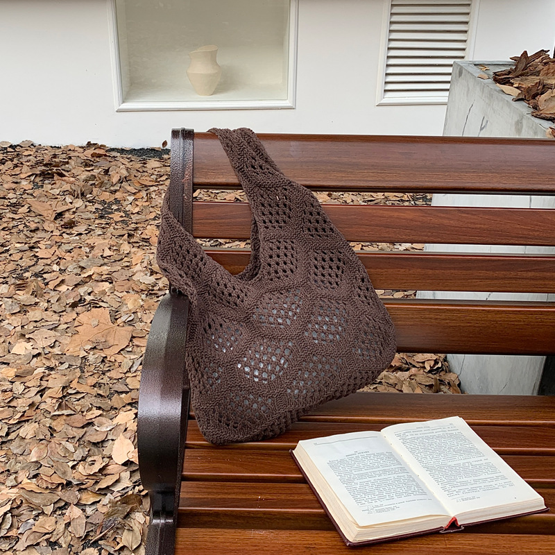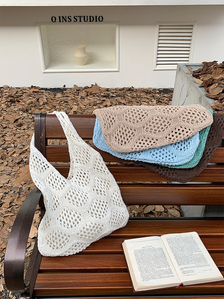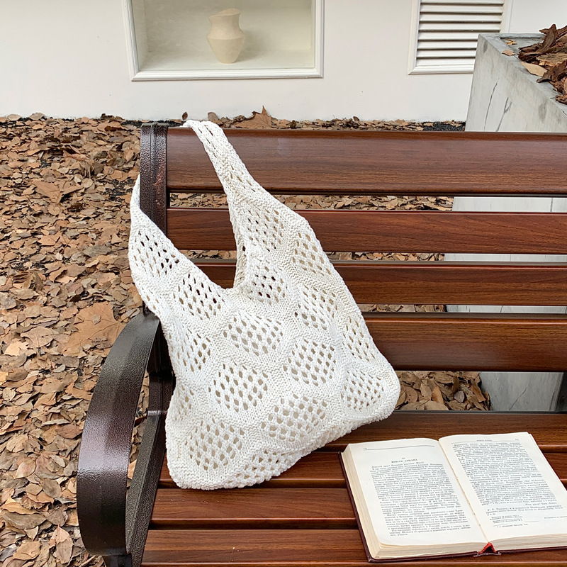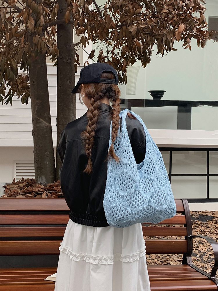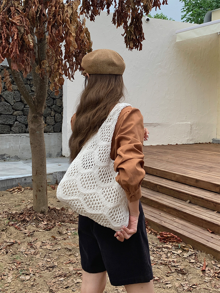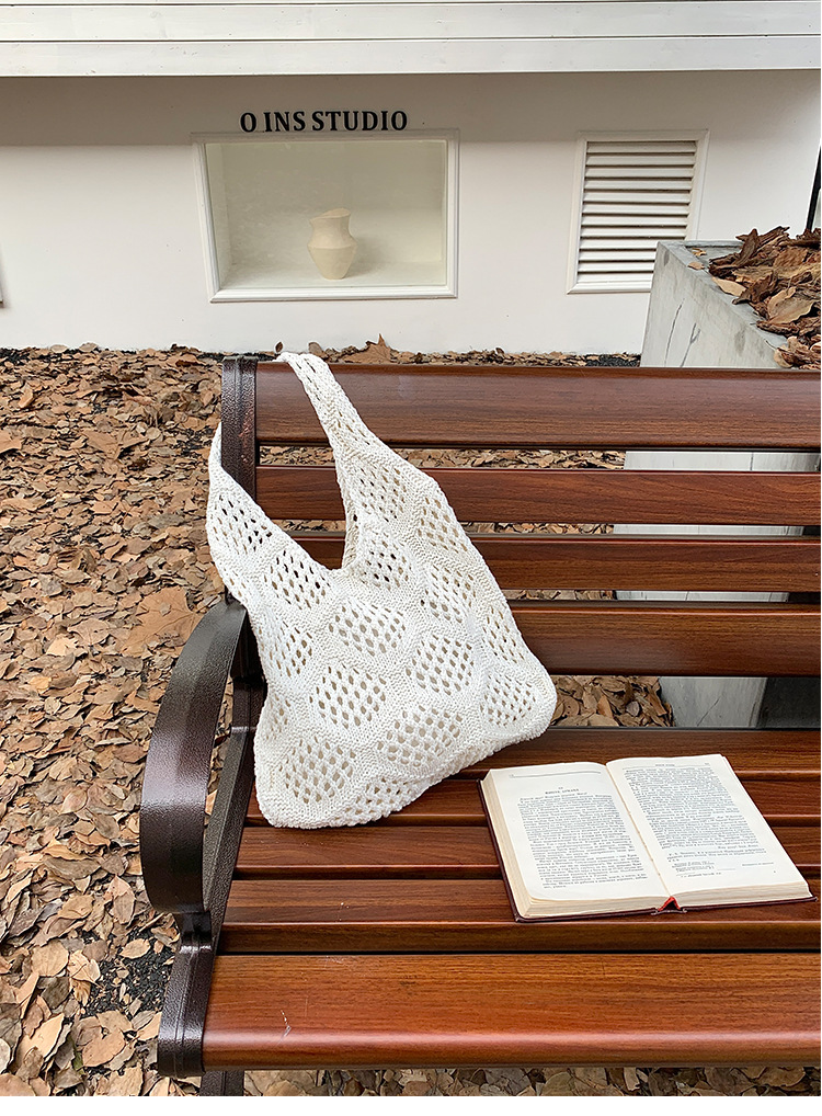 양모 여성용 가방 휴대용 어깨 가방 새첼 대용량 할로우 짠 마름모꼴 올매치 유행 여성 가방스토어 가기