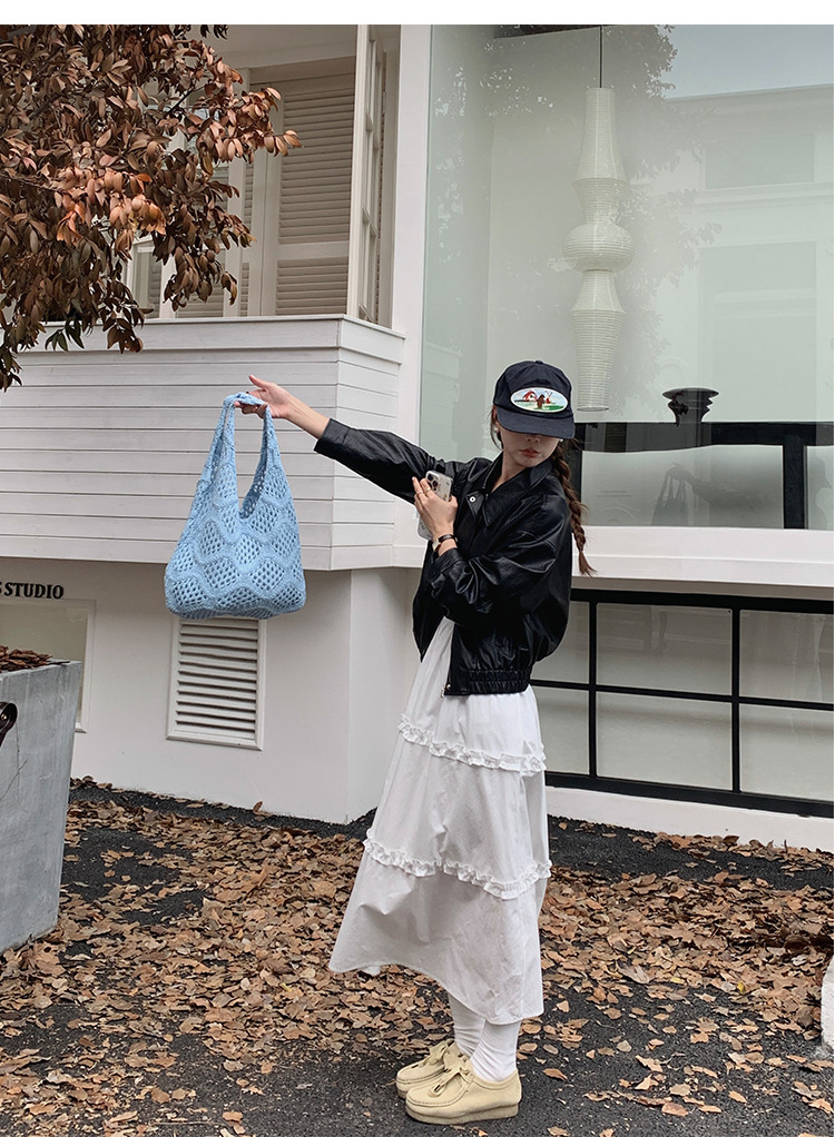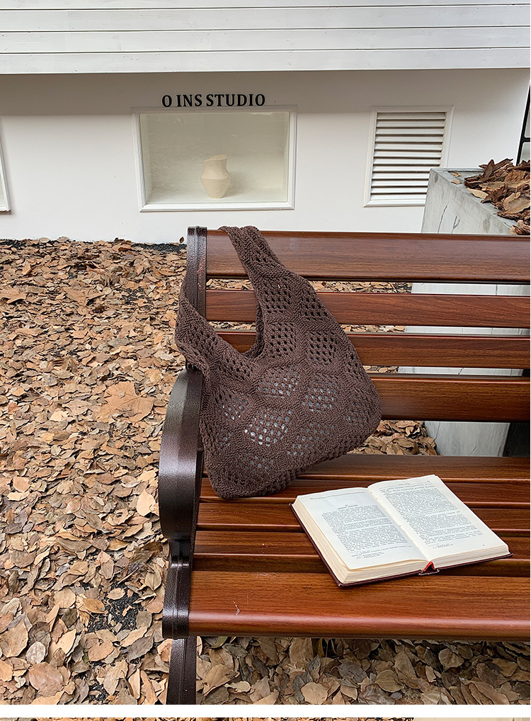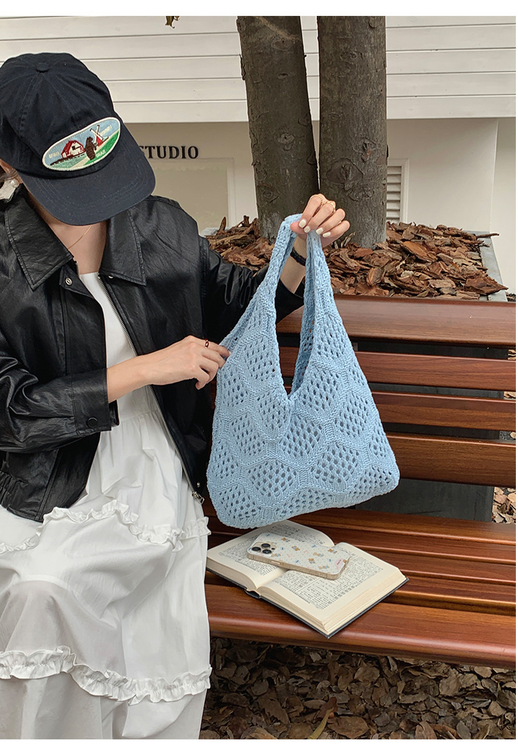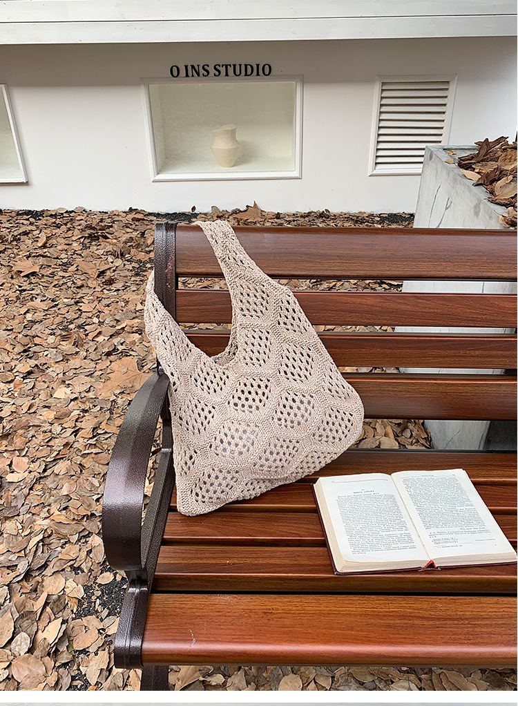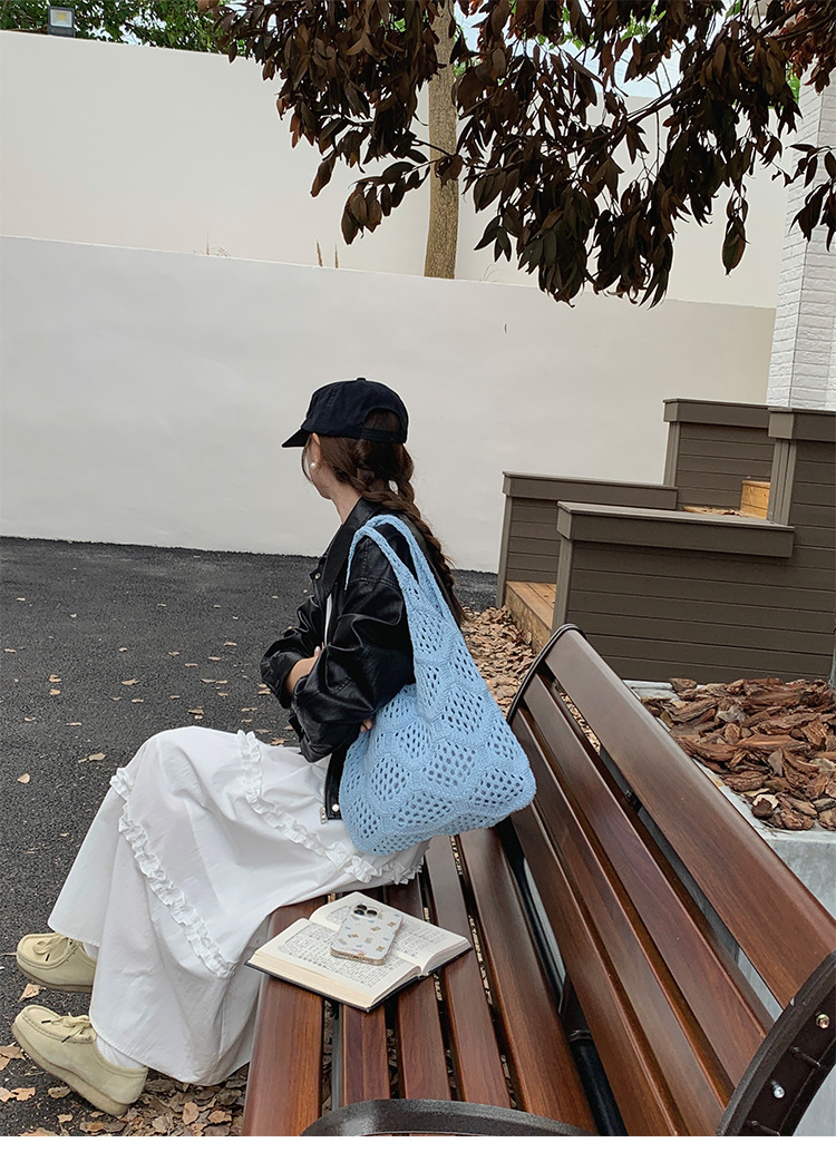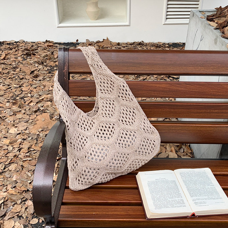 양모 여성용 가방 휴대용 어깨 가방 새첼 대용량 할로우 짠 마름모꼴 올매치 유행 여성 가방스토어 가기