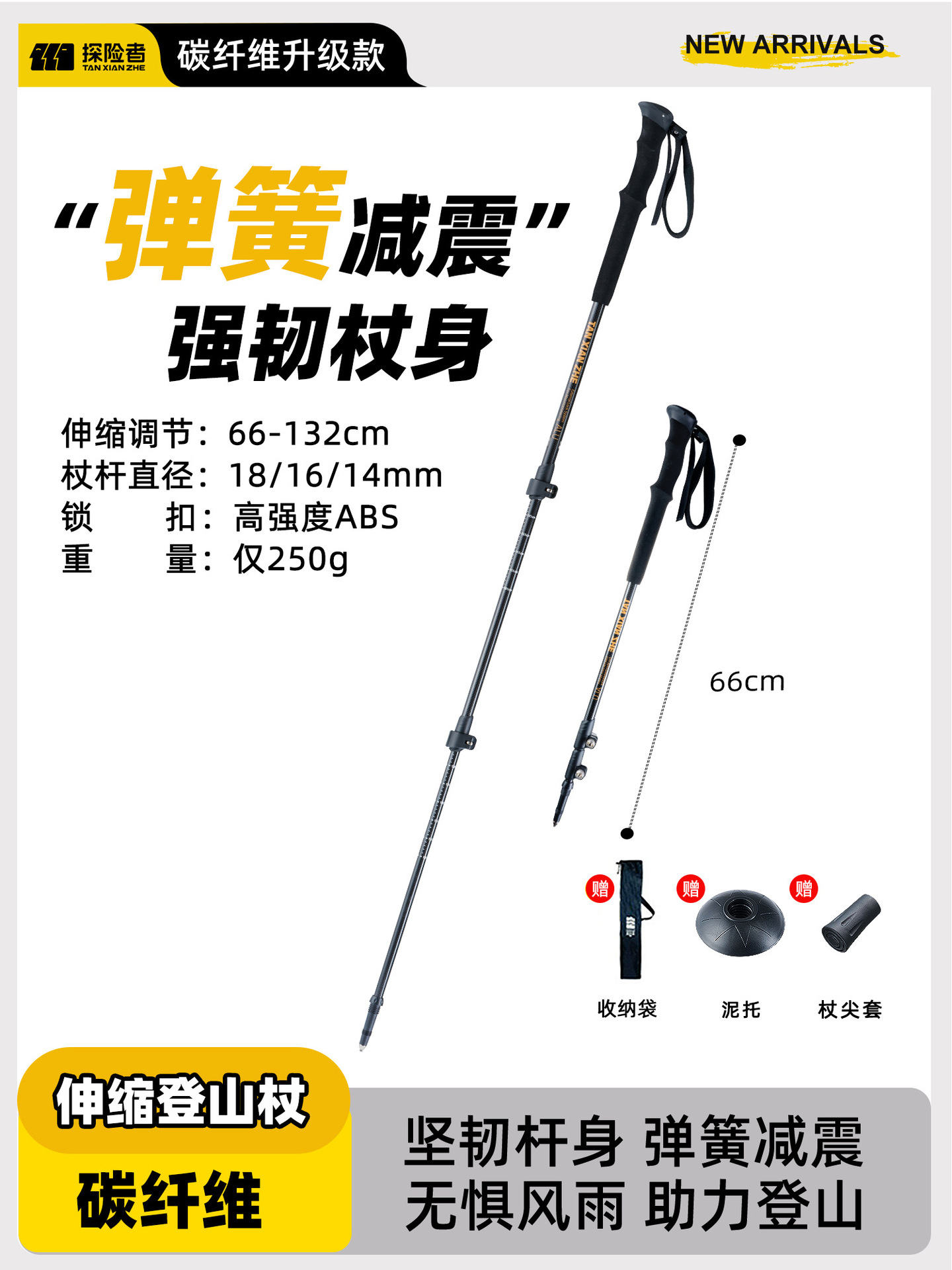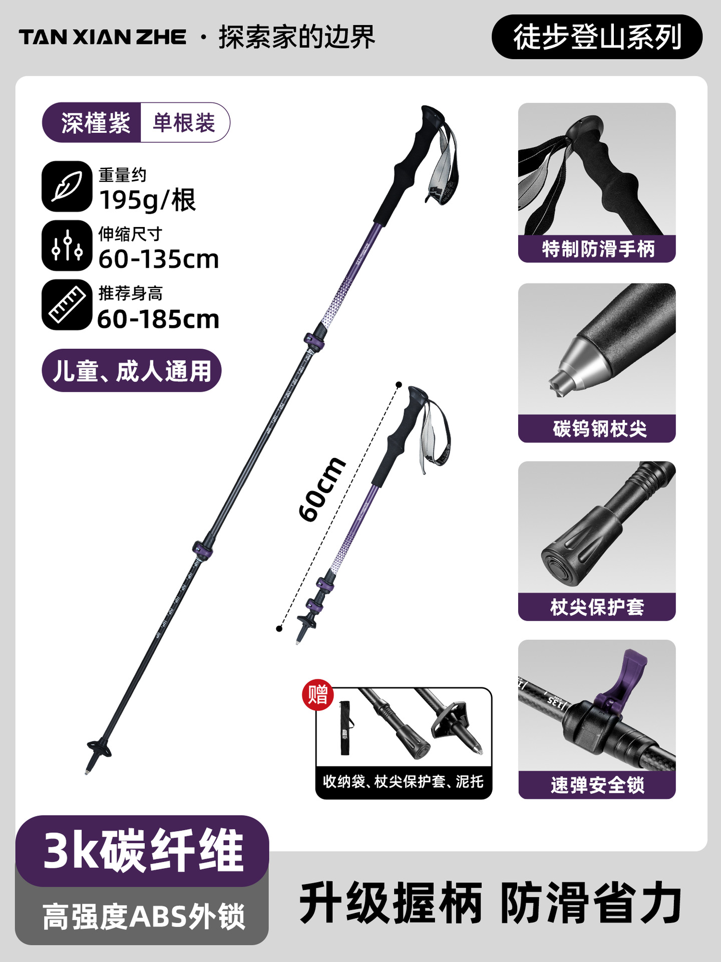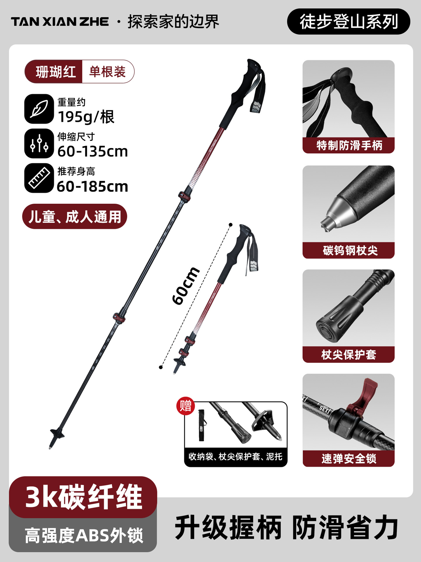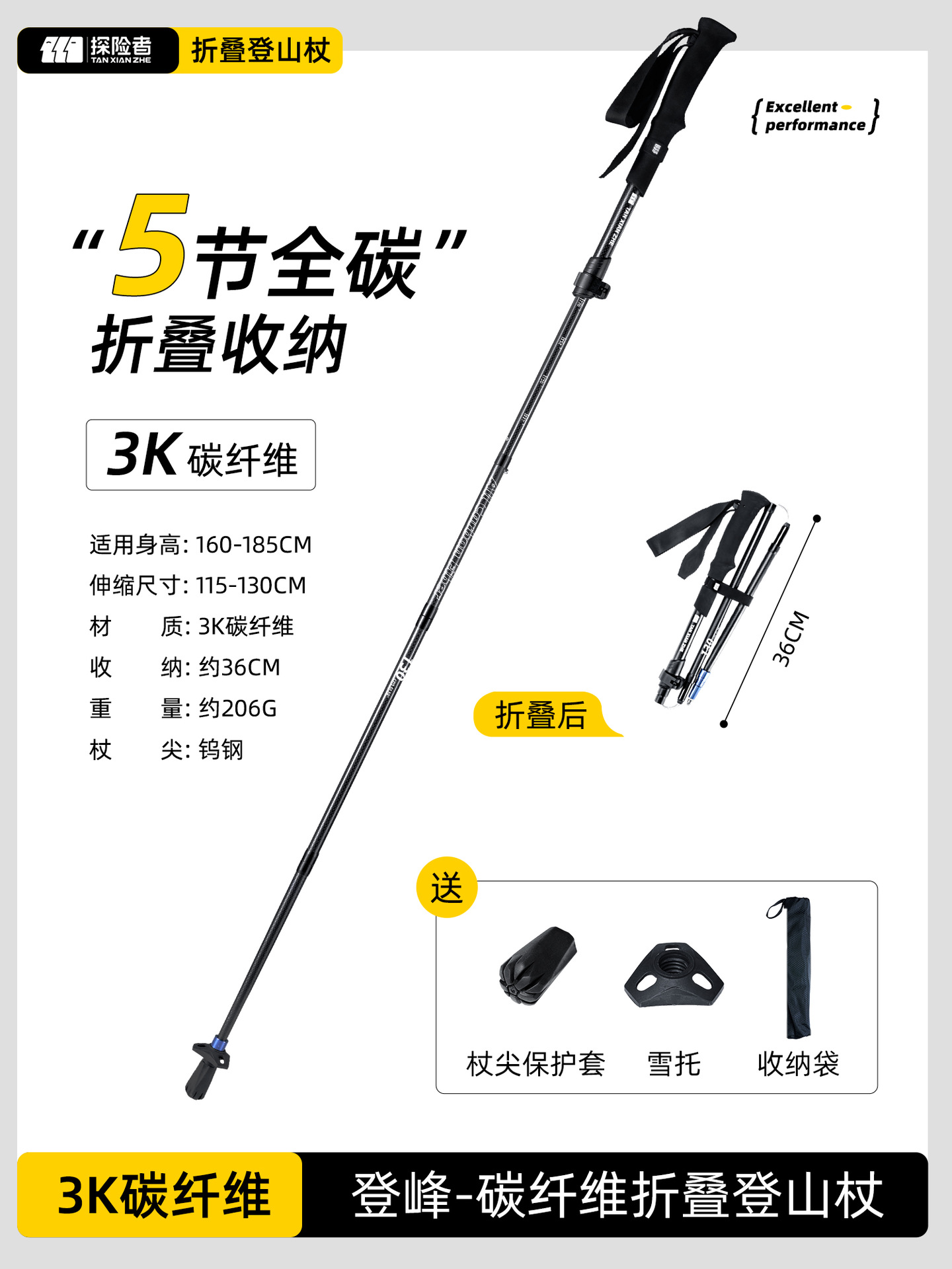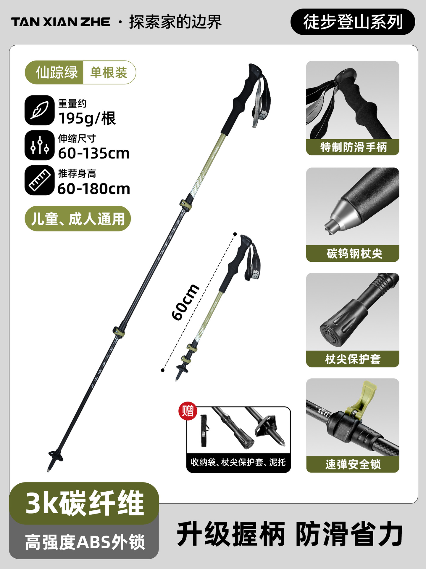 • 카본 컬러 [탄소섬유 접이식 트레킹 폴] 탄소강 합금 폴 팁 - 무게 206g에 불과