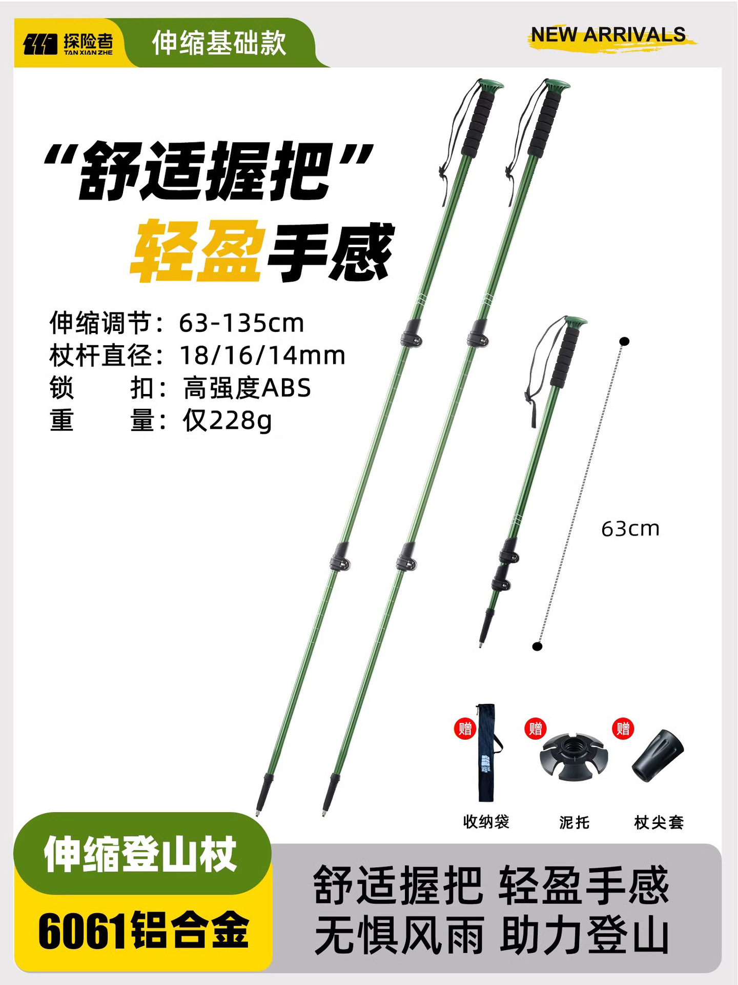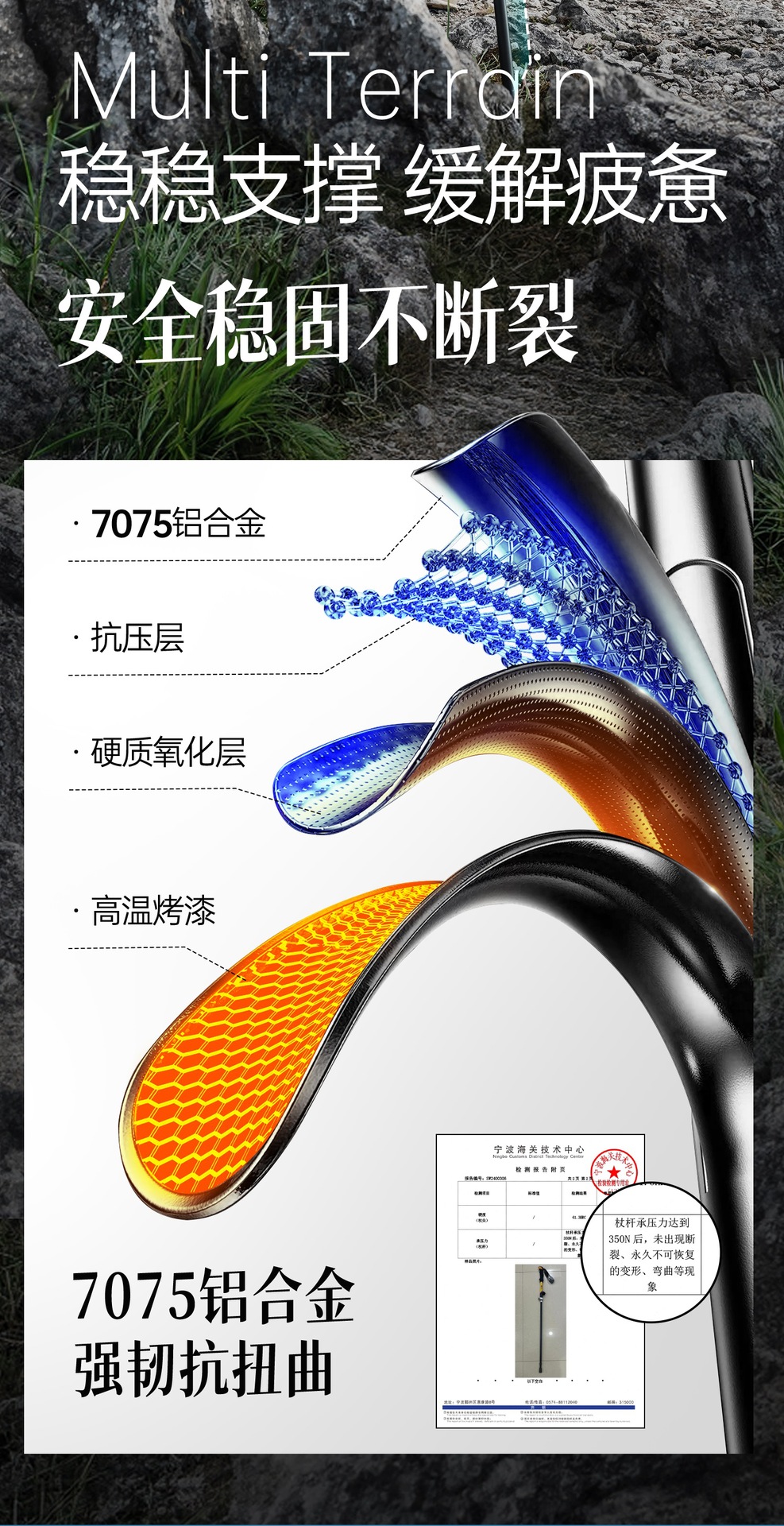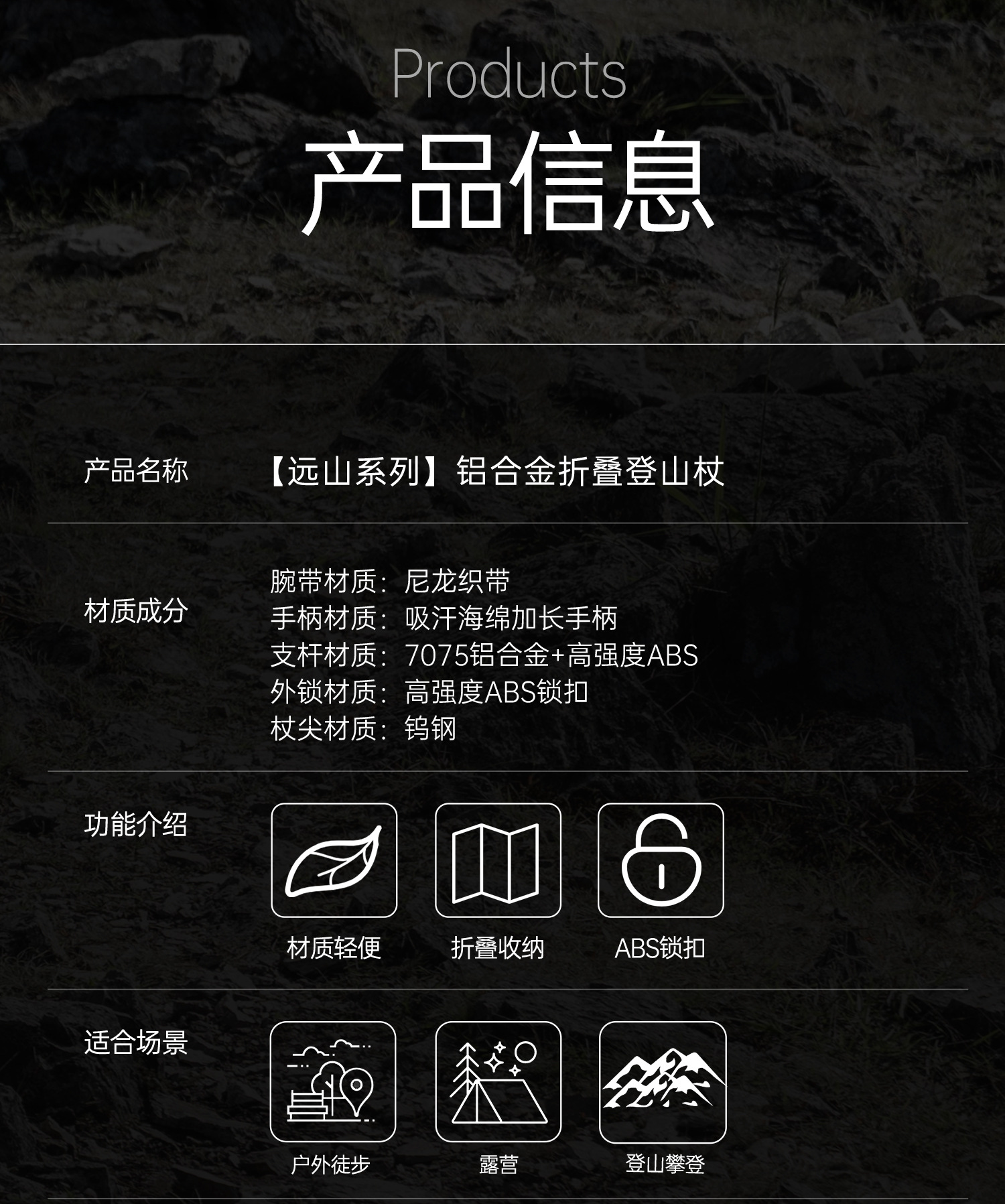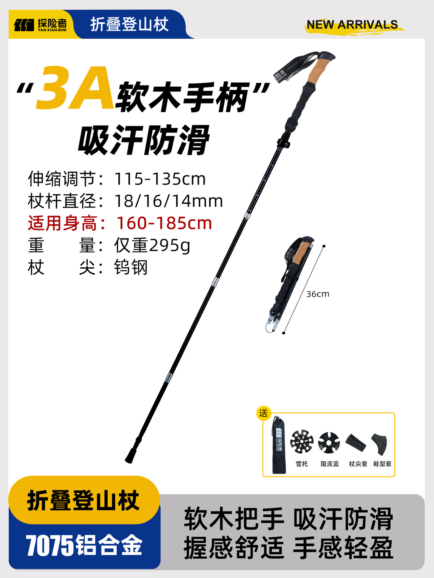 • 카본 컬러 [탄소섬유 접이식 트레킹 폴] 탄소강 합금 폴 팁 - 무게 206g에 불과