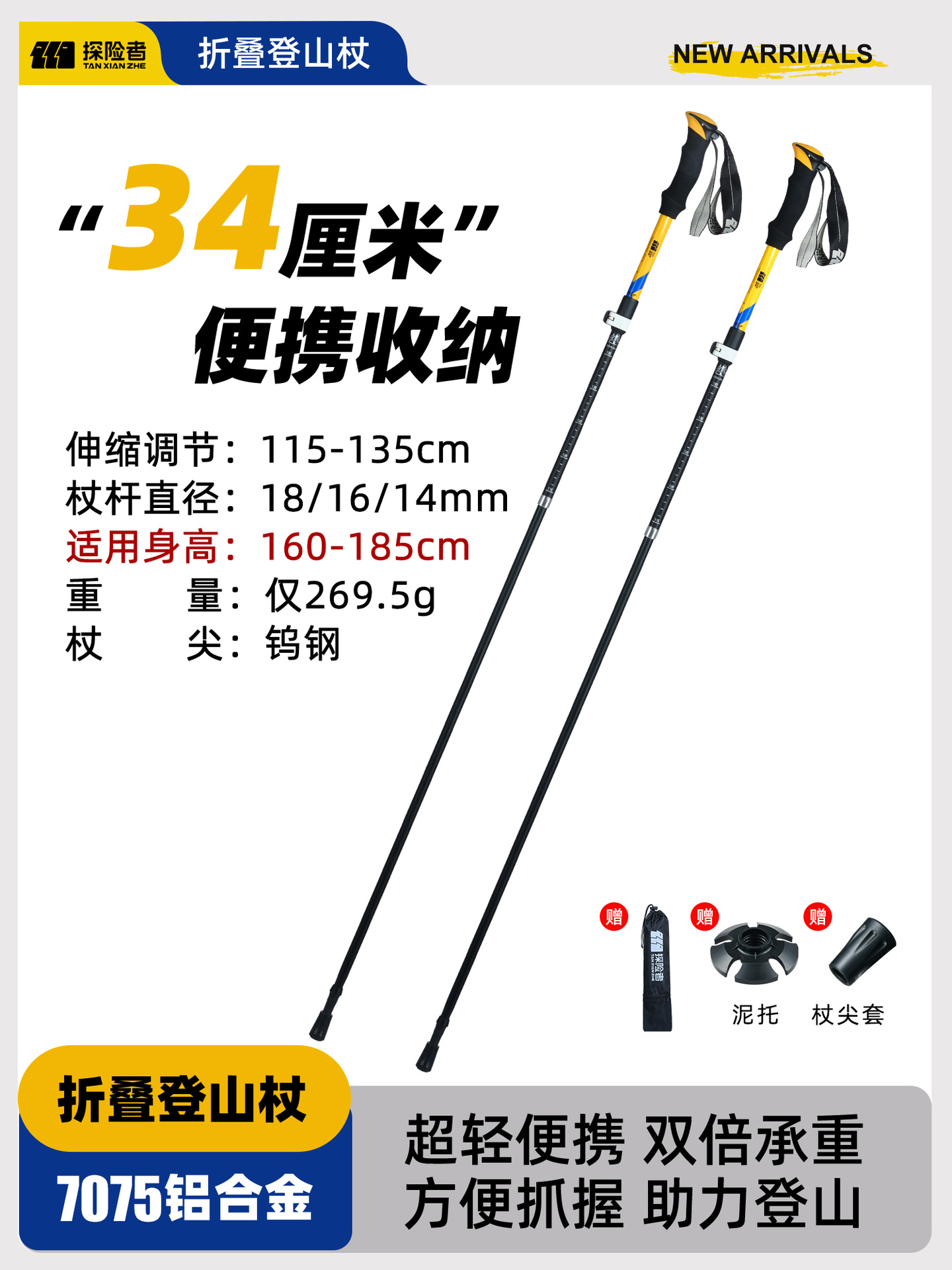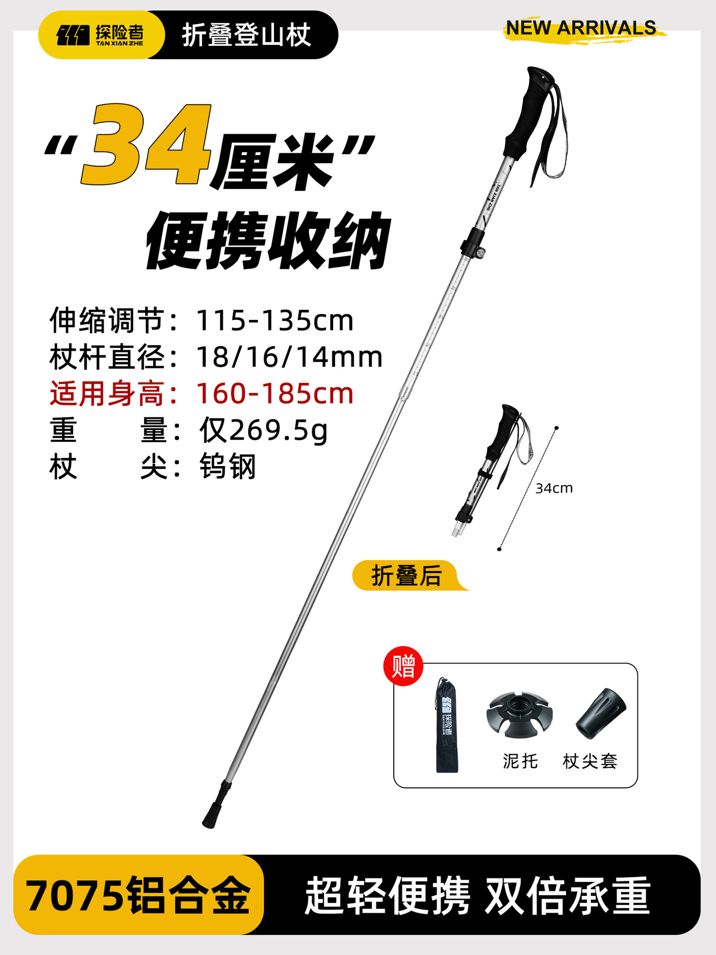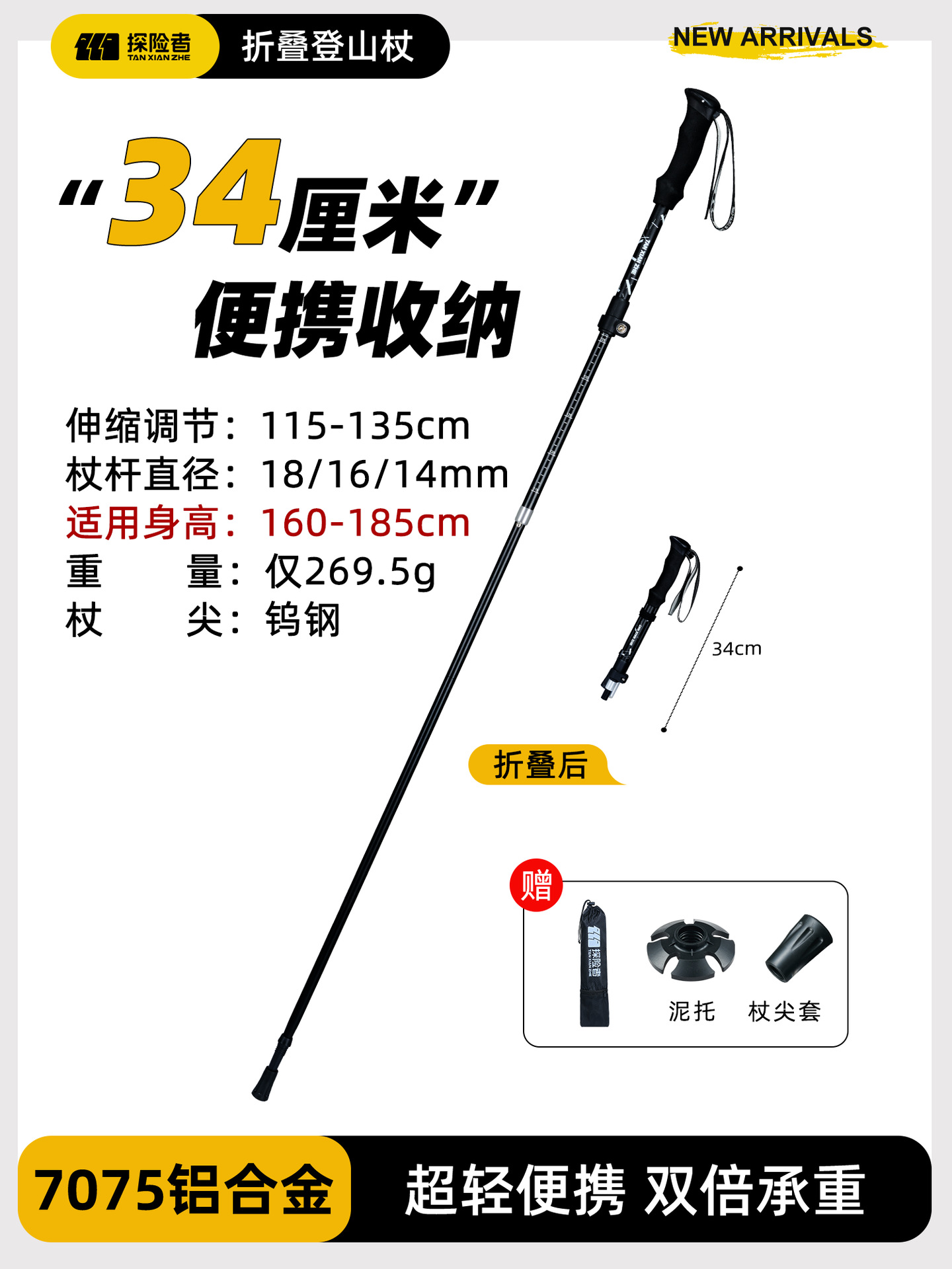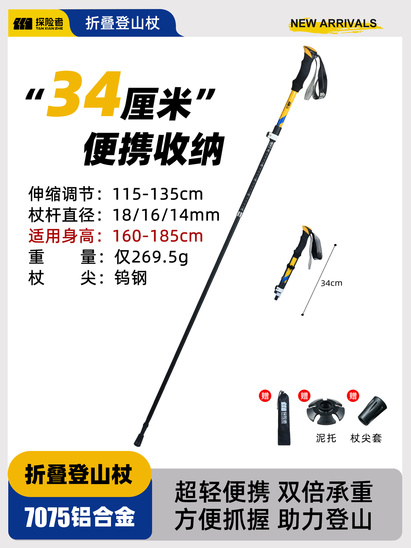 • [7075 알루미늄 합금 접이식 모델] 아름다운 노란색 [단 269.5g] (텅스텐 강철 지팡이 팁)