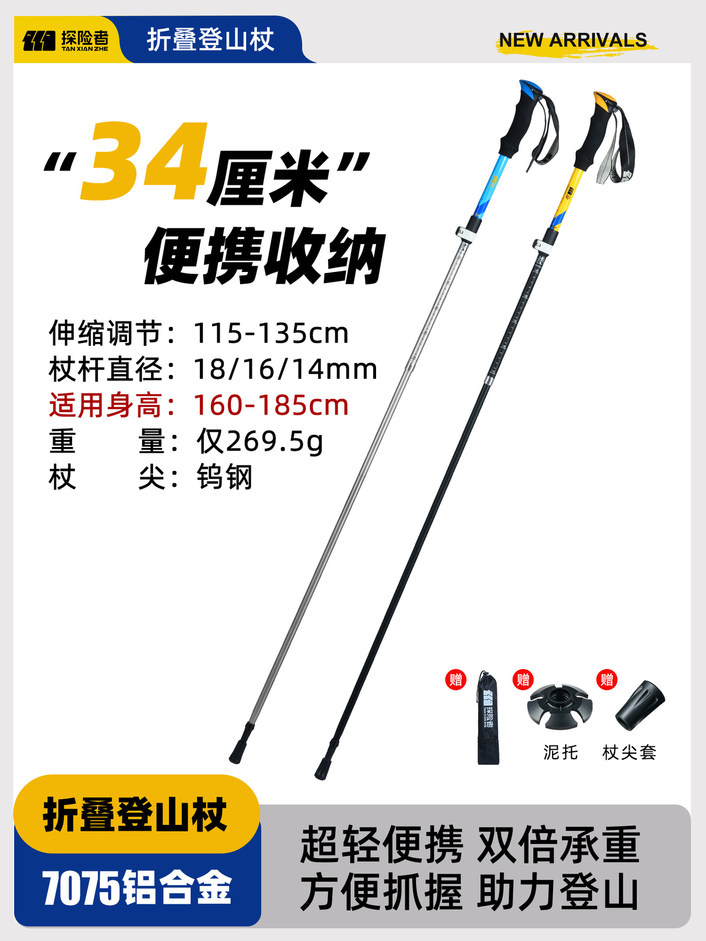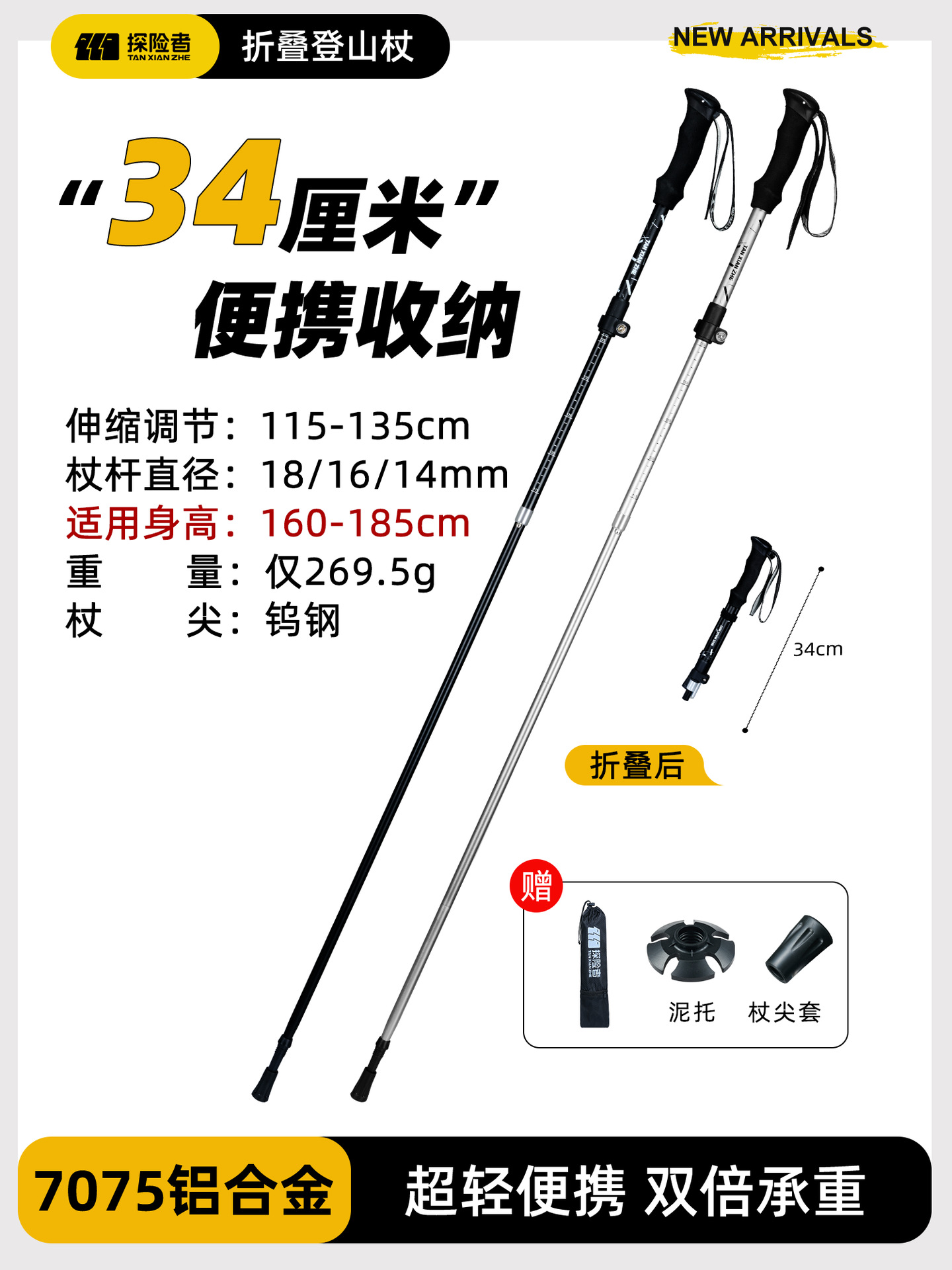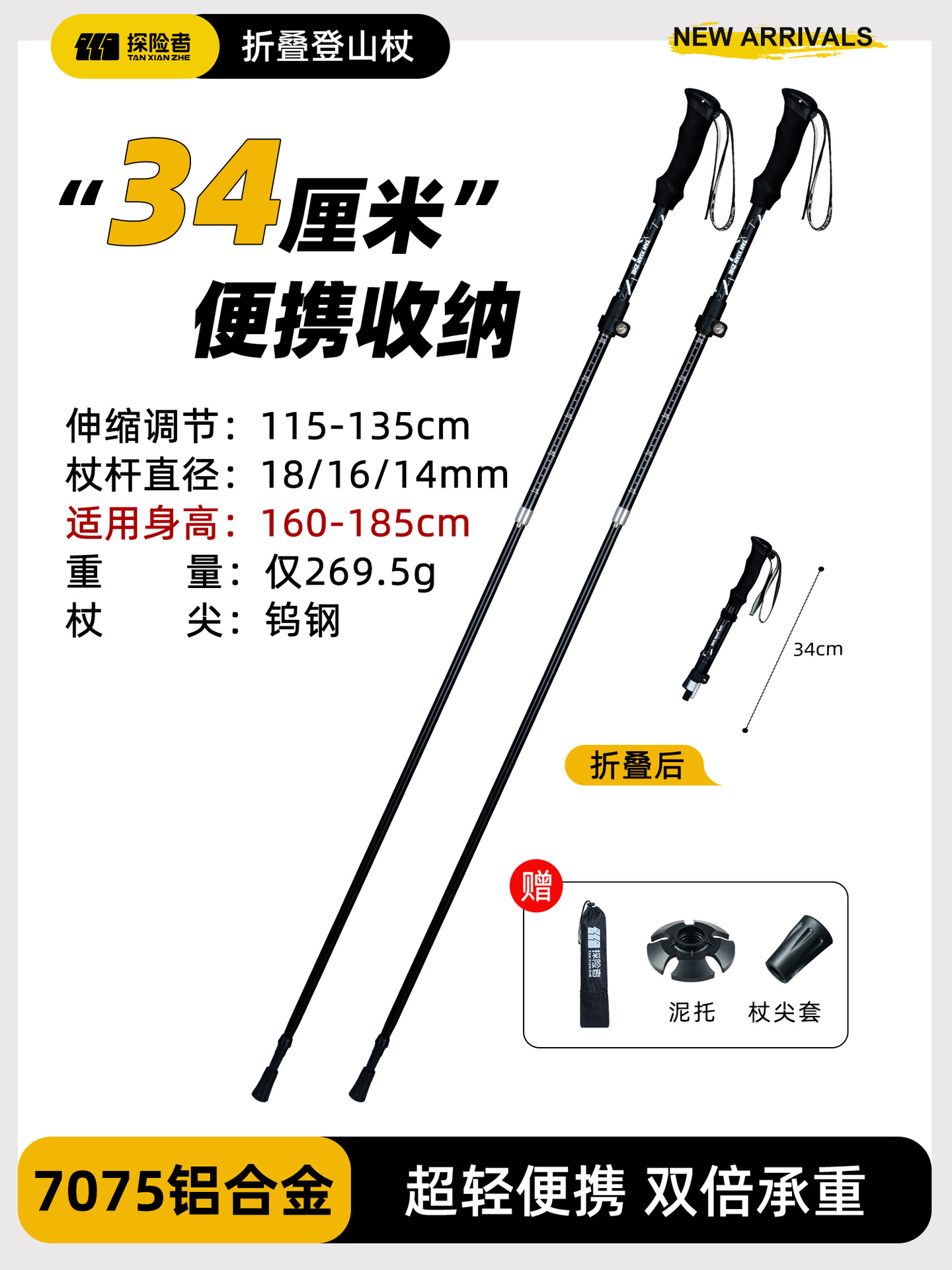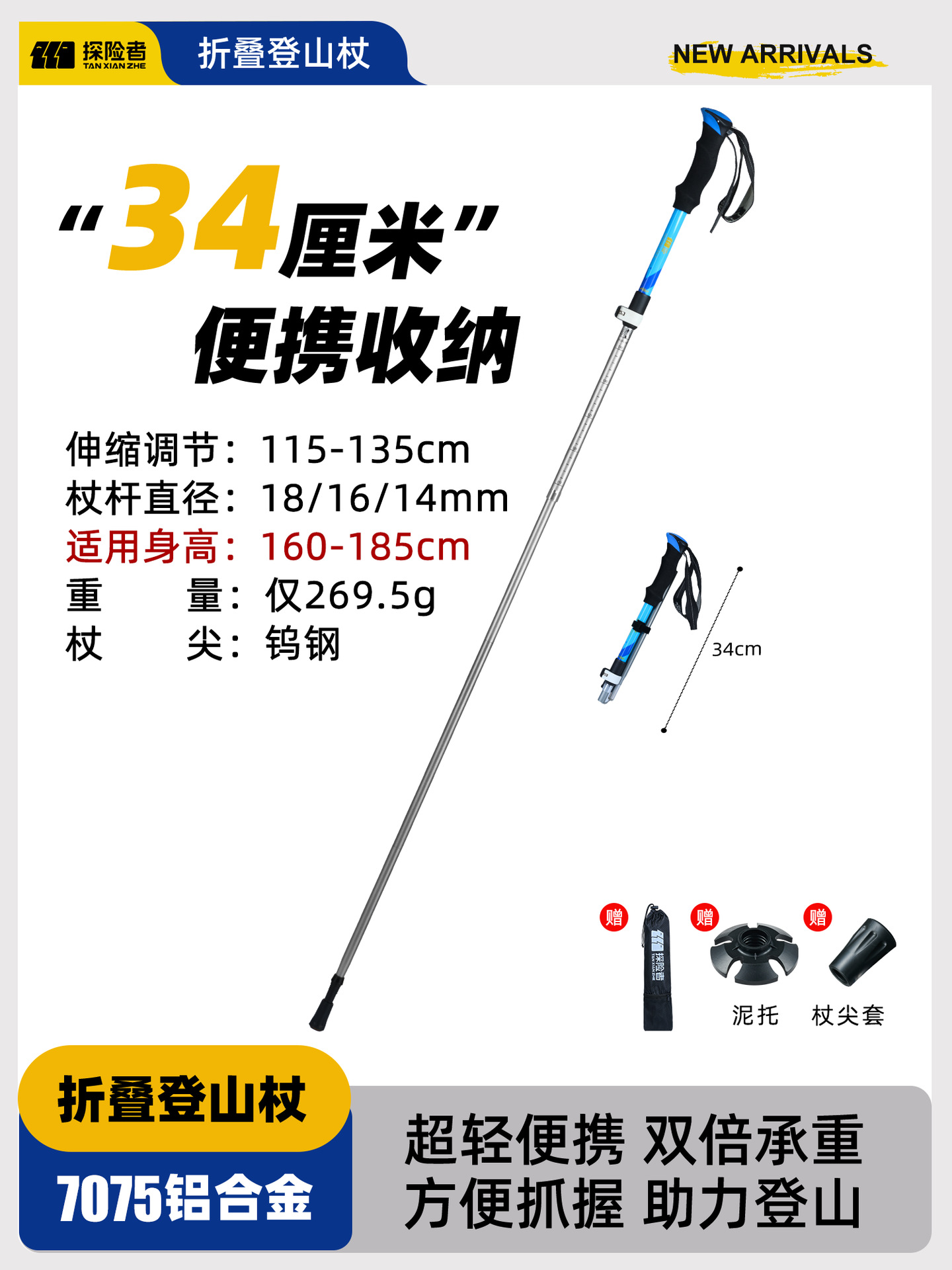 • [7075 알루미늄 합금 접이식 모델] 아름다운 노란색 [단 269.5g] (텅스텐 강철 지팡이 팁)