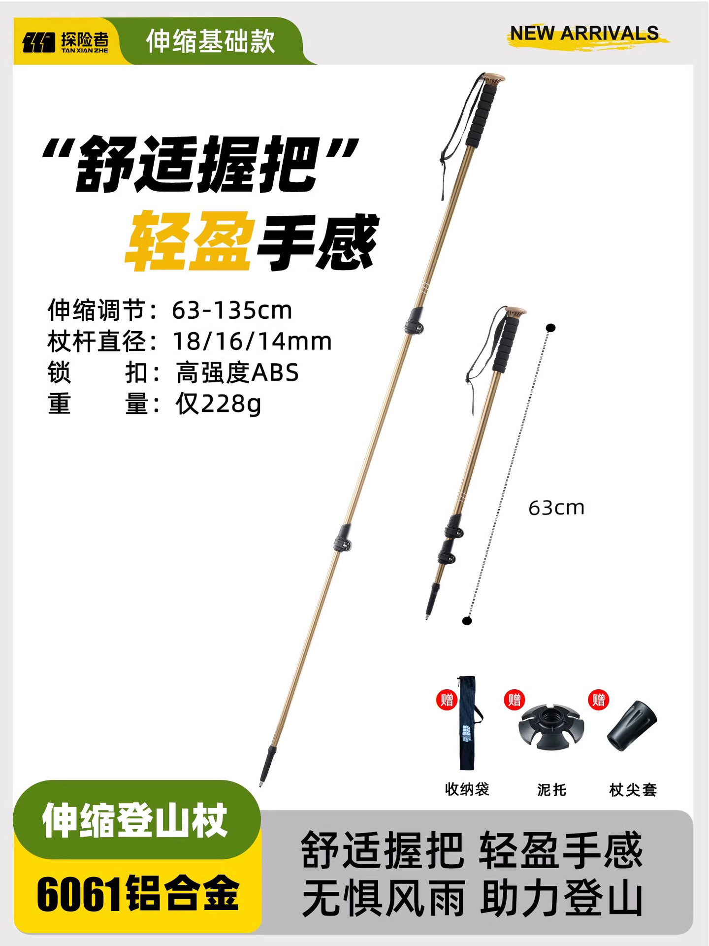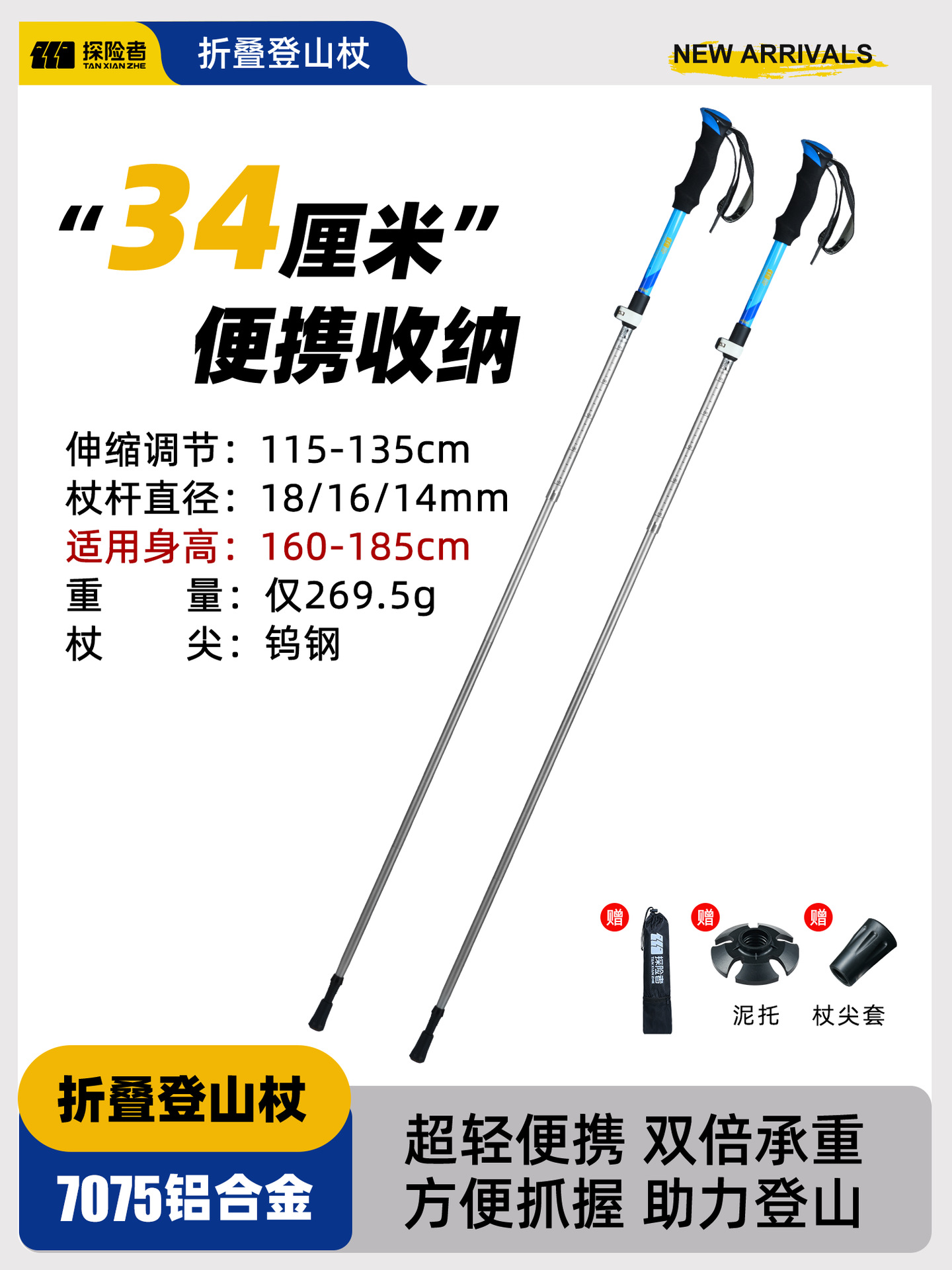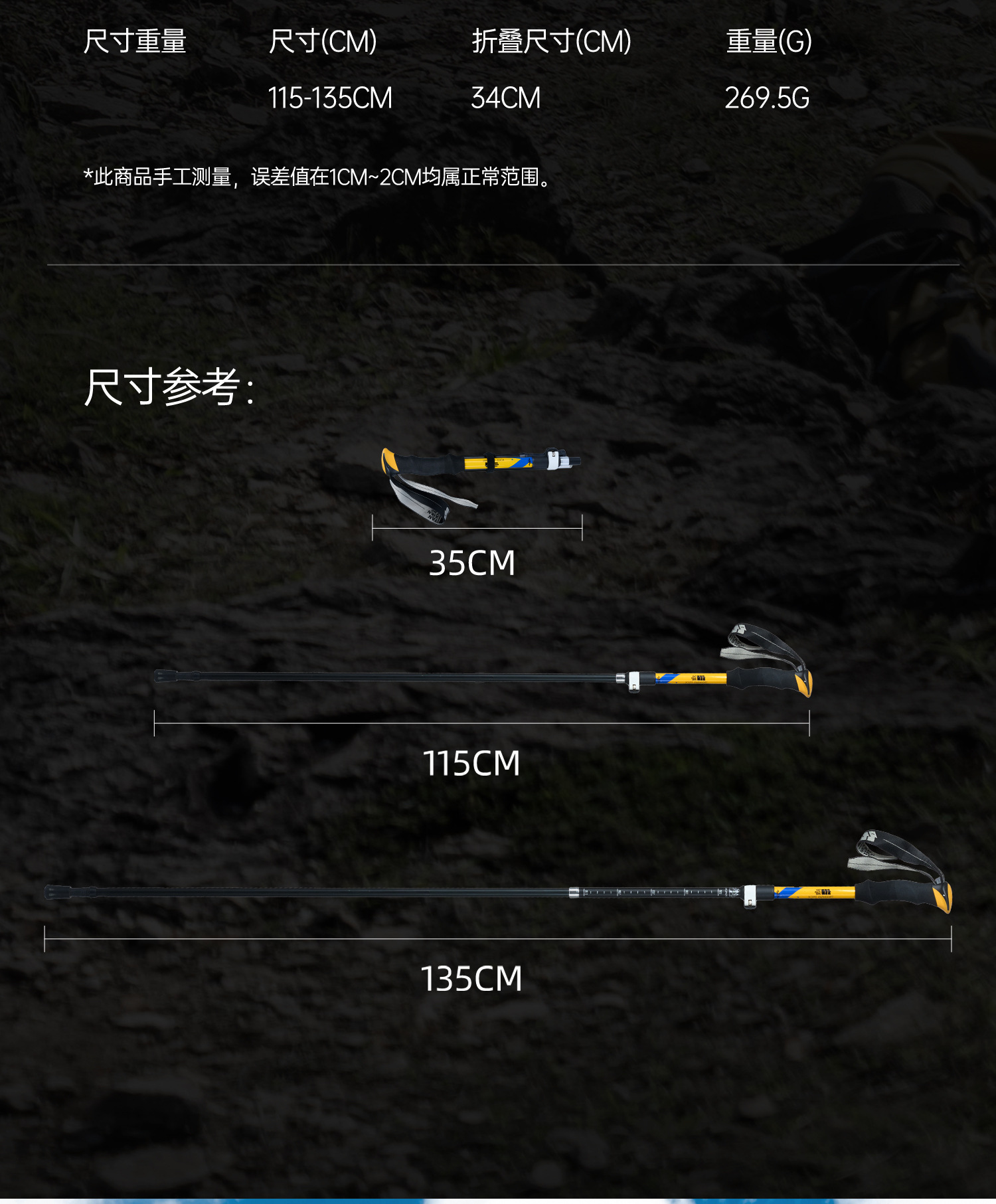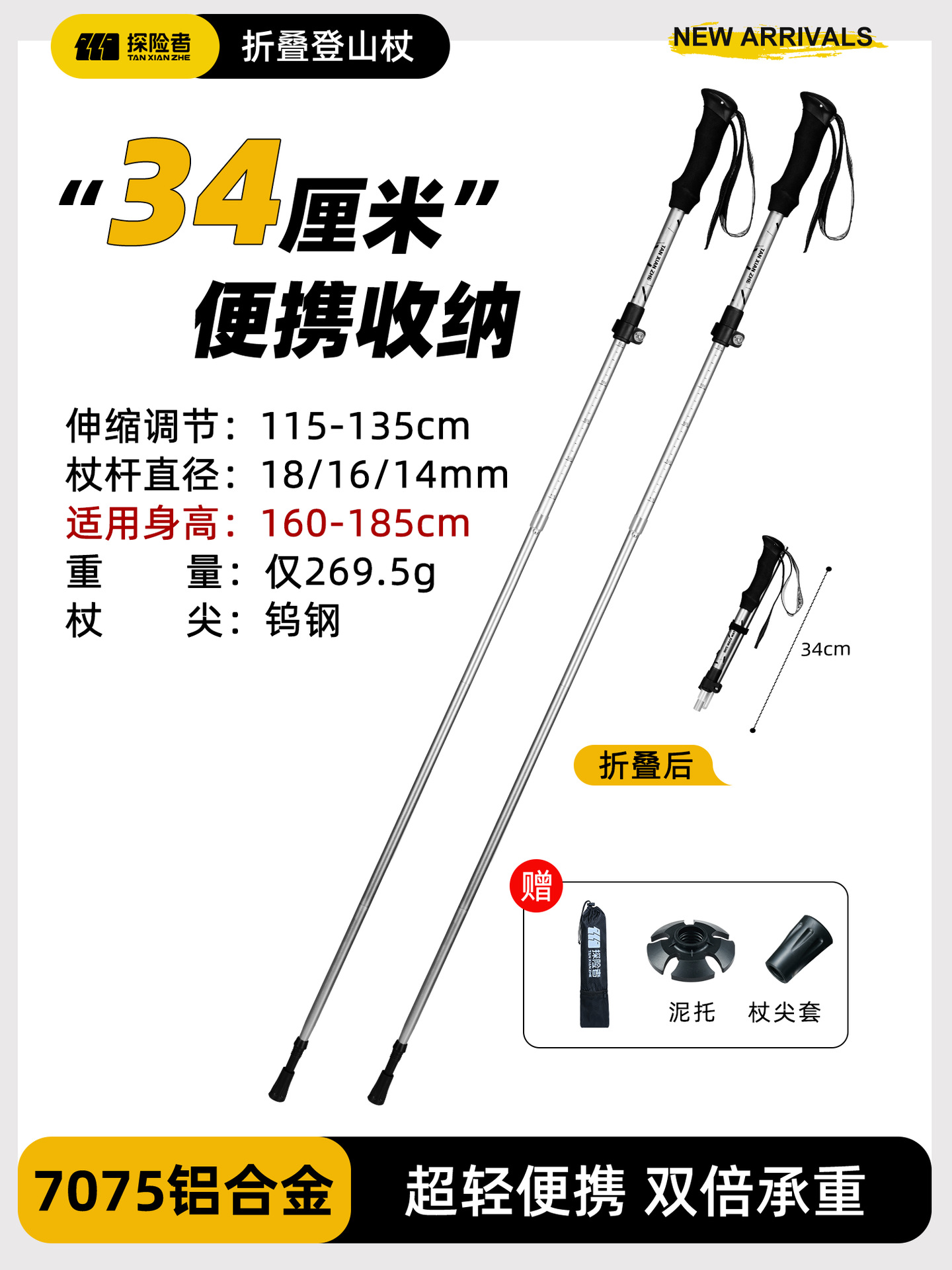 • [7075 알루미늄 합금 접이식 모델] 아름다운 노란색 [단 269.5g] (텅스텐 강철 지팡이 팁)