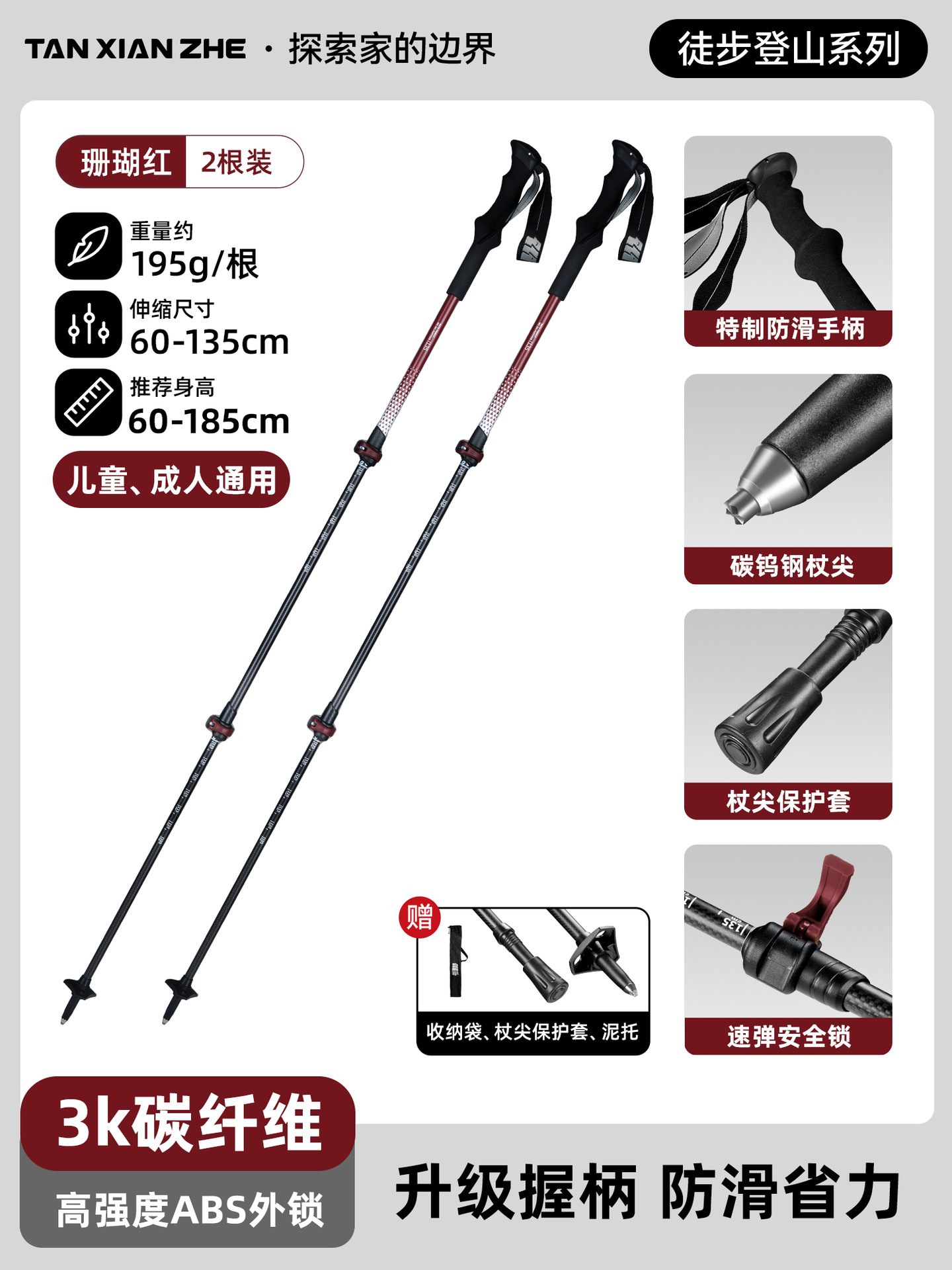 • 2팩 [초경량 3K 탄소 섬유-산호 레드] (8위안 절약)