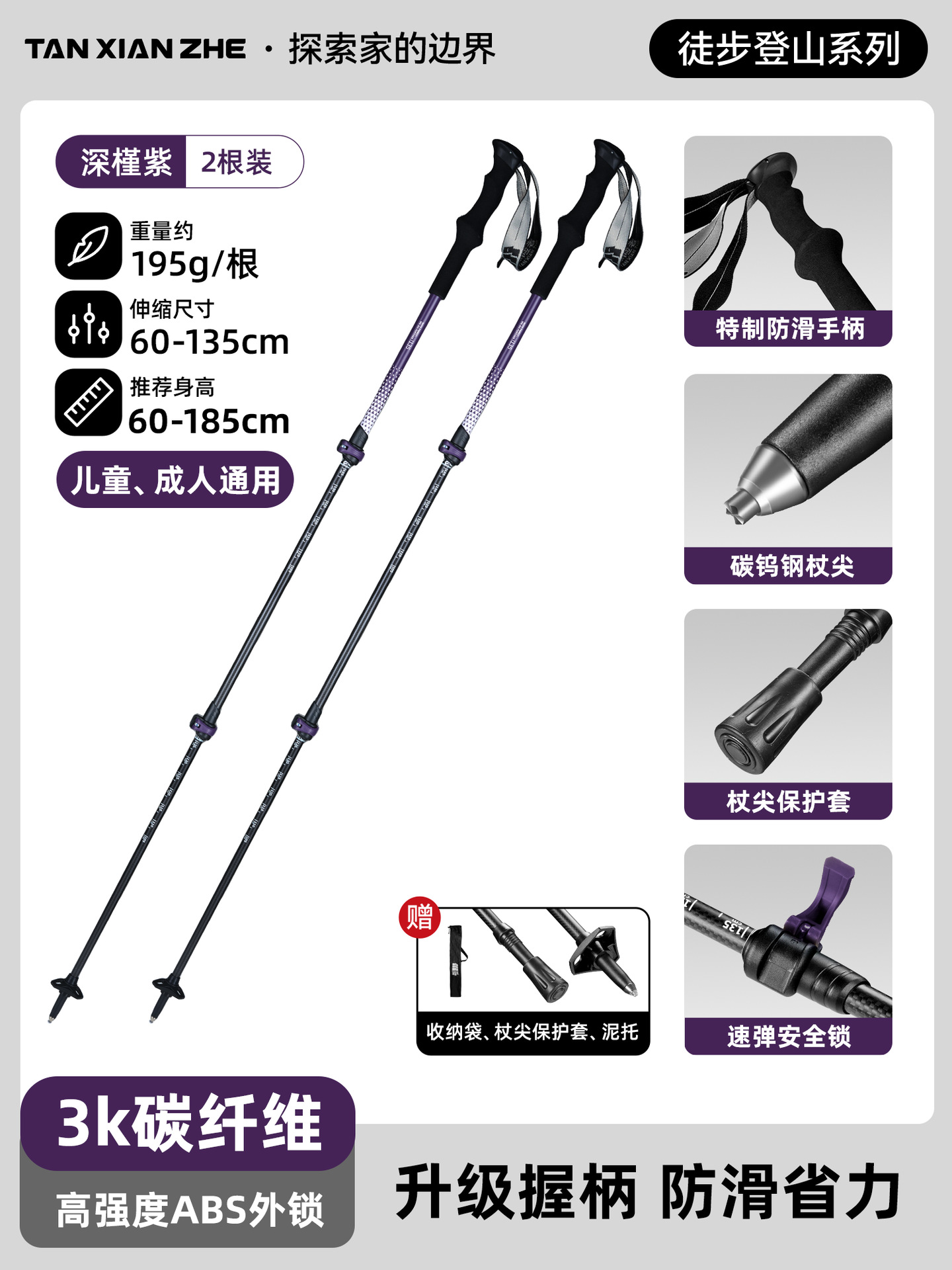 • [가성비 좋은 2개 팩] 카본 컬러 [탄소섬유 접이식 트레킹 폴] 탄소강 합금 폴 팁