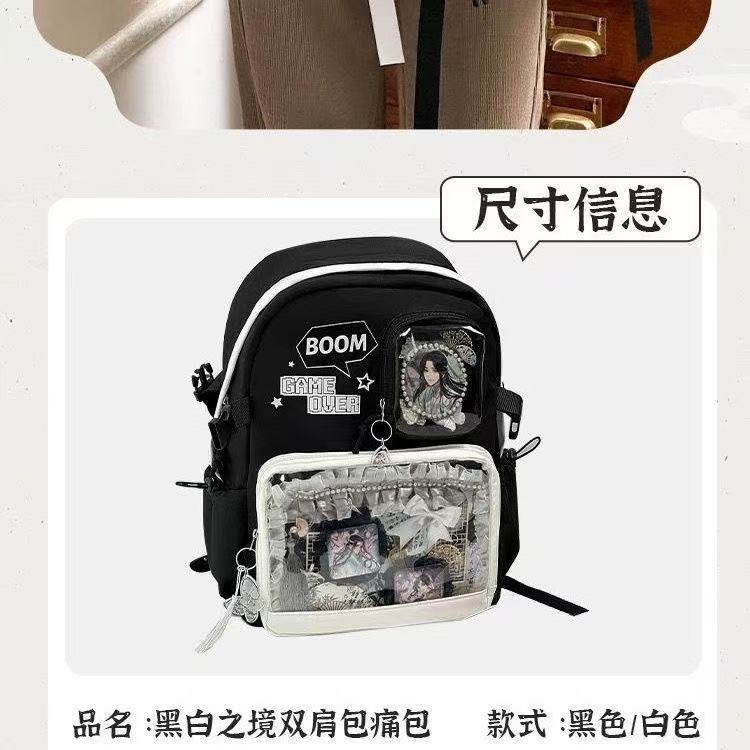 흑백세계 백팩, 통백팩, 2차원 투명 밀, 대용량 백팩, 중학생 가방, 통백팩