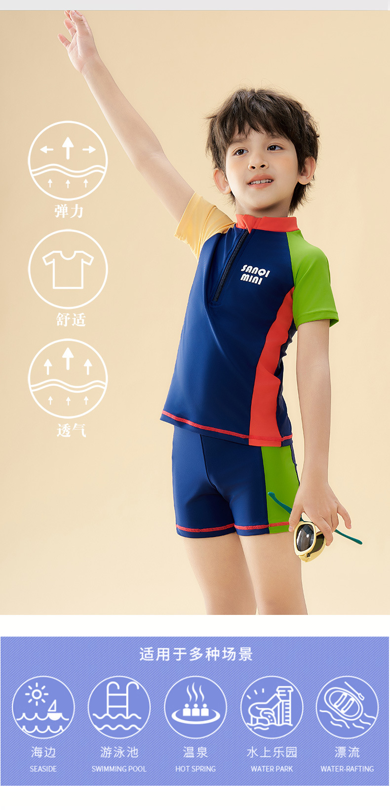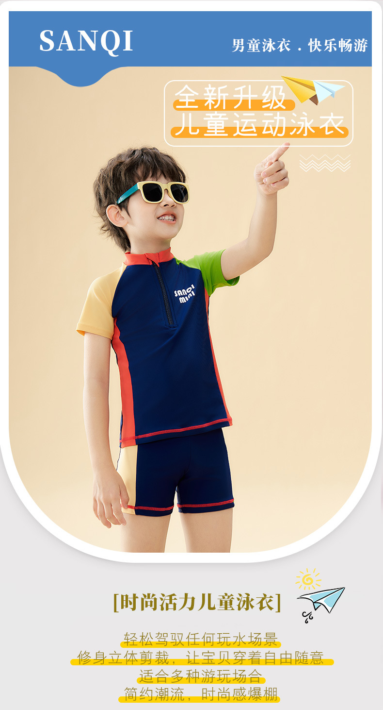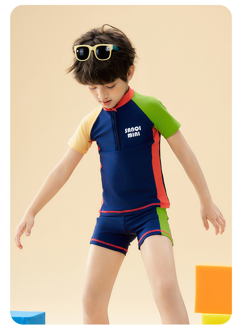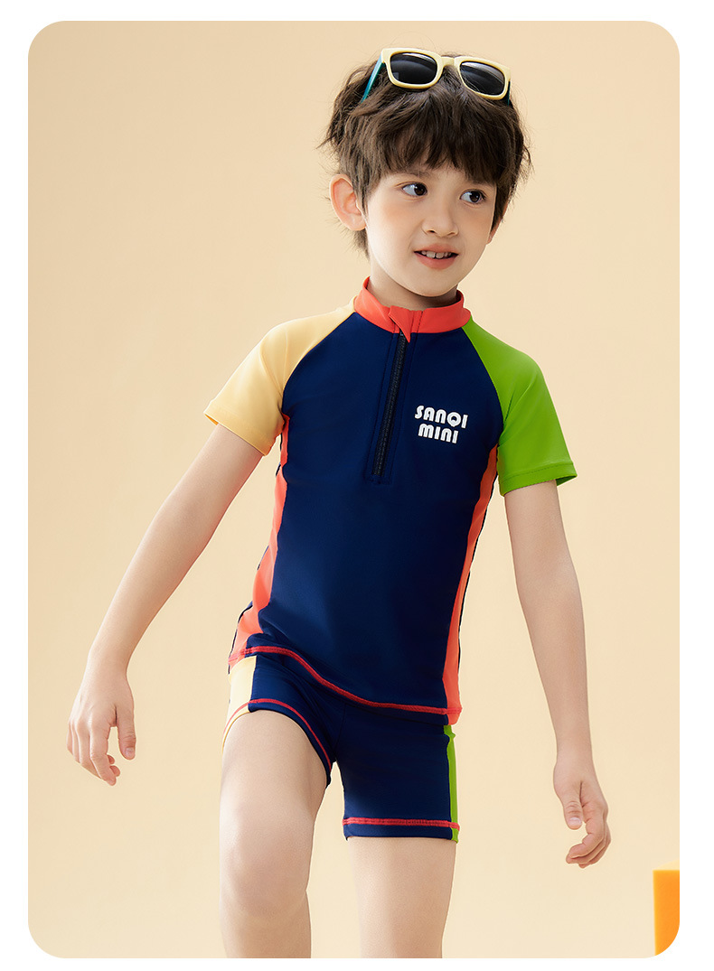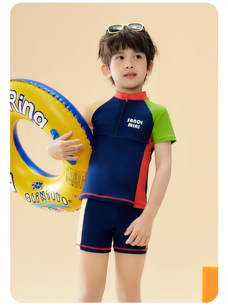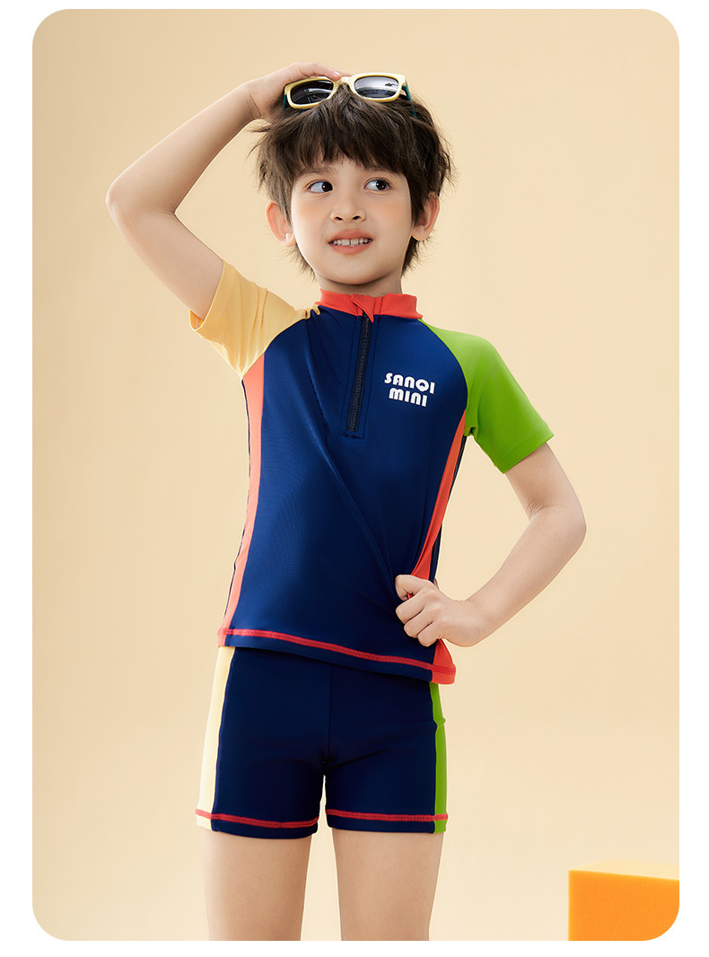 Sanqi 어린이 수영복 소년 2025 새로운 중대형 어린이 스플릿 수영복 소년을위한 전문 훈련 수영복
