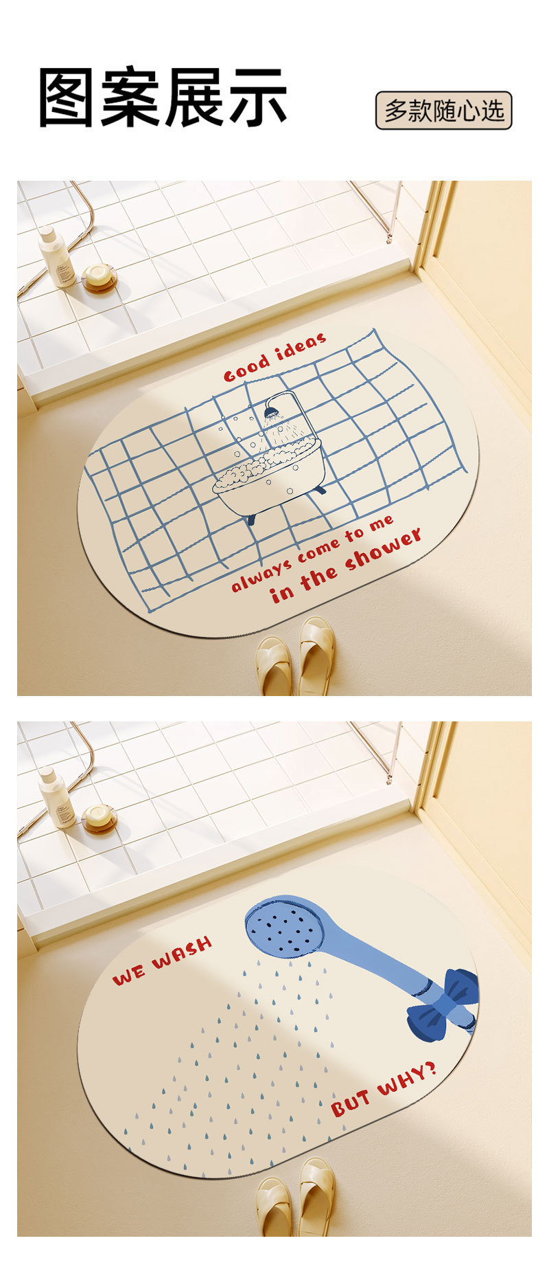 욕실 특수 흡수성 바닥 매트 Diatom 진흙 재미있는 화장실 문 미끄럼 방지 매트 가정용 화장실 빠른 건조 발 매트