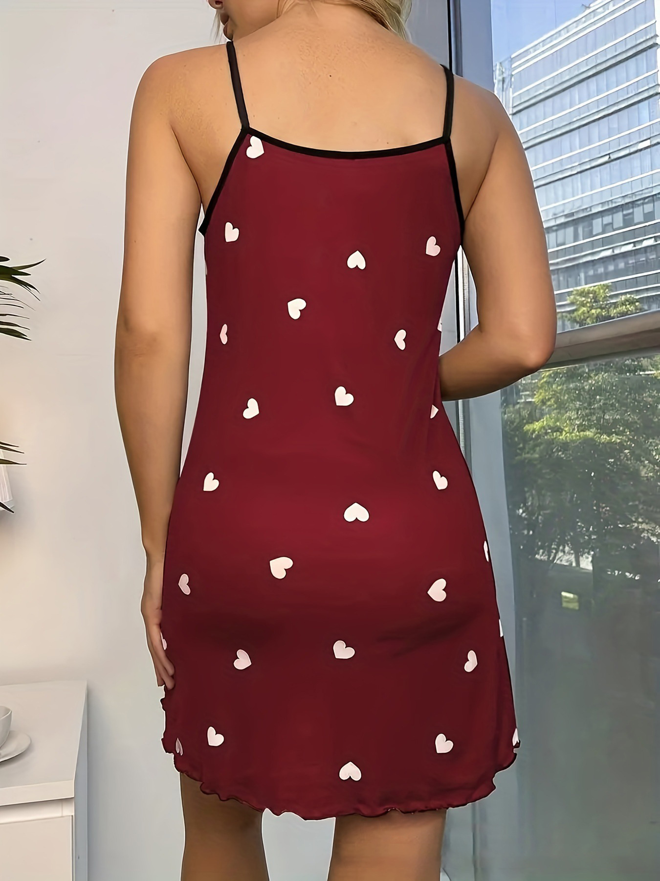 대외 무역 유럽과 미국의 새로운 발렌타인 데이 레드 러브 프린트 섹시한 섹시한 서스펜더 잠옷 여성 홈 배치