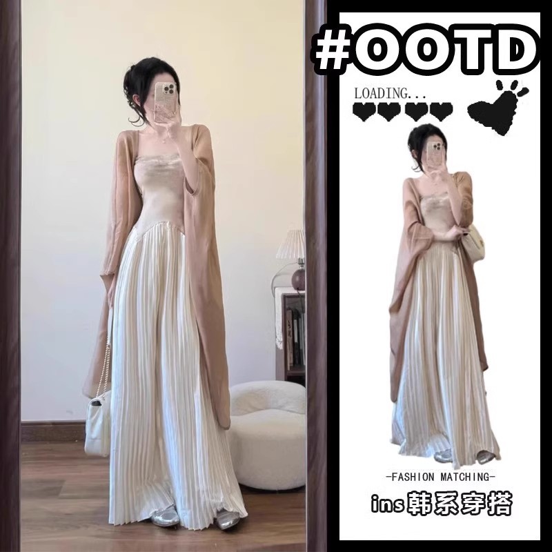 봄 2025 새로운 중국 스타일 국가 스타일 탑 여성 선 카디건 재킷 틈새 원피스 투피스 세트스토어 가기