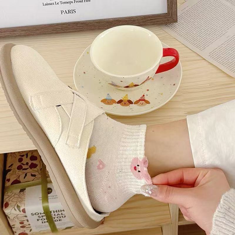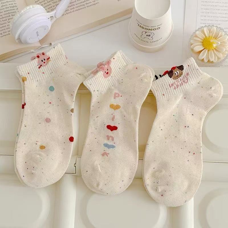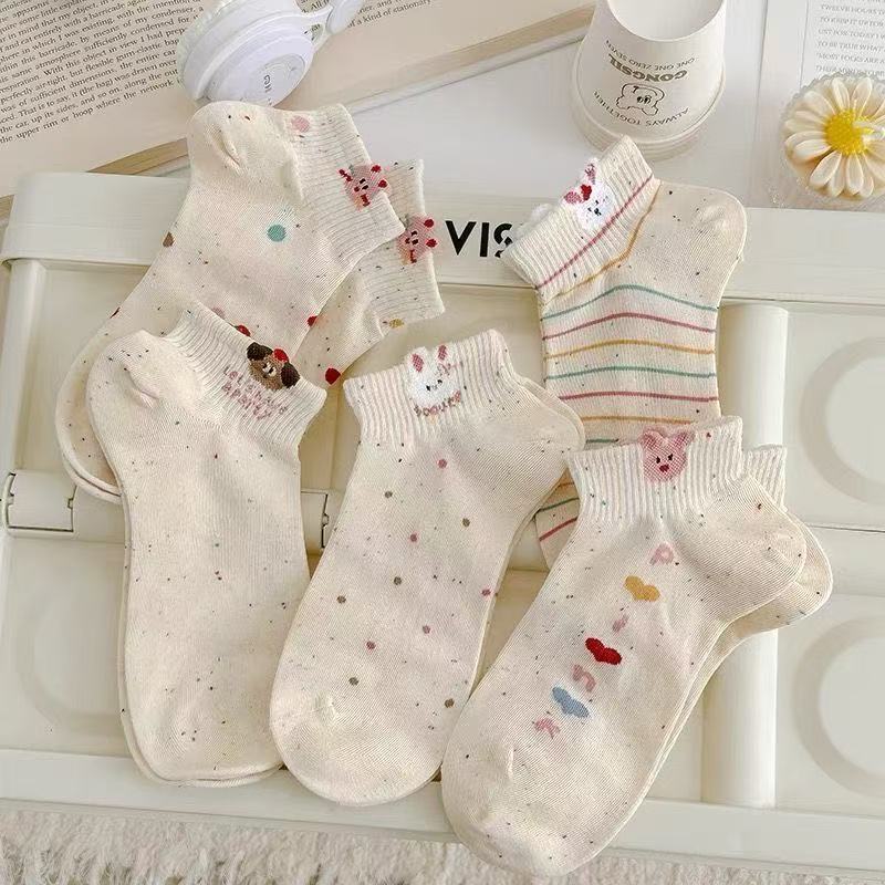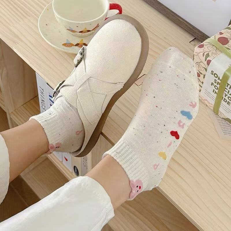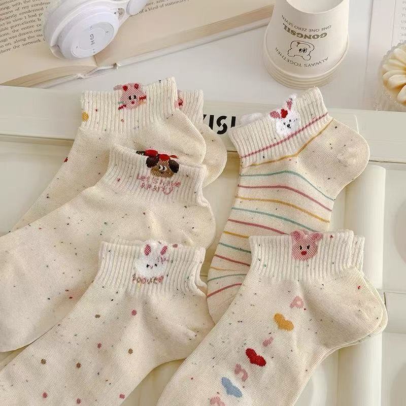 귀여운 도트무늬 얇은 양말 여성용 봄 여름 트렌디 통기성 좋은 한국 스타일 만화 토끼 쇼트 양말 공장 직판스토어 가기