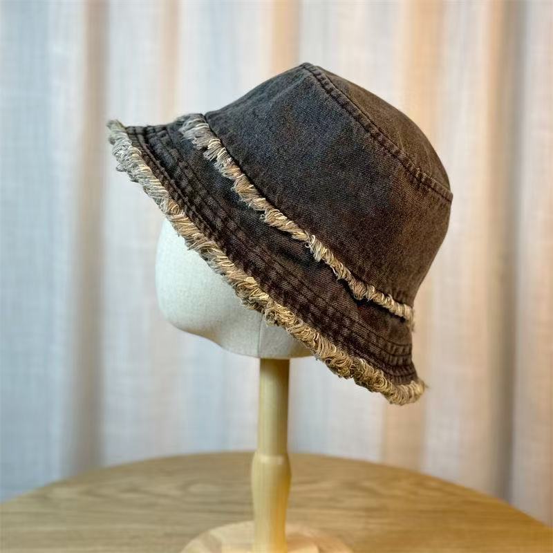 한국식 레트로 데님 햇살 어부 모자 여성의 봄 여름 가을 등산 버킷 분지 모자 오래 된 선 스크린 모자스토어 가기