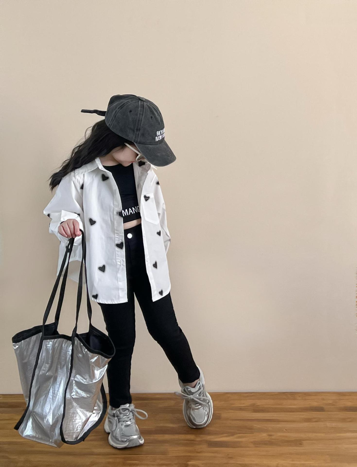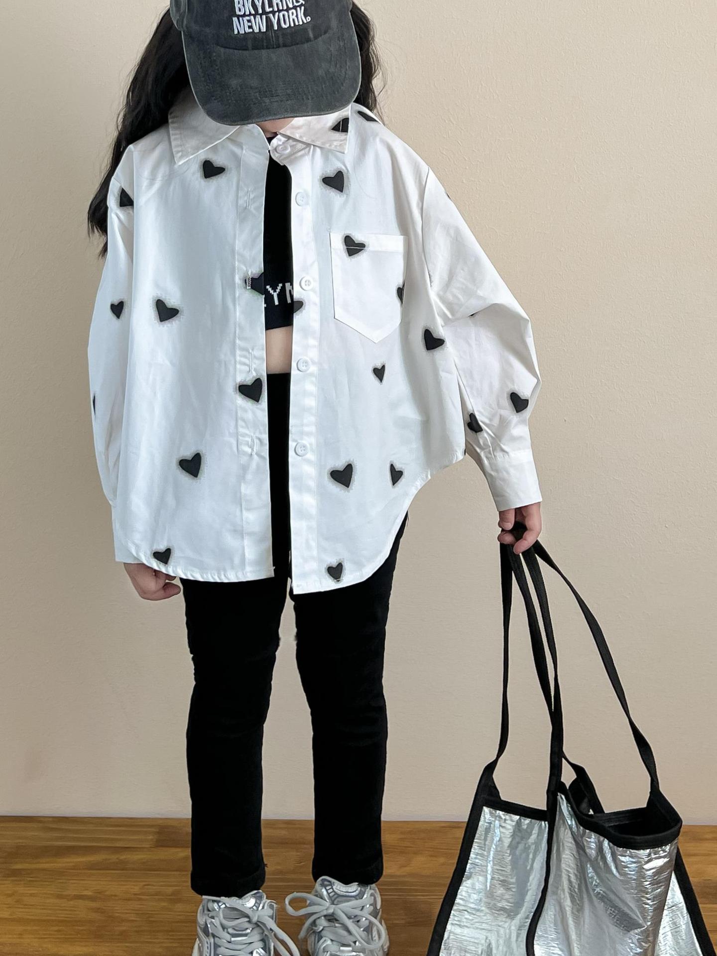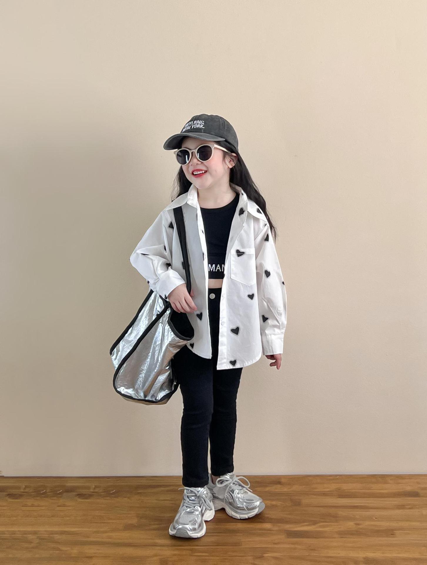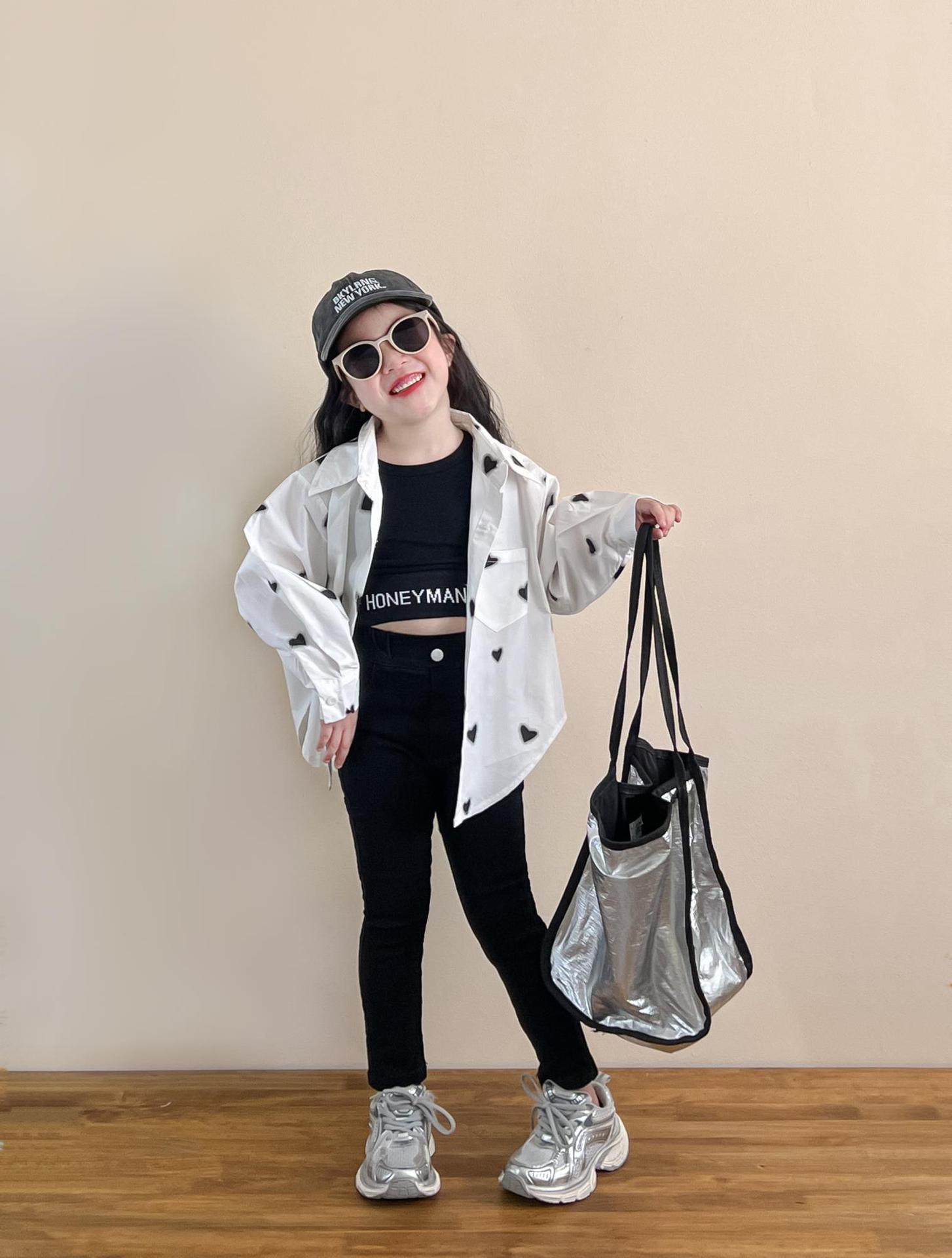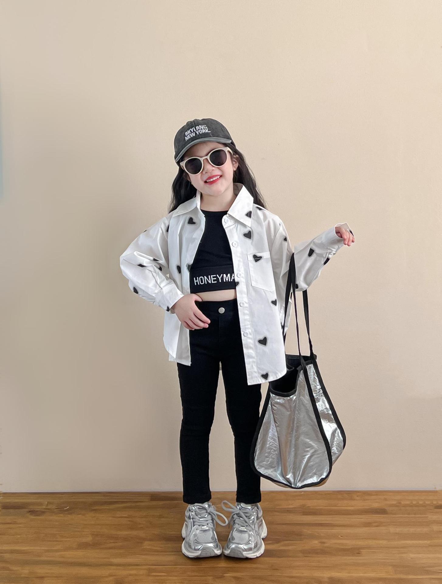 소녀의 봄과 여름 유행 스포츠 스타일 전체 인쇄 사랑 중간 길이 셔츠 블랙 슬림 핏 짧은 편지 조끼