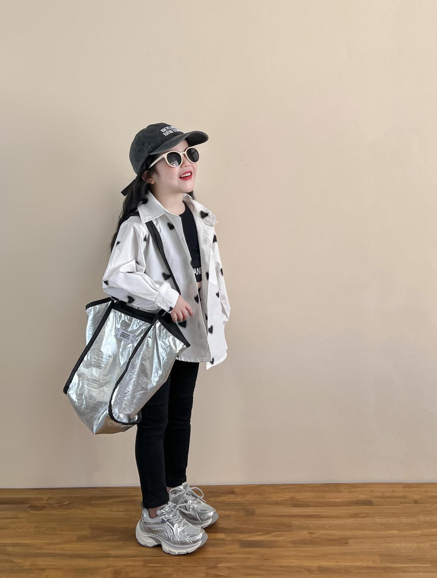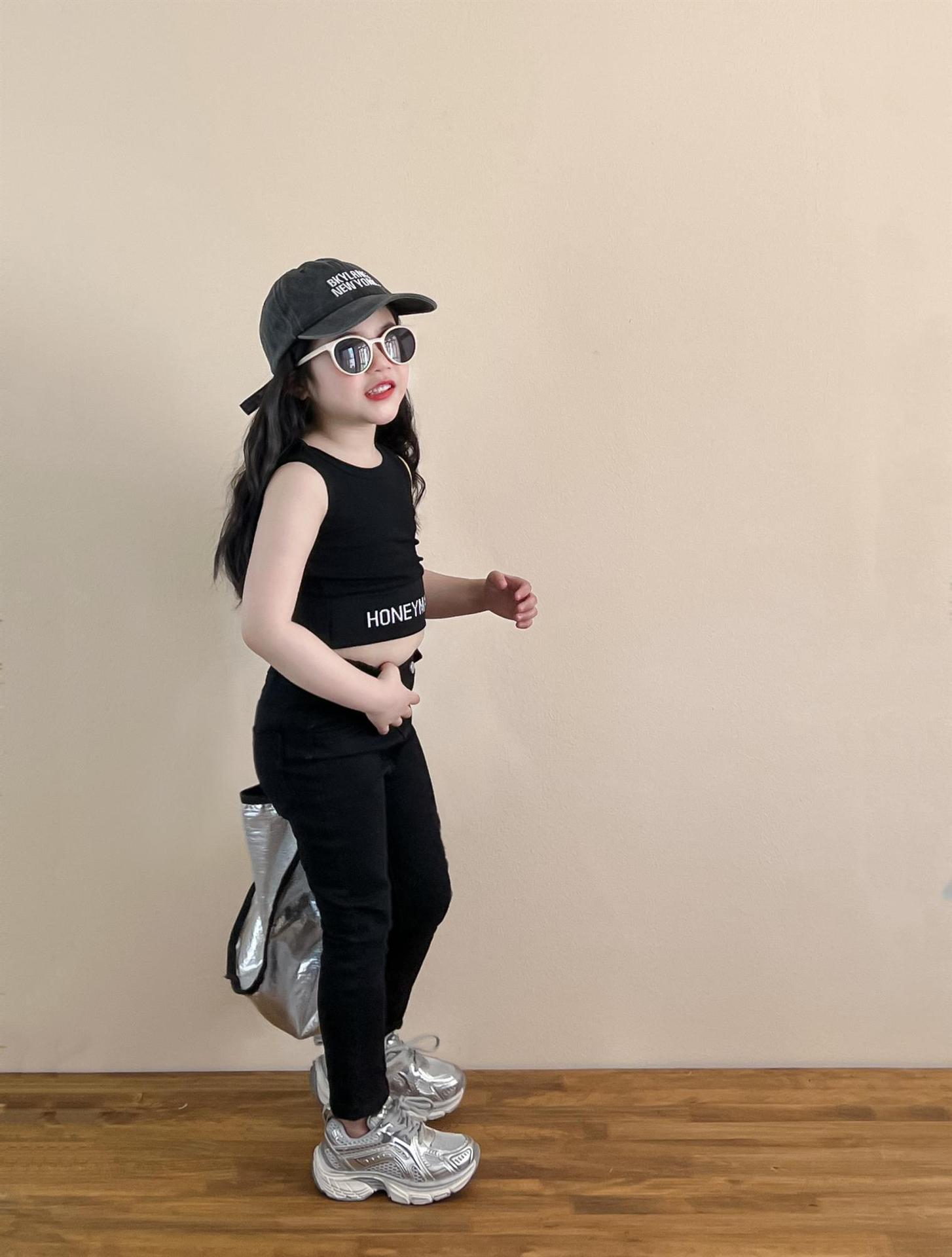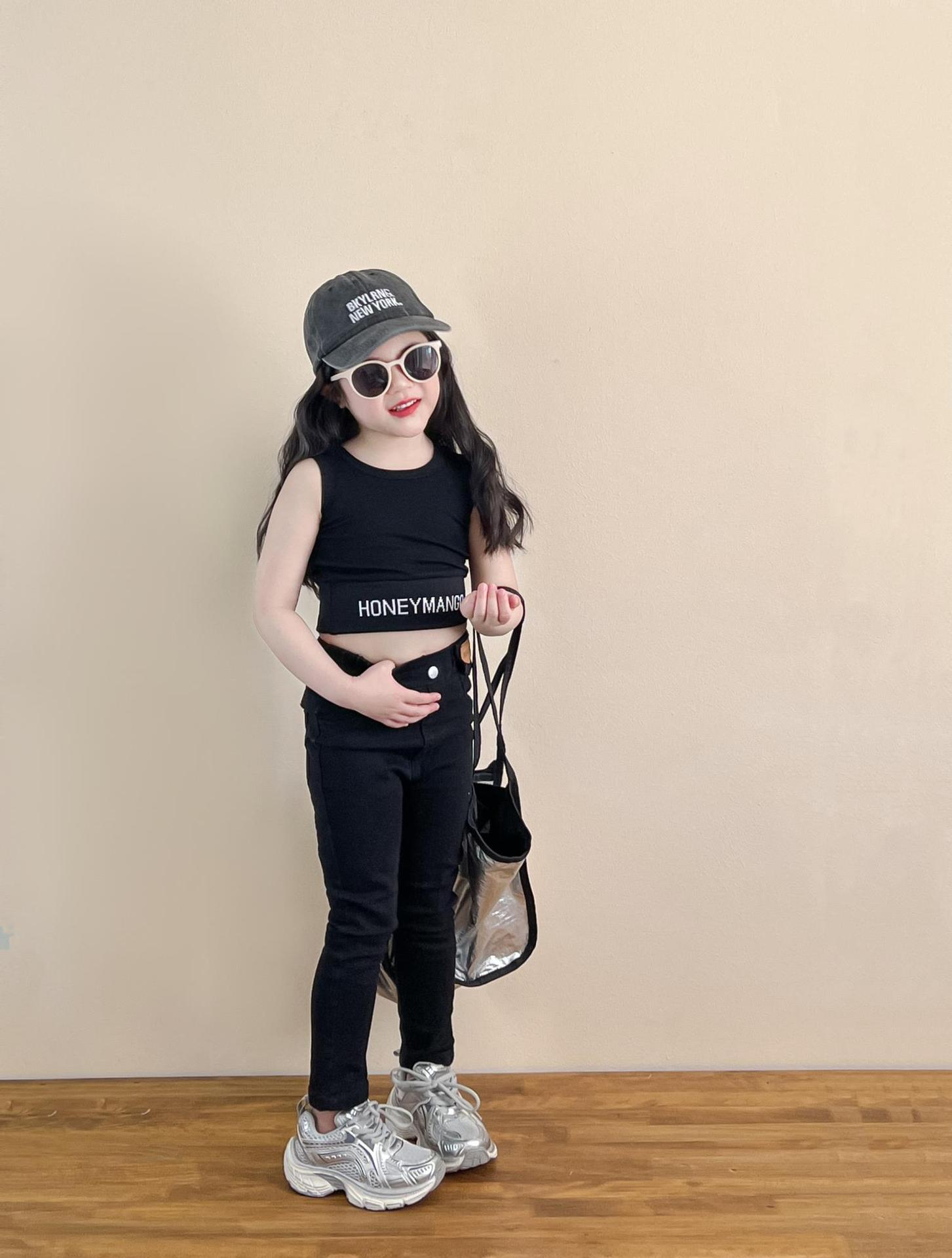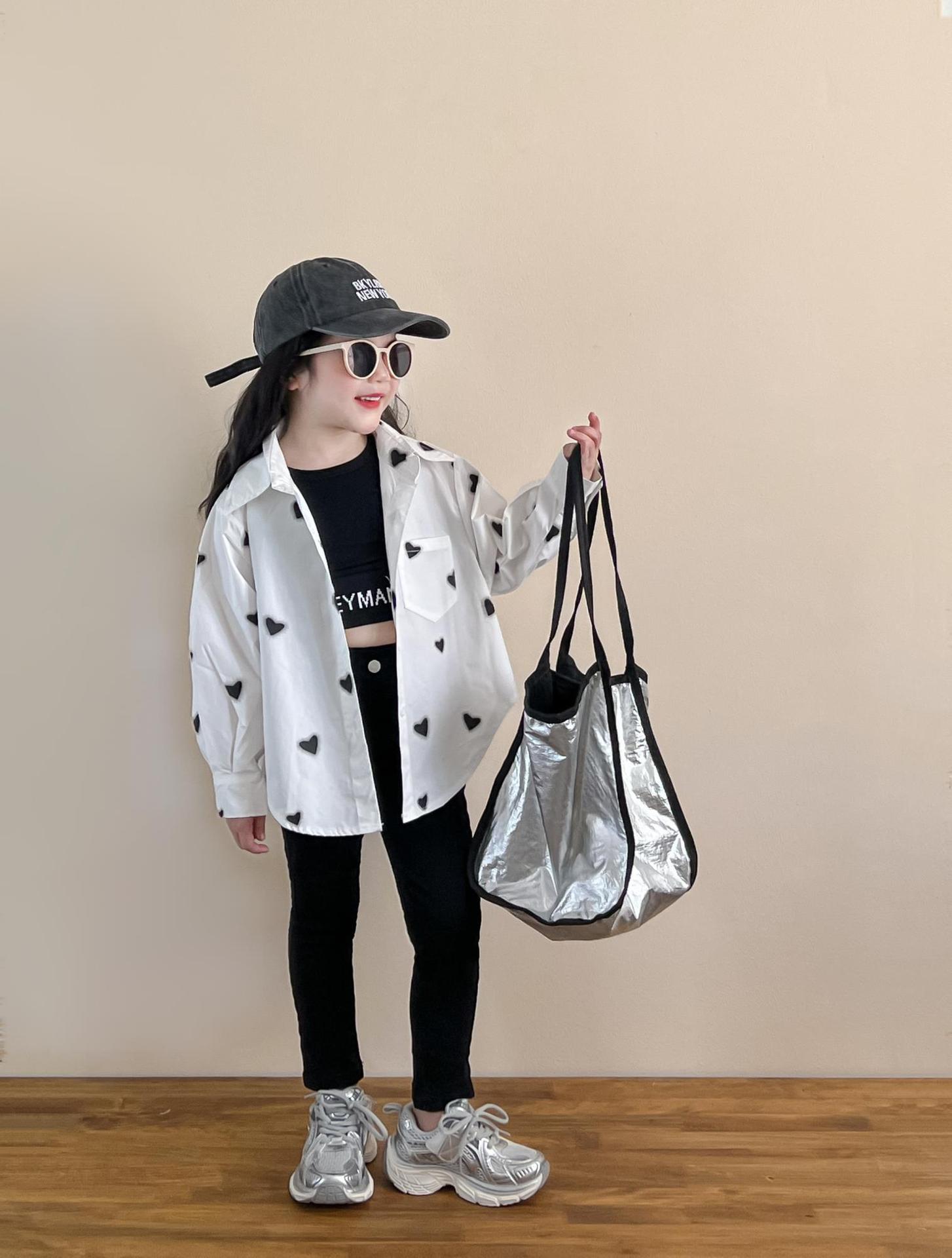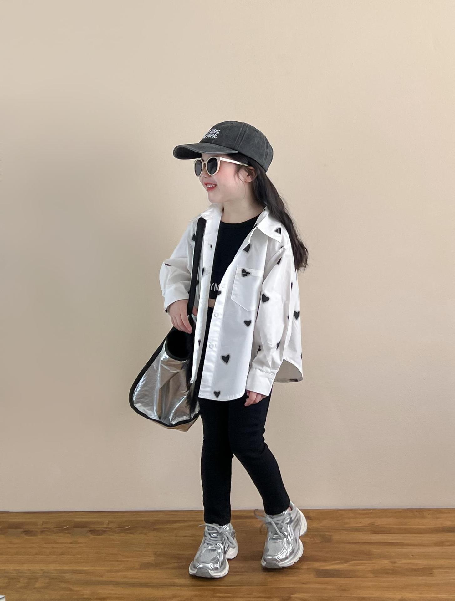 소녀의 봄과 여름 유행 스포츠 스타일 전체 인쇄 사랑 중간 길이 셔츠 블랙 슬림 핏 짧은 편지 조끼