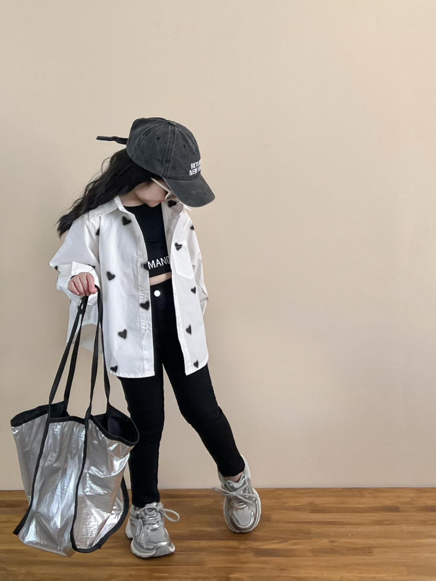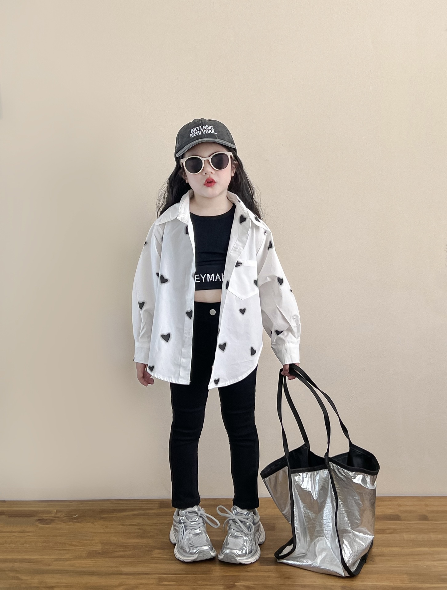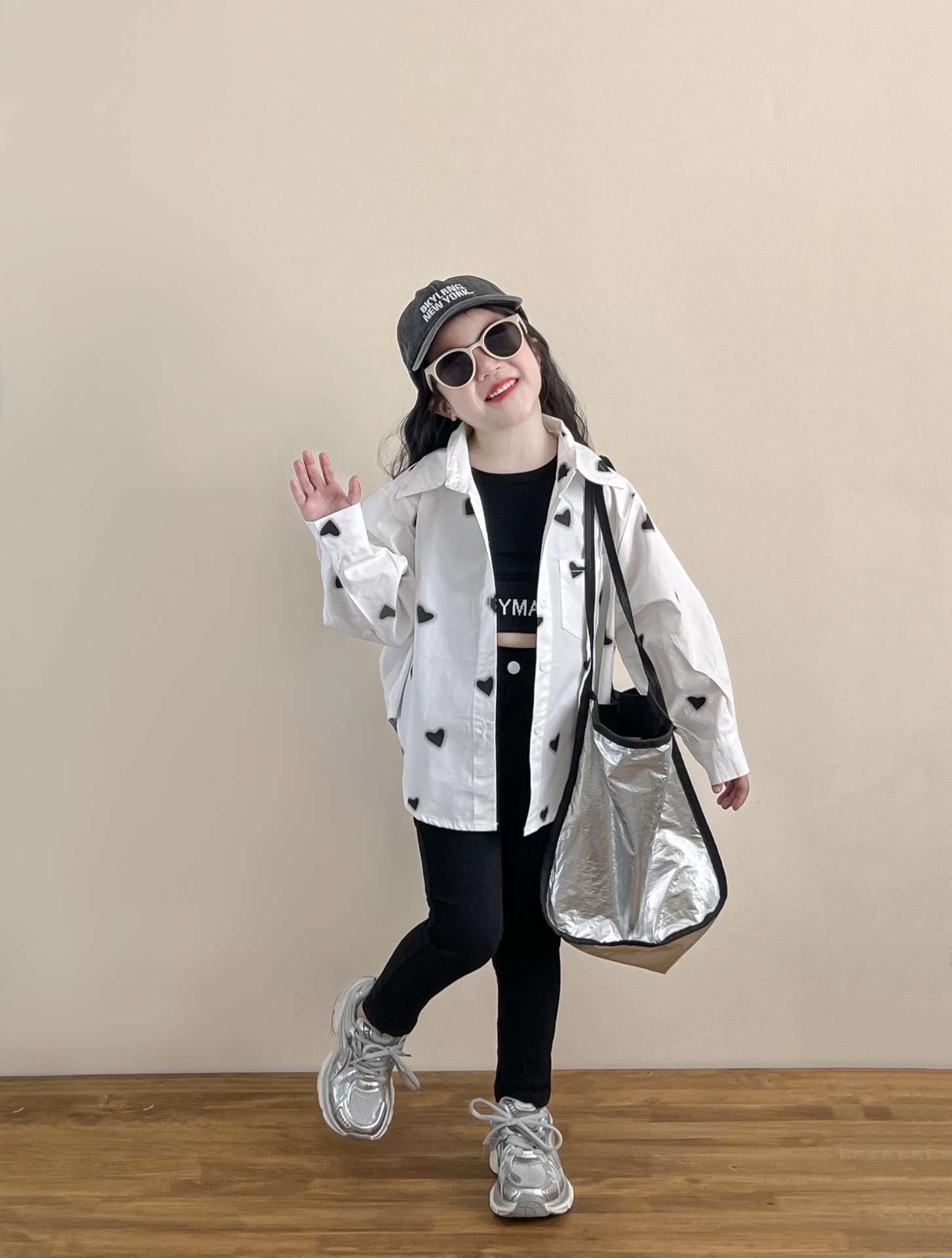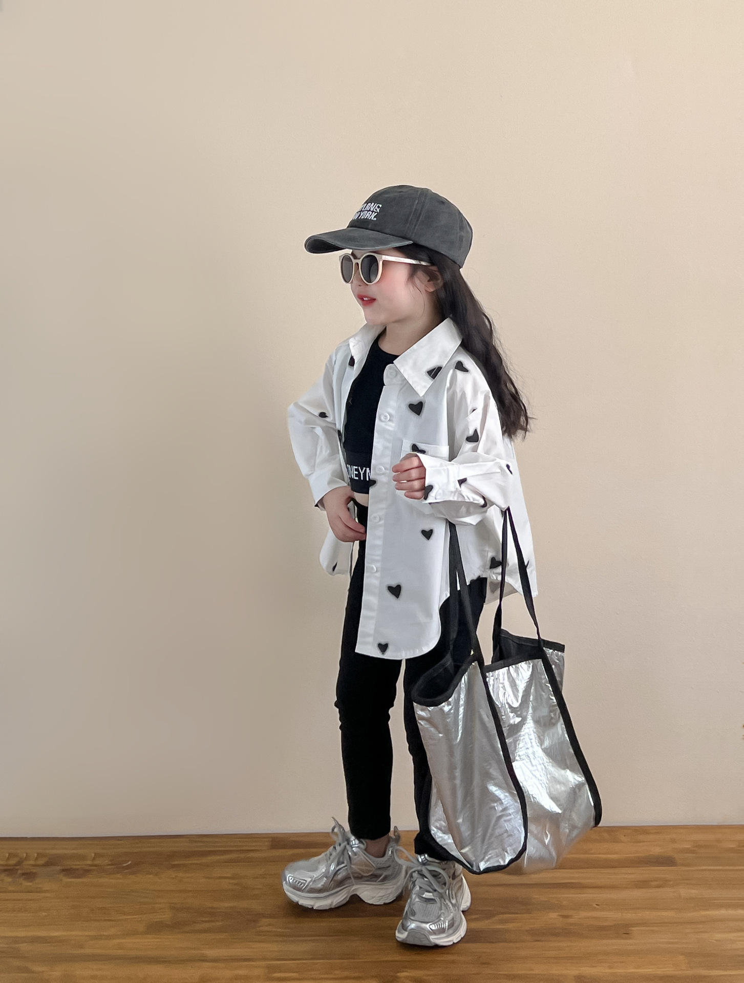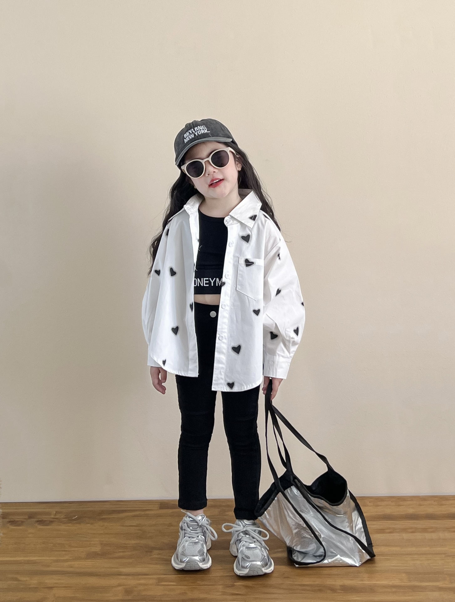 소녀의 봄과 여름 유행 스포츠 스타일 전체 인쇄 사랑 중간 길이 셔츠 블랙 슬림 핏 짧은 편지 조끼