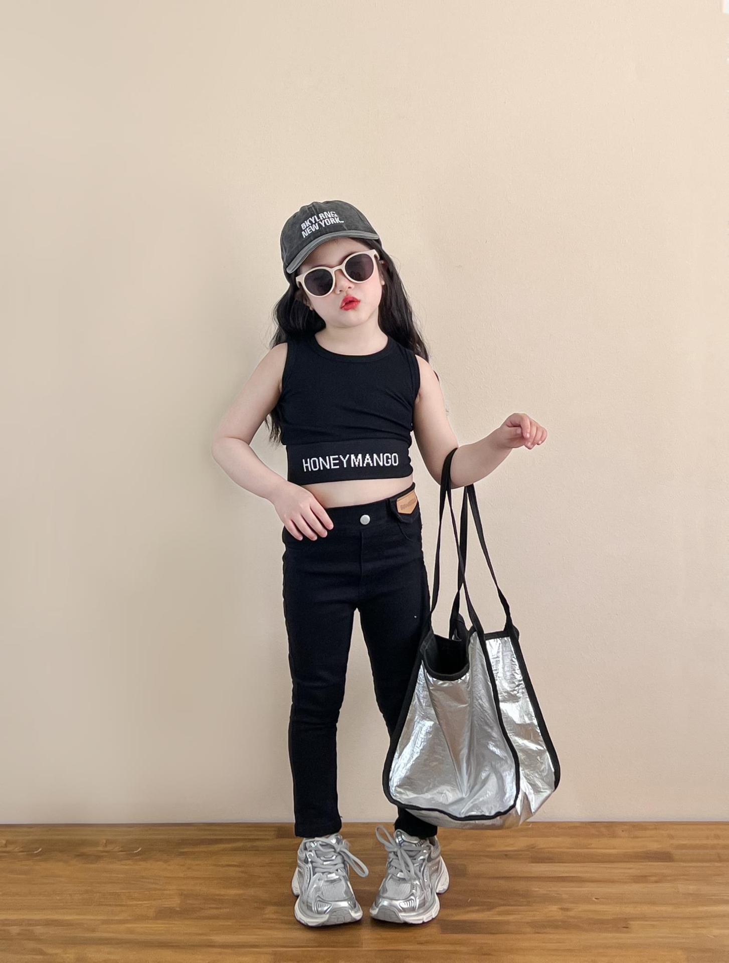 소녀의 봄과 여름 유행 스포츠 스타일 전체 인쇄 사랑 중간 길이 셔츠 블랙 슬림 핏 짧은 편지 조끼스토어 가기