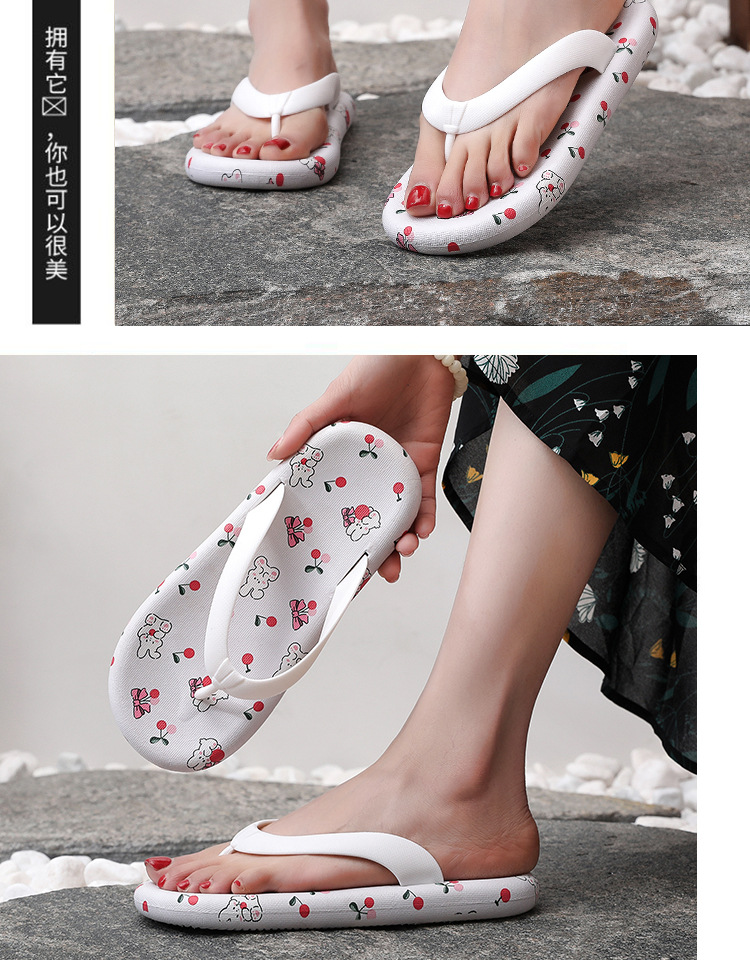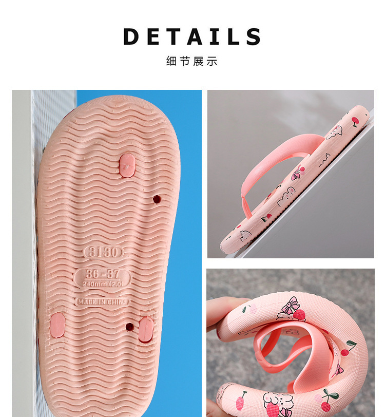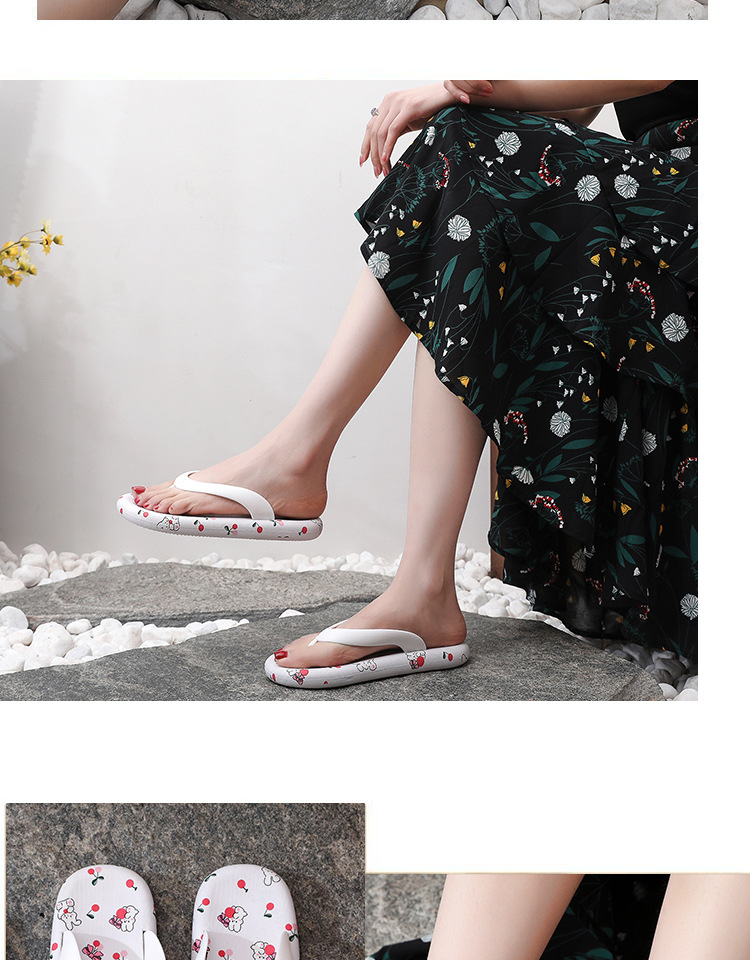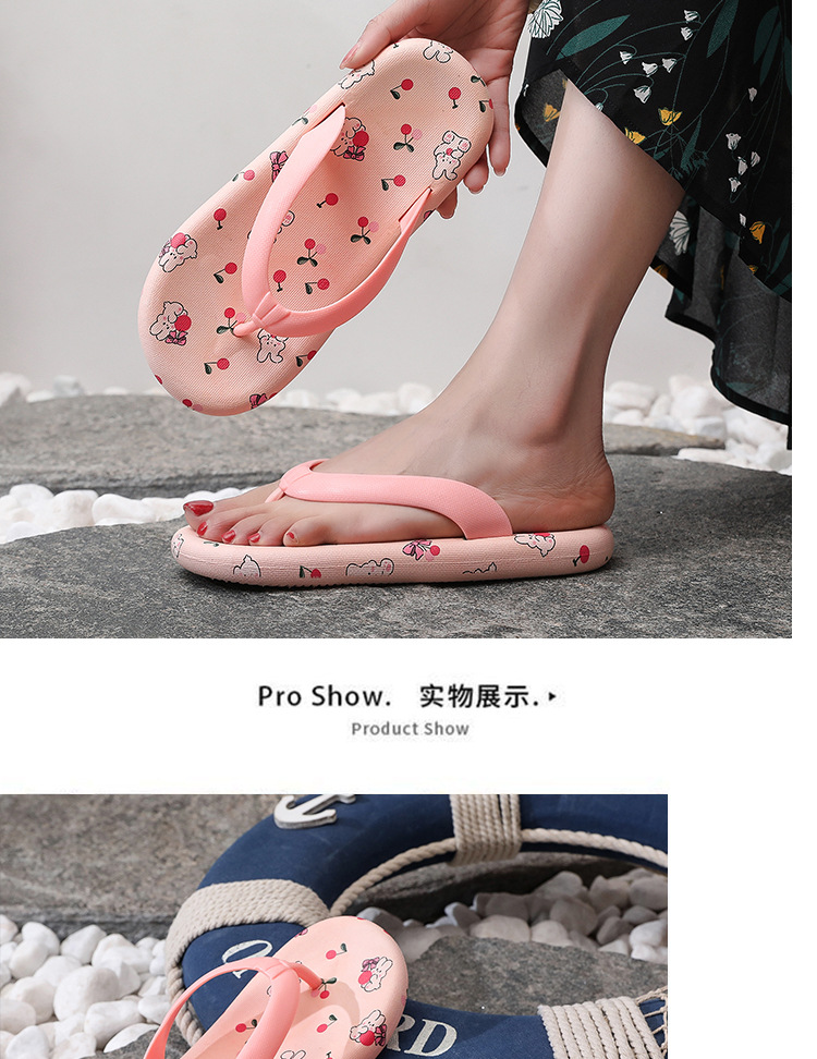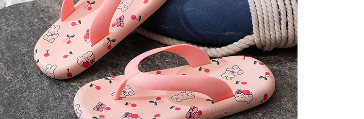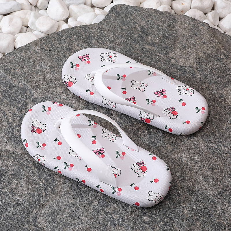 여성용 슬리퍼, 달콤한 체리 버니 플랫 바닥 부드러운 여름 아우터 홈 미끄럼 방지 인터넷 연예인 비치 슈즈스토어 가기