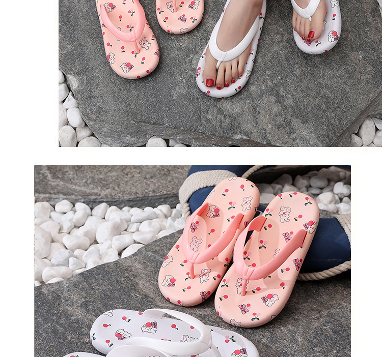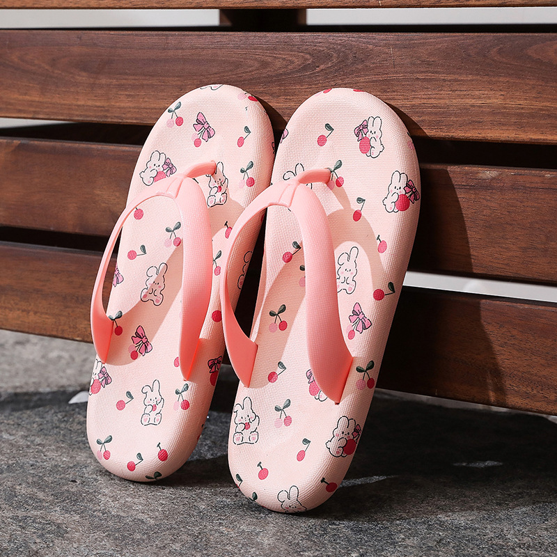 여성용 슬리퍼, 달콤한 체리 버니 플랫 바닥 부드러운 여름 아우터 홈 미끄럼 방지 인터넷 연예인 비치 슈즈