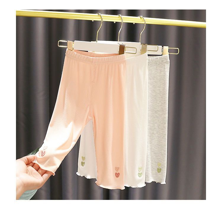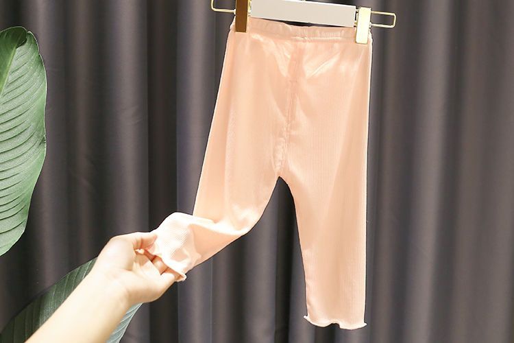 1-4 세 아기 소녀 슈퍼 소프트 아이스 실크 코튼 레깅스 2 아기 소녀 여름 새 스타일 소녀 간단하고 다재다능한 크롭 바지