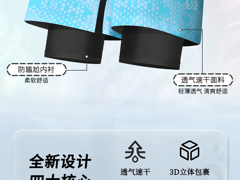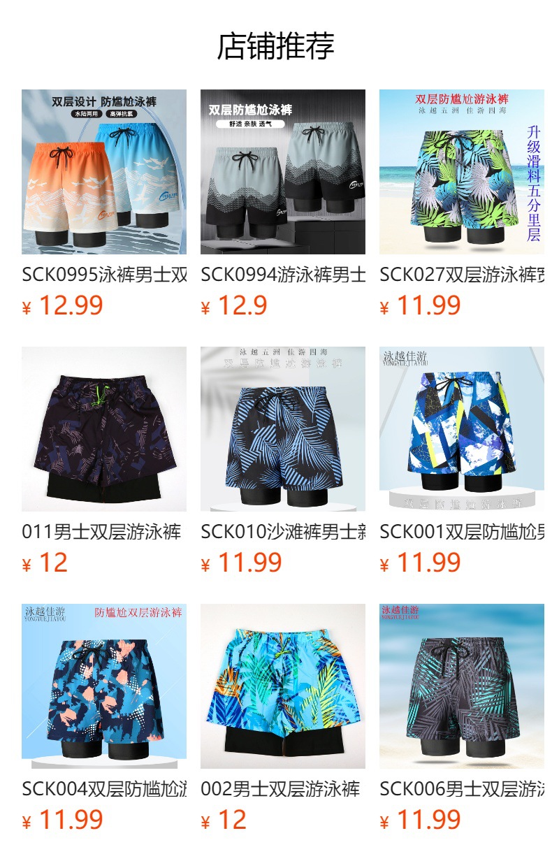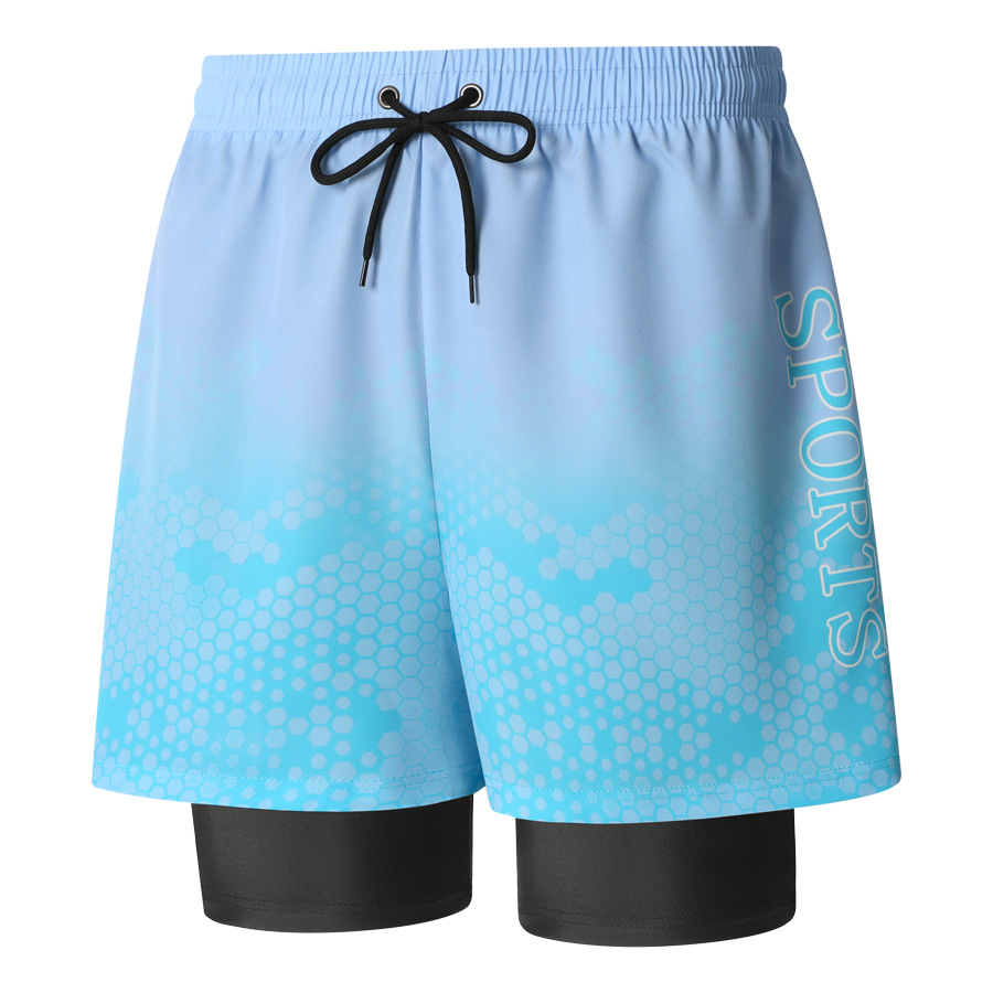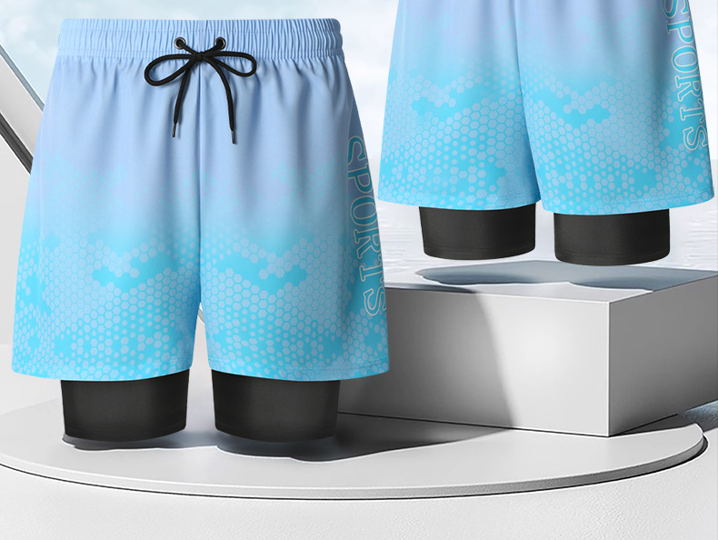 SCK0996 남성용 더블 레이어 안티-어색 수영복, 소년 성인 비치 바지, 남성용 복서 수영복 및 모자스토어 가기