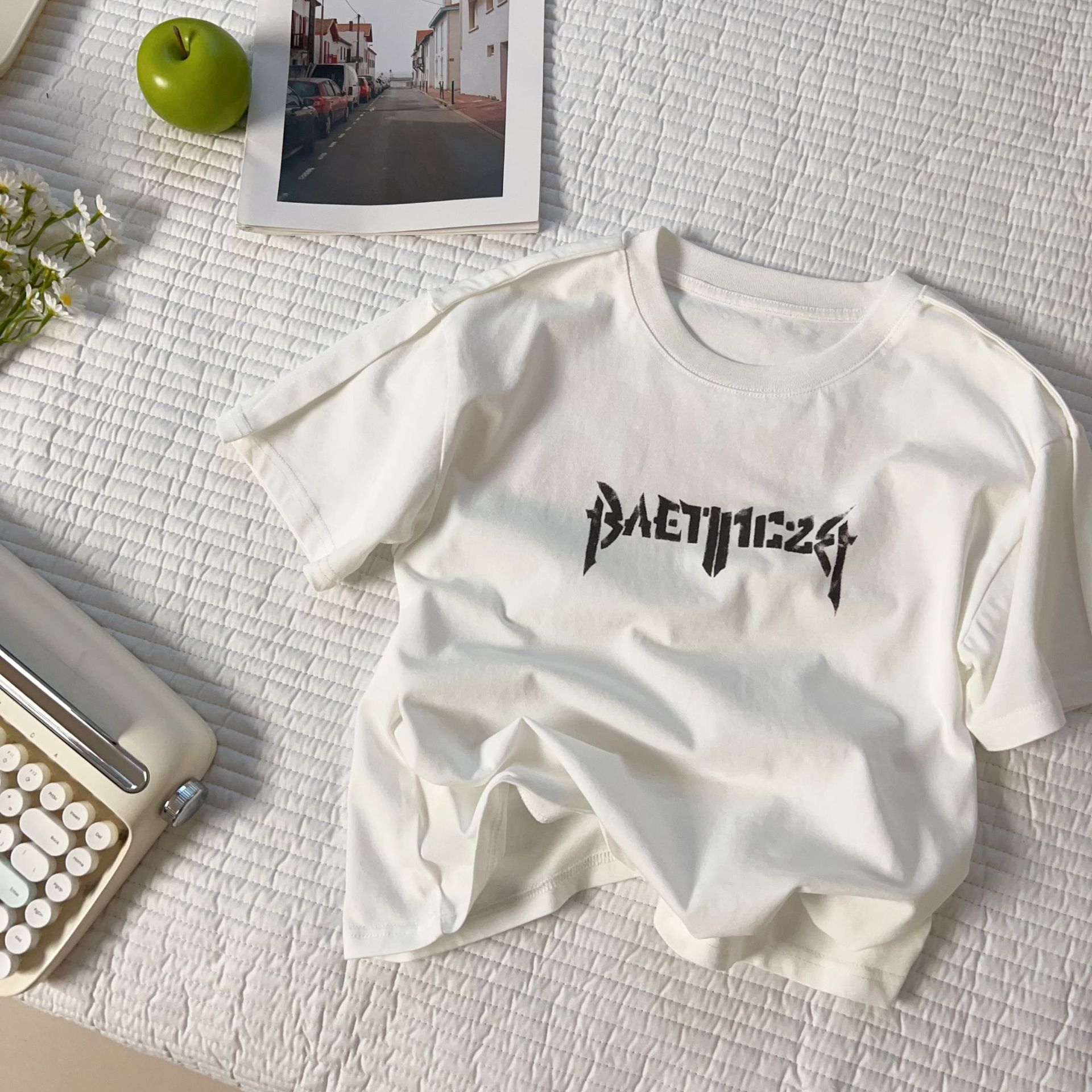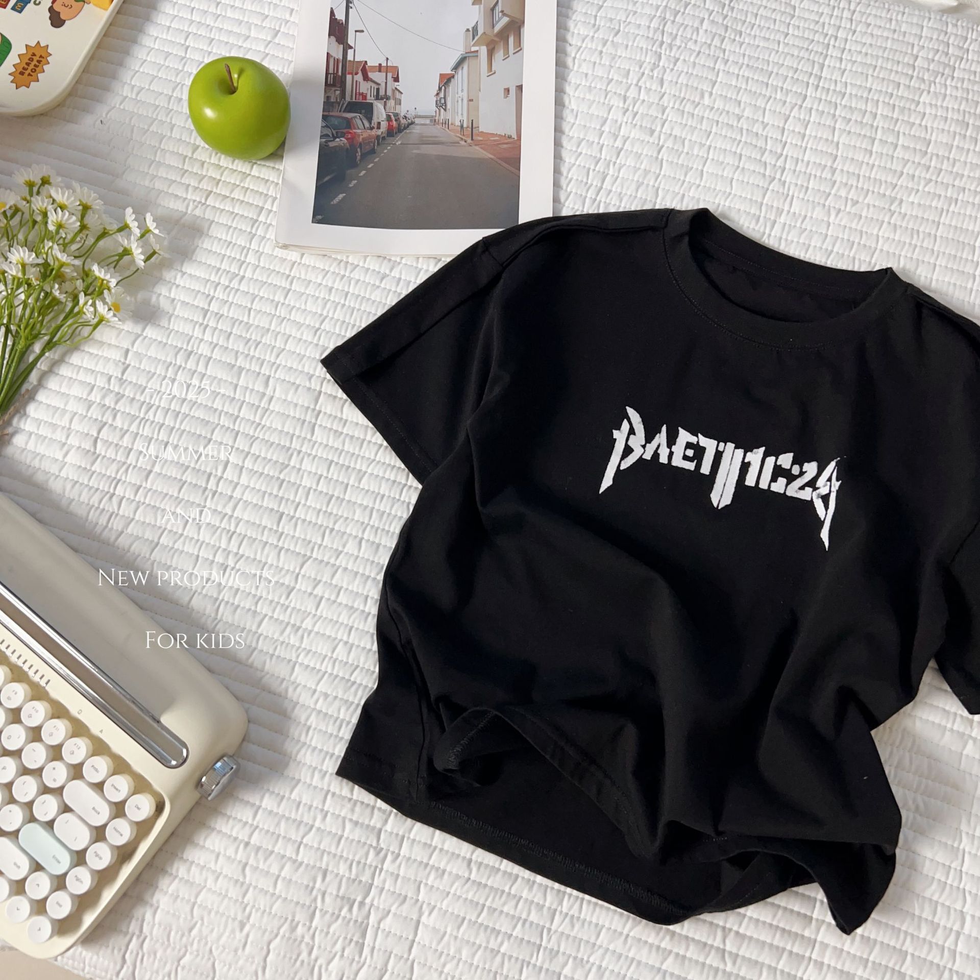 어린이 티셔츠 2025 소년 여름 새 아동복 880242 대형 어린이 인쇄 편지 반팔 티셔츠 여자 한국 스타일스토어 가기