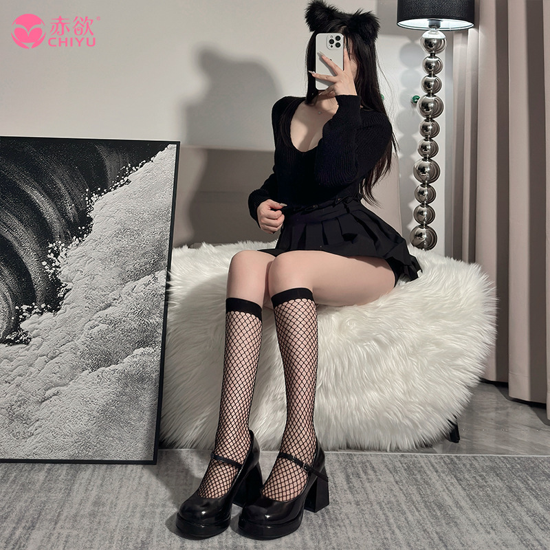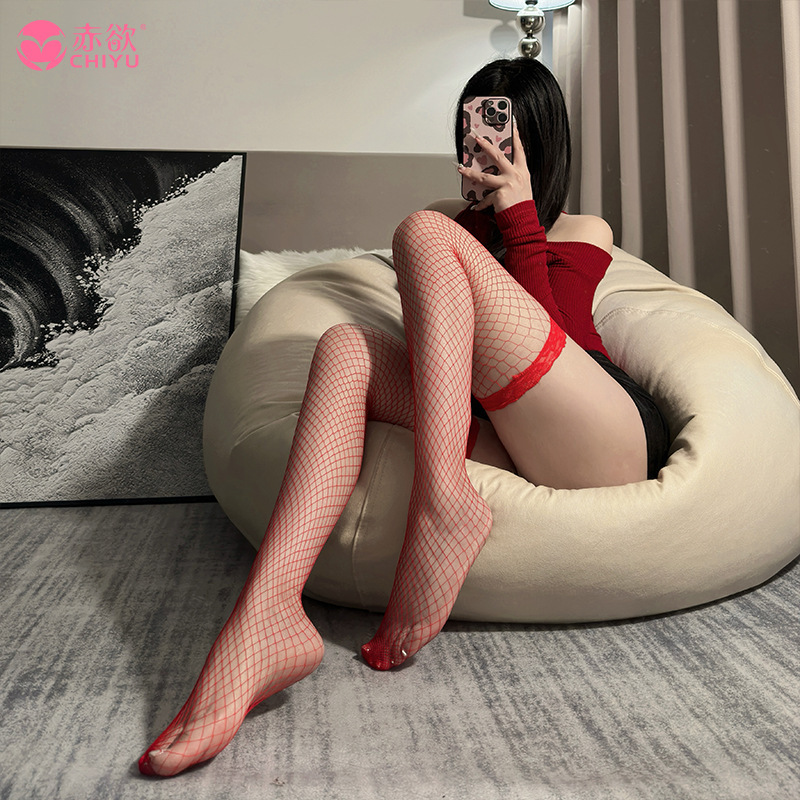 섹시한 스타킹, 검은색 스타킹, 섹시한 유혹 침대 찢어지는 스타킹, 성인용 속이 빈 망사 스타킹, 대형 긴 무릎 위 스타킹
