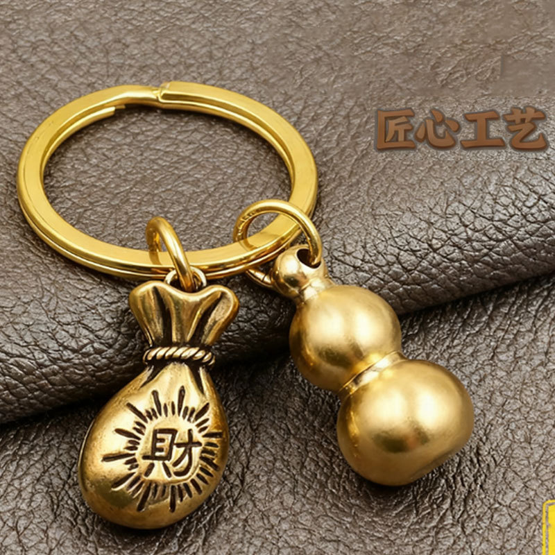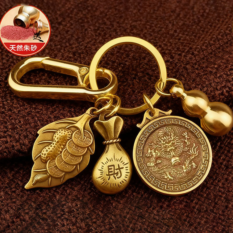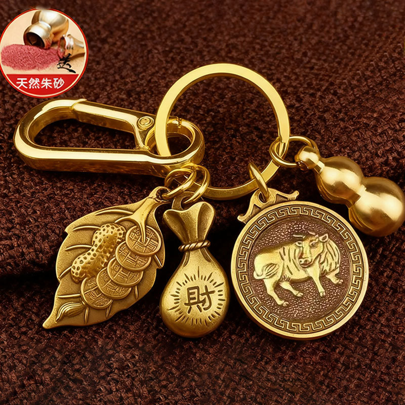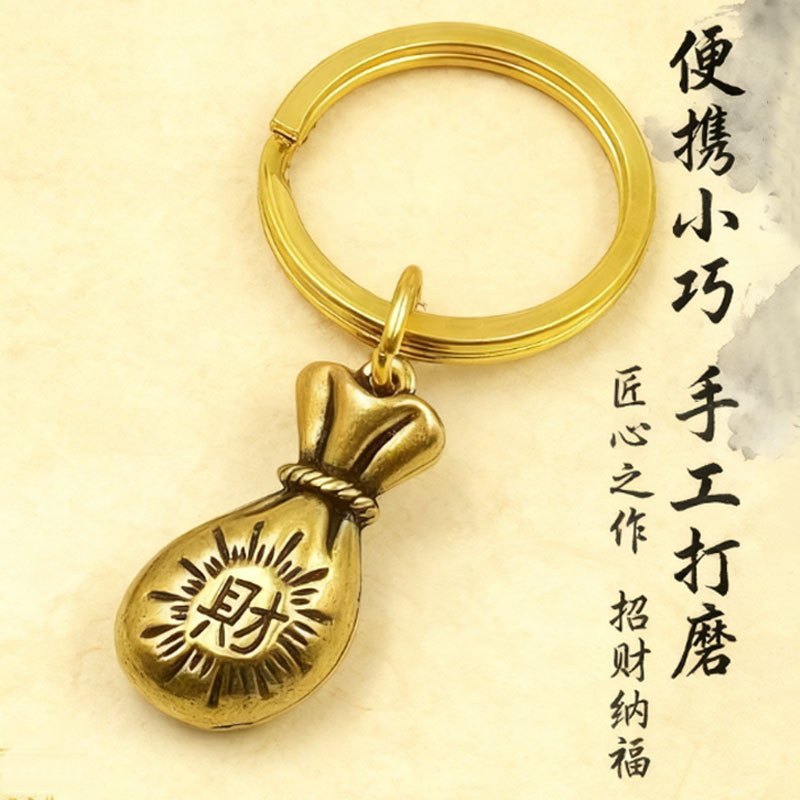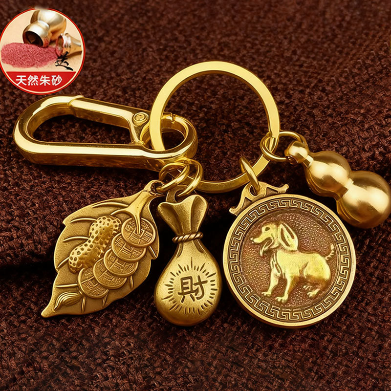 황동 조디악 행운의 가방, 돈을 만드는 단일 잎 열쇠 고리, 가정용 중국 스타일의 창의적인 자동차 열쇠 고리 펜던트스토어 가기