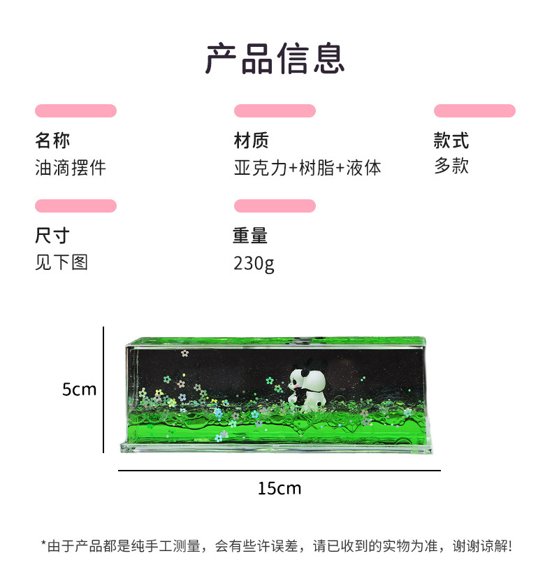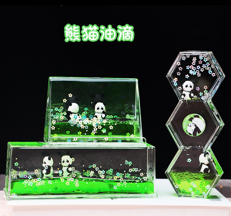 Douyin Xiaohongshu 뜨거운 판매 아크릴 팬더 오일 드롭 스트레스 릴리프 유물 장식품 데스크탑 장식 학생 생일 선물스토어 가기