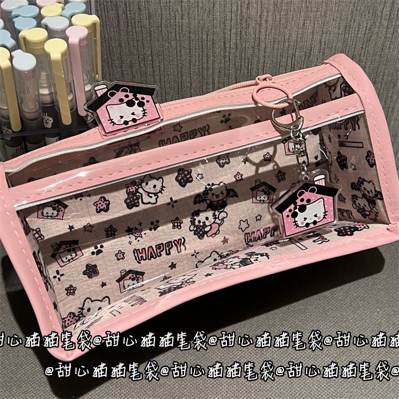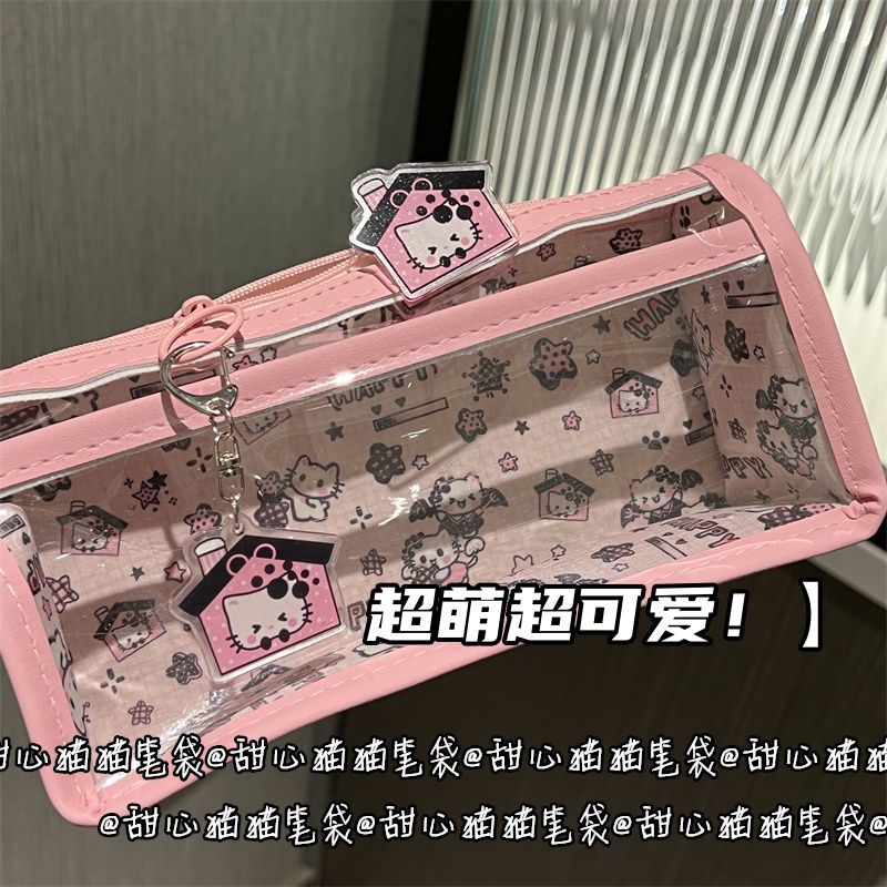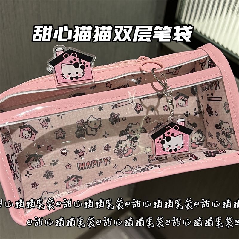 • Sweetheart Cat 더블 레이어 펜 가방 + 펜던트 + PP 클립