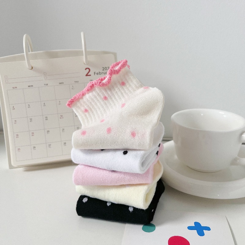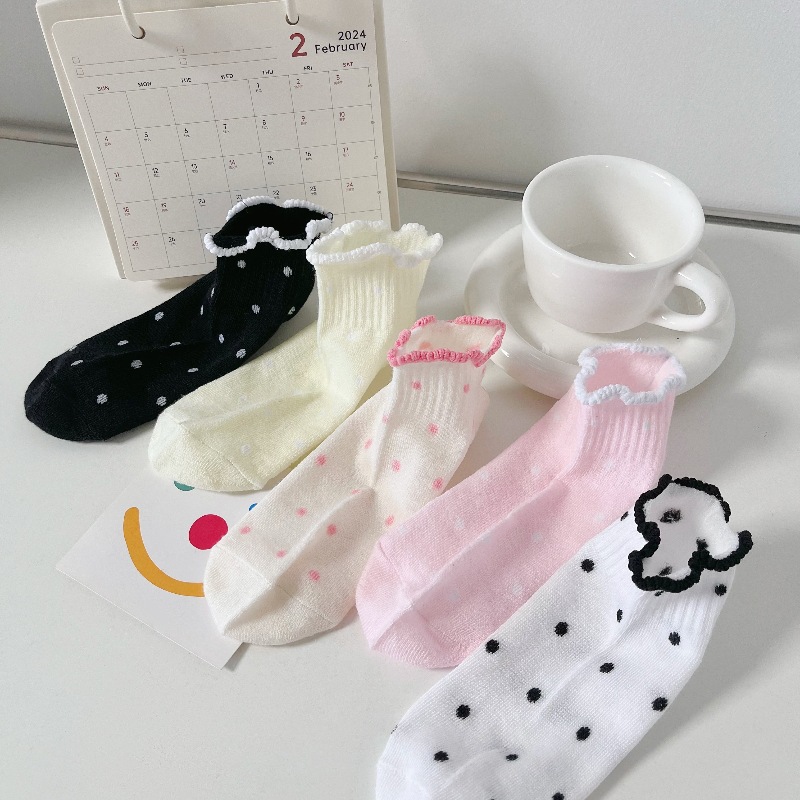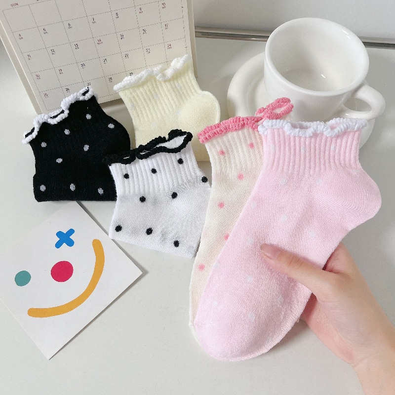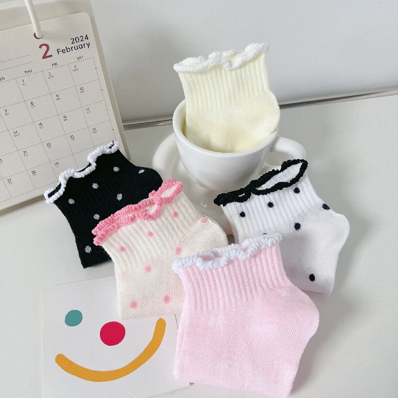 • 새로운 여성용 양말 4가지 색상 랜덤 추가 1켤레 [땡땡이 리본]