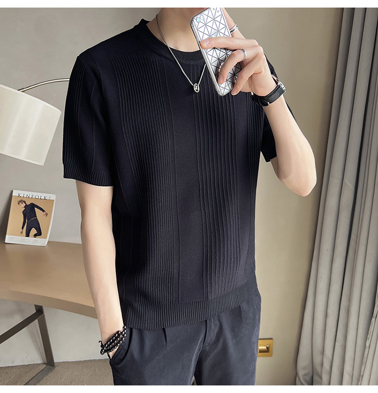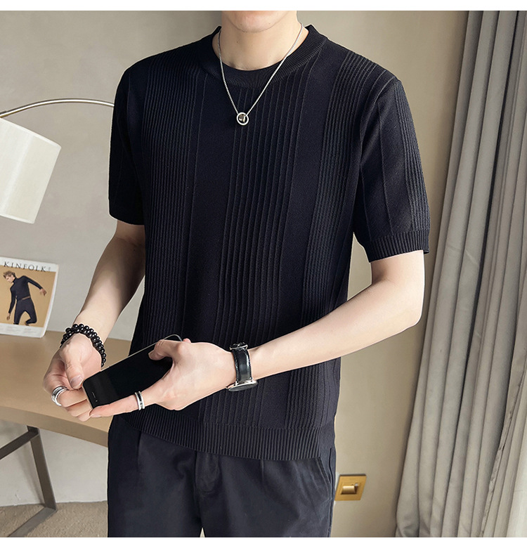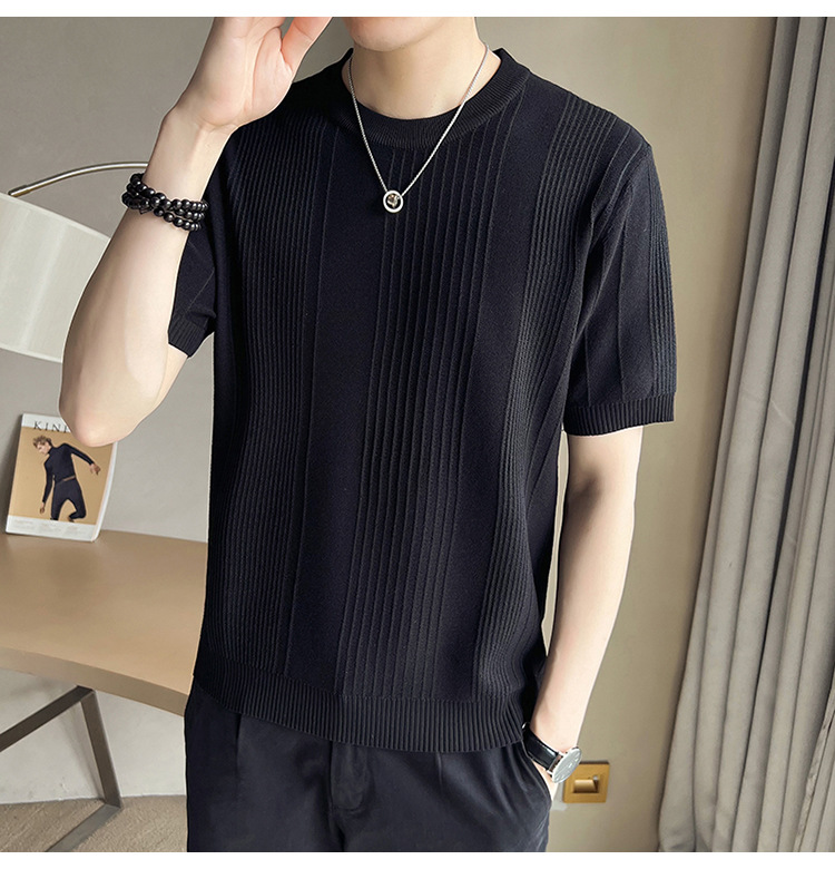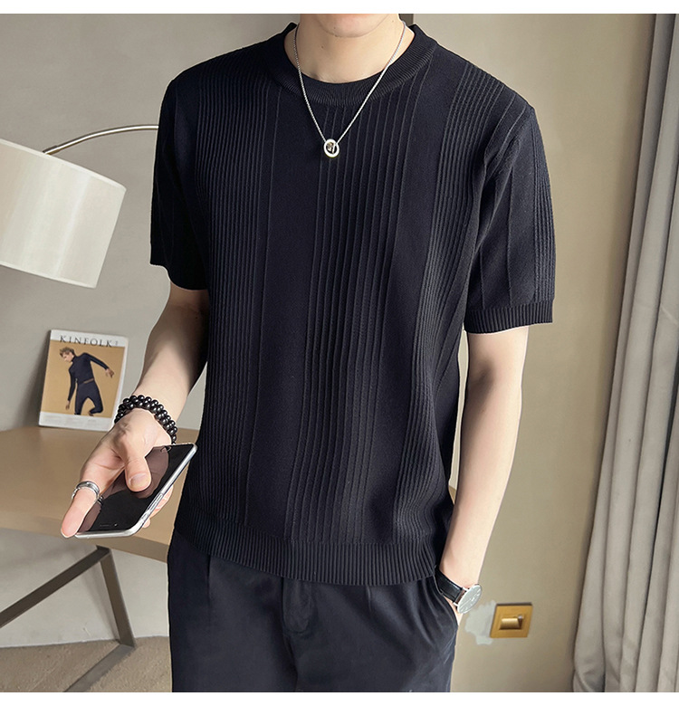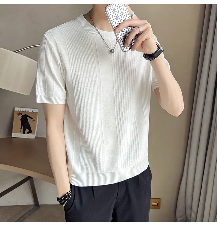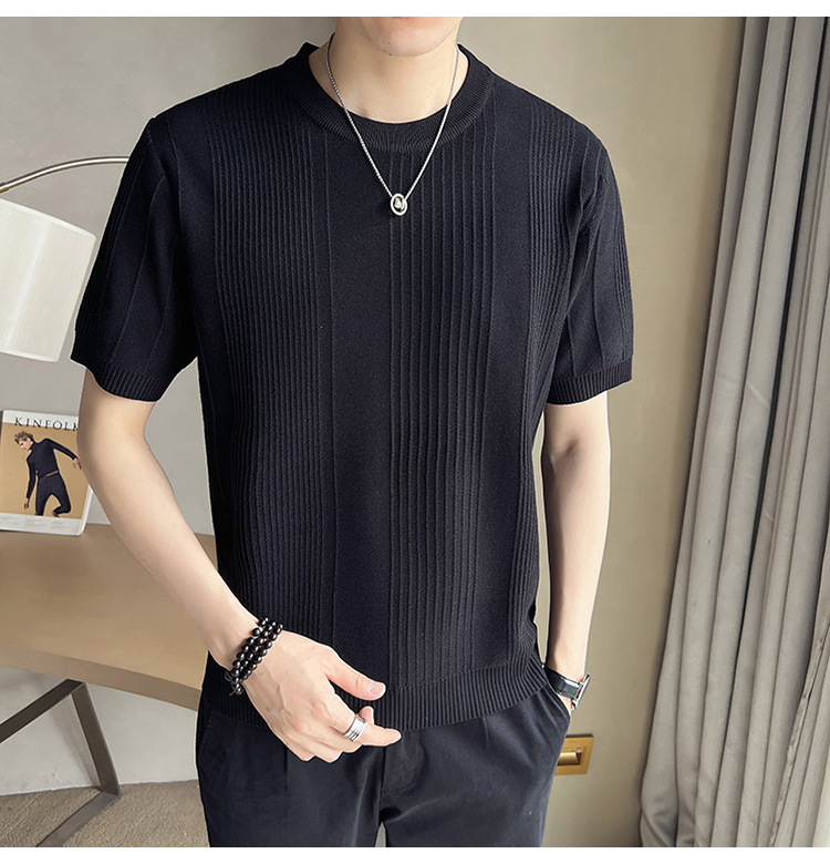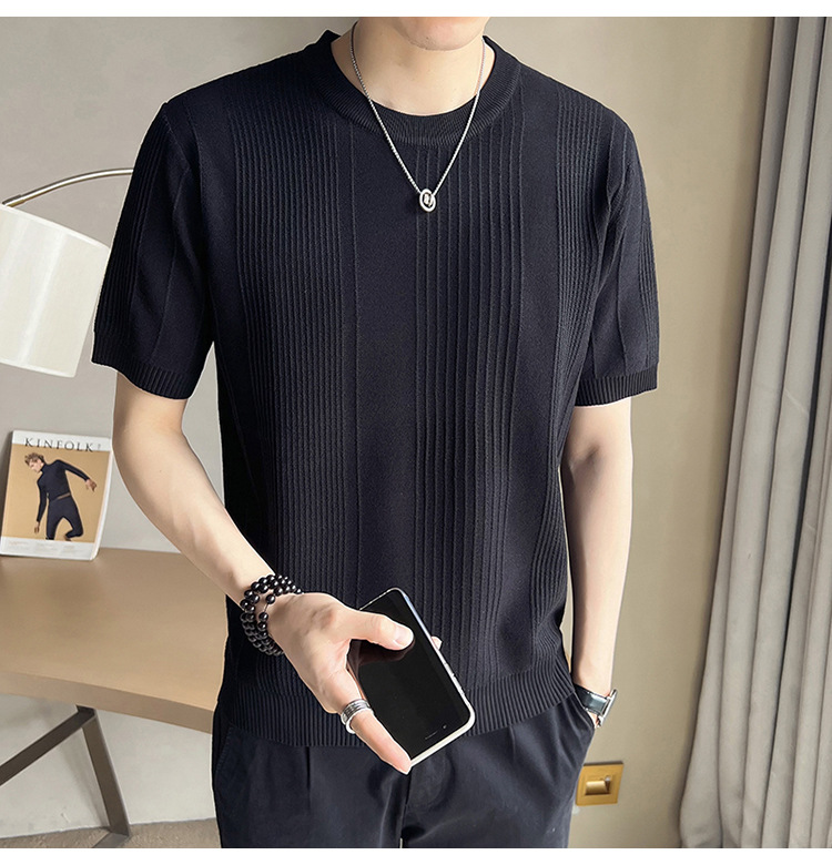 여름 새로운 라운드 넥 반팔 스웨터 남성용 아이스 실크 슬림 핏 비즈니스 티셔츠 대외 무역 국경 도매