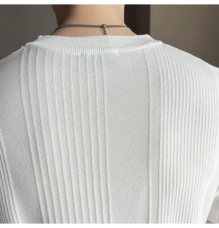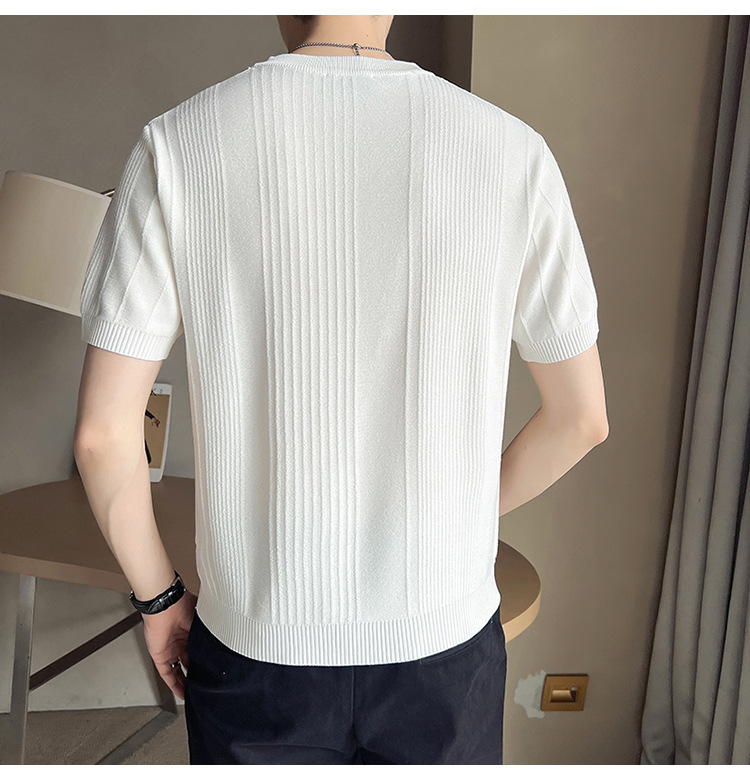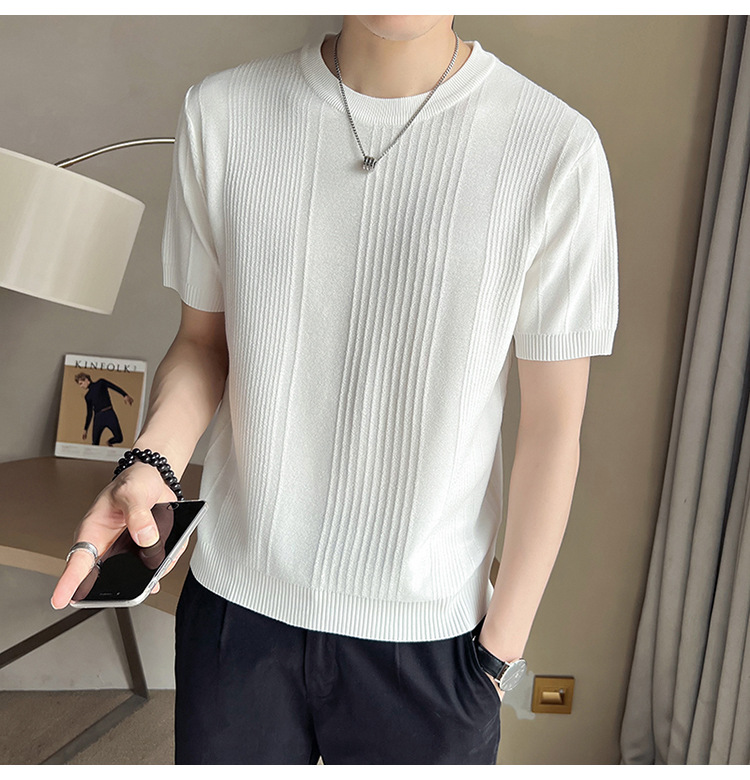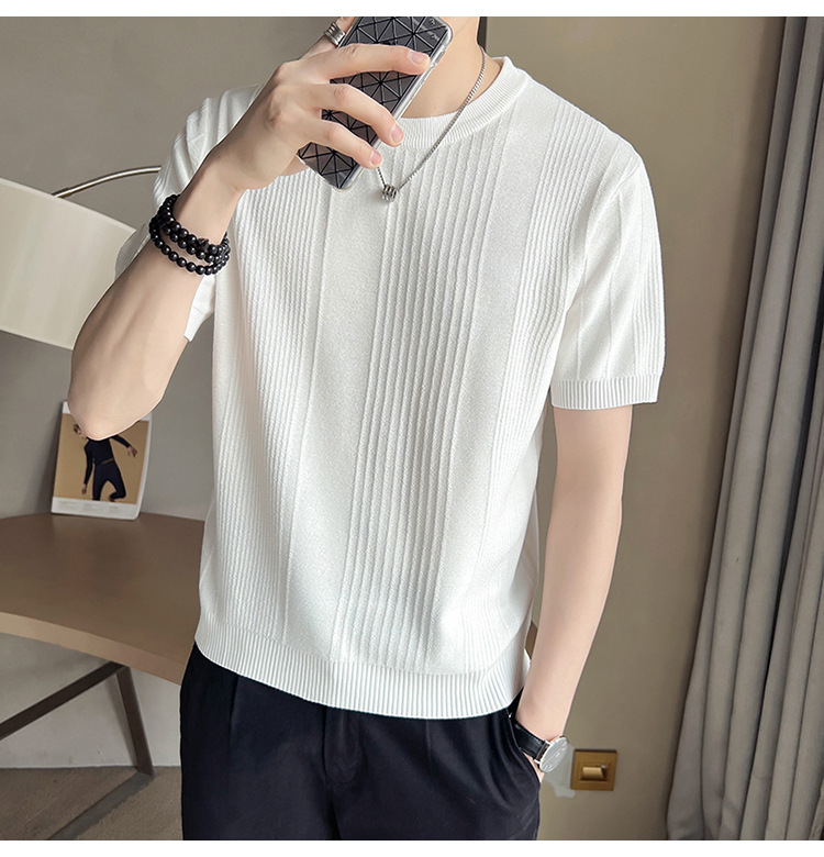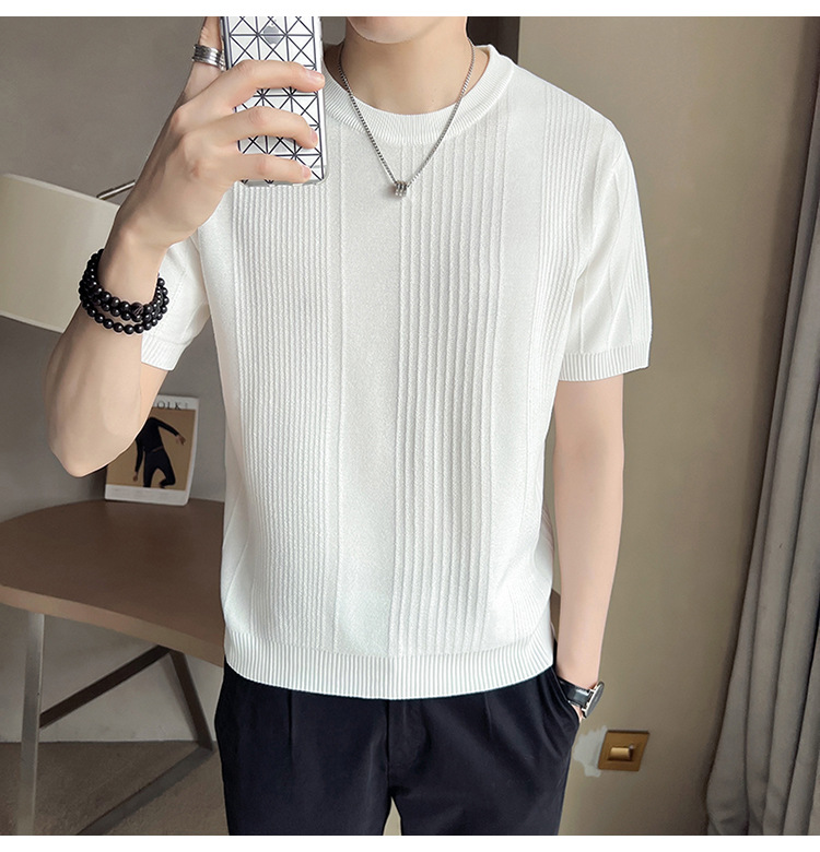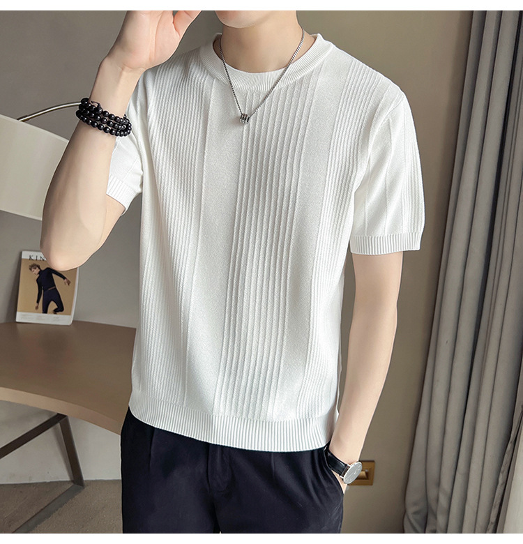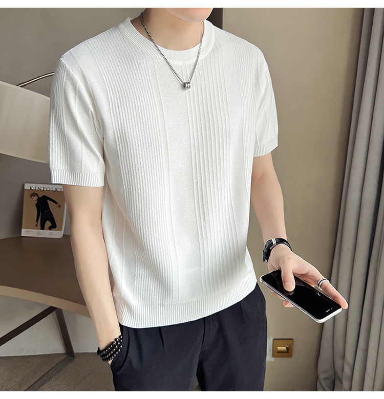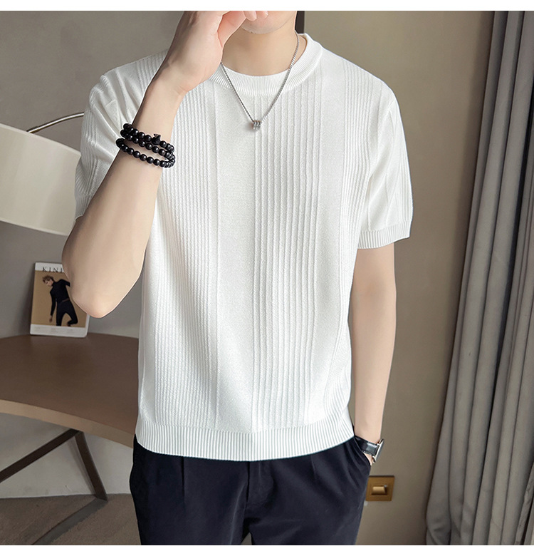 여름 새로운 라운드 넥 반팔 스웨터 남성용 아이스 실크 슬림 핏 비즈니스 티셔츠 대외 무역 국경 도매