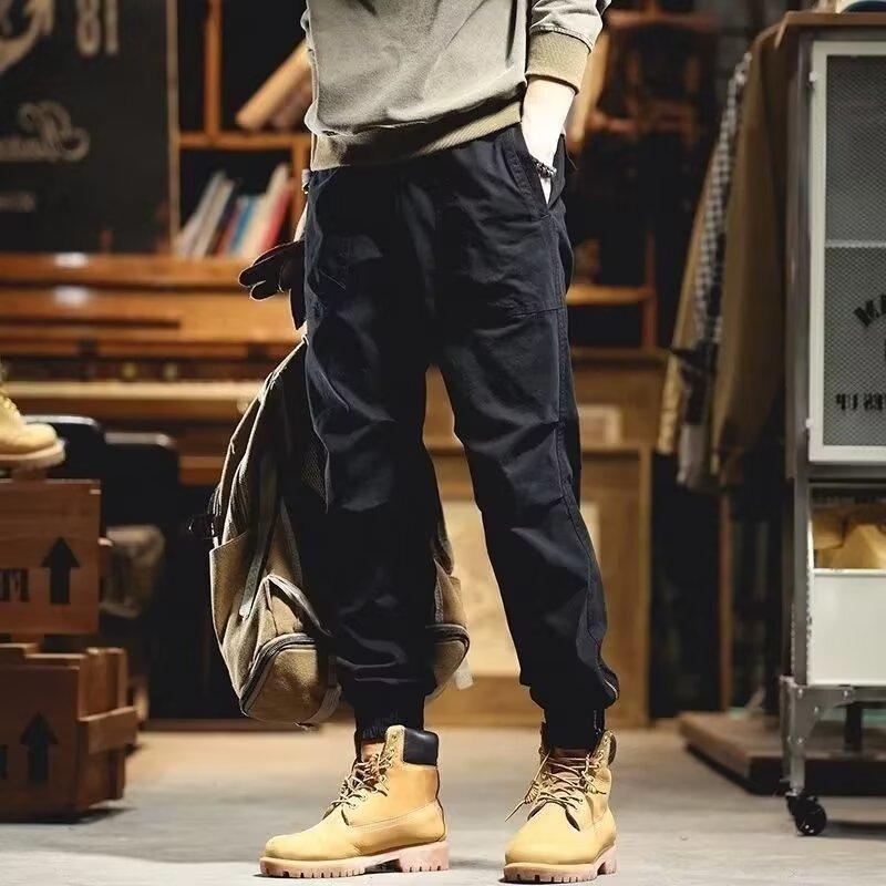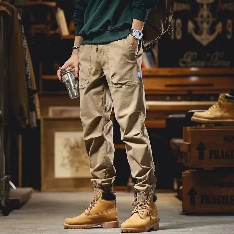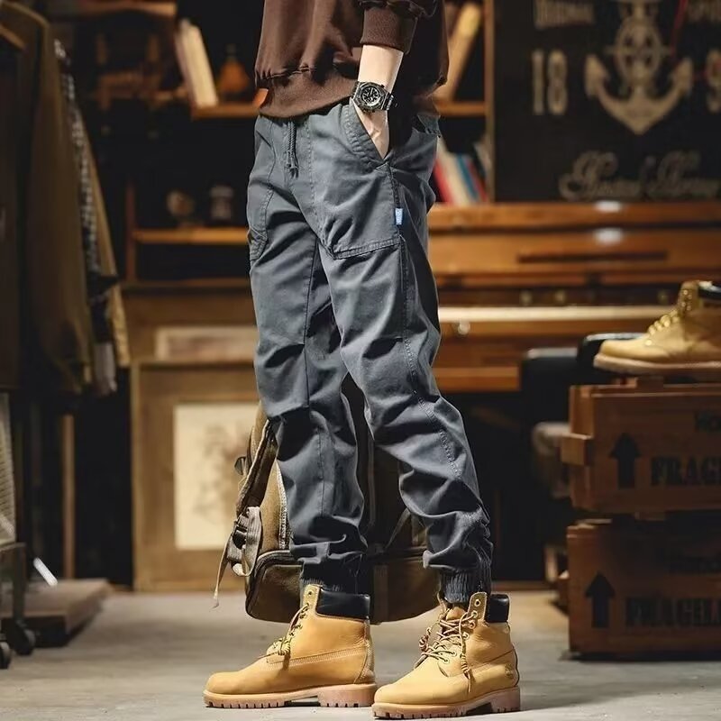 남성용 카고 팬츠, 아메리칸 레트로 신축성 있는 허리, 멀티 포켓 레깅스 캐주얼 팬츠, 트렌디한 기능성 아웃도어 스포츠 롱 팬츠