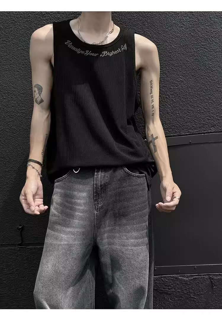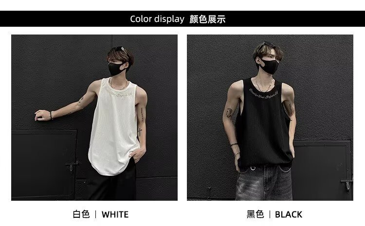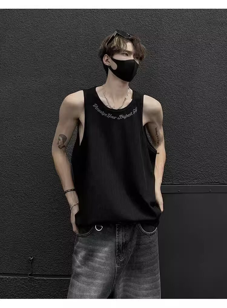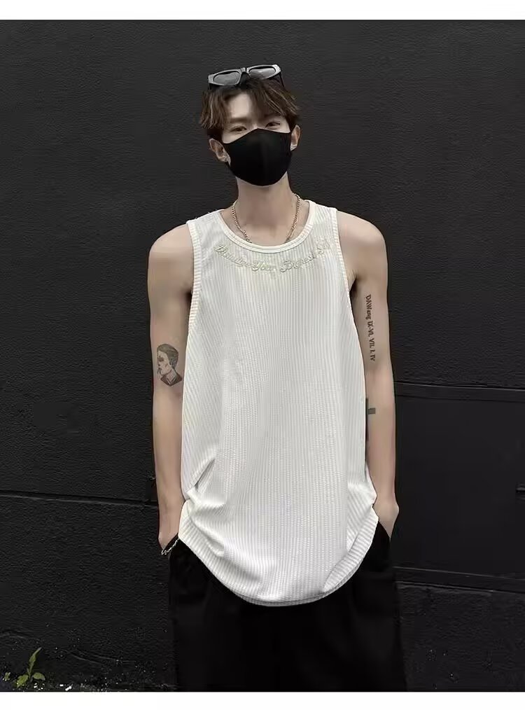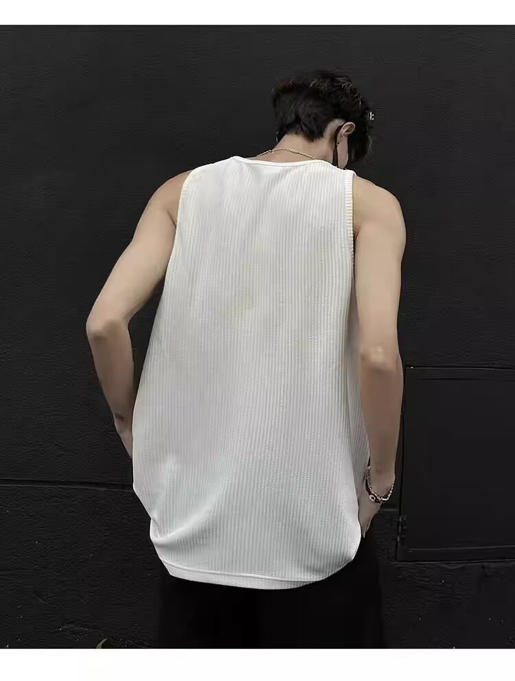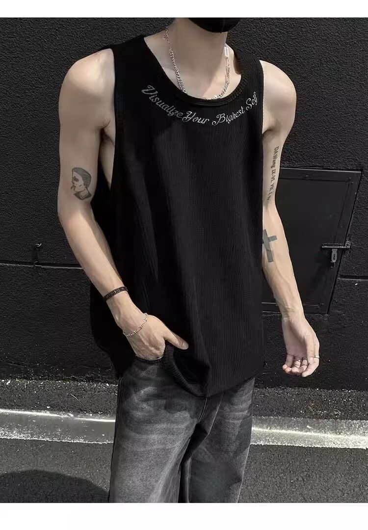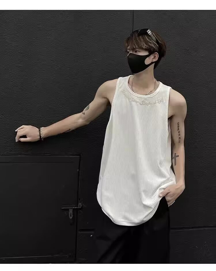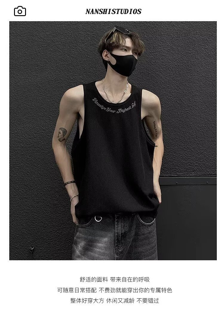 민소매 조끼 남성 여름 신작 미국 오버 사이즈 트렌디 브랜드 루즈 캐주얼 조끼 티셔츠 남성 의류스토어 가기