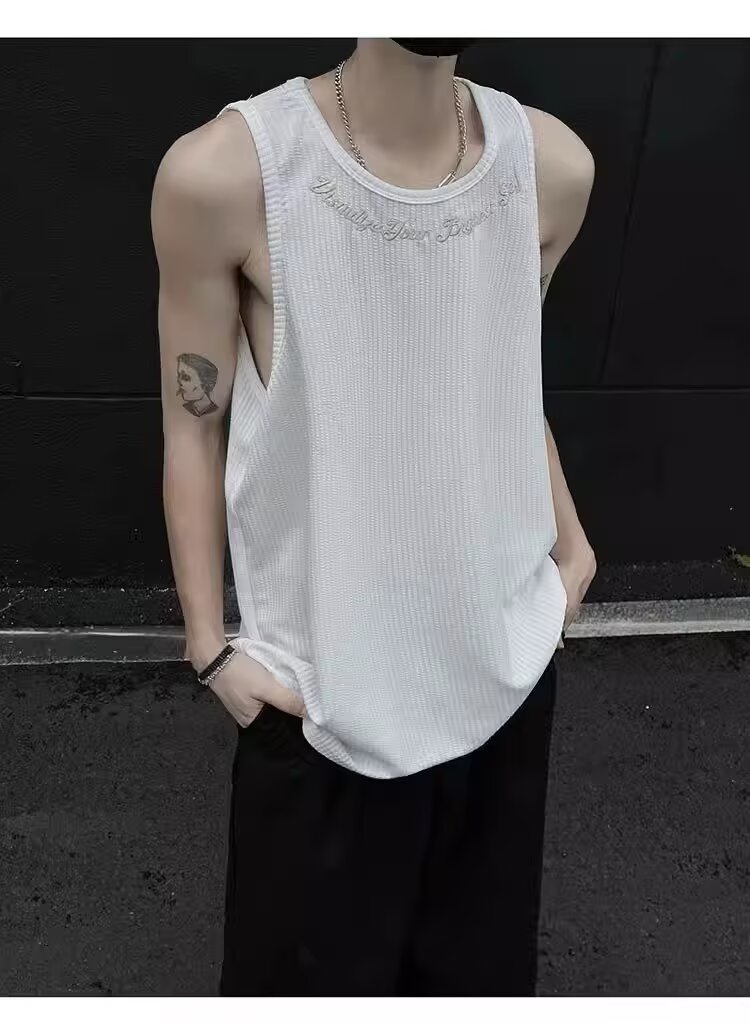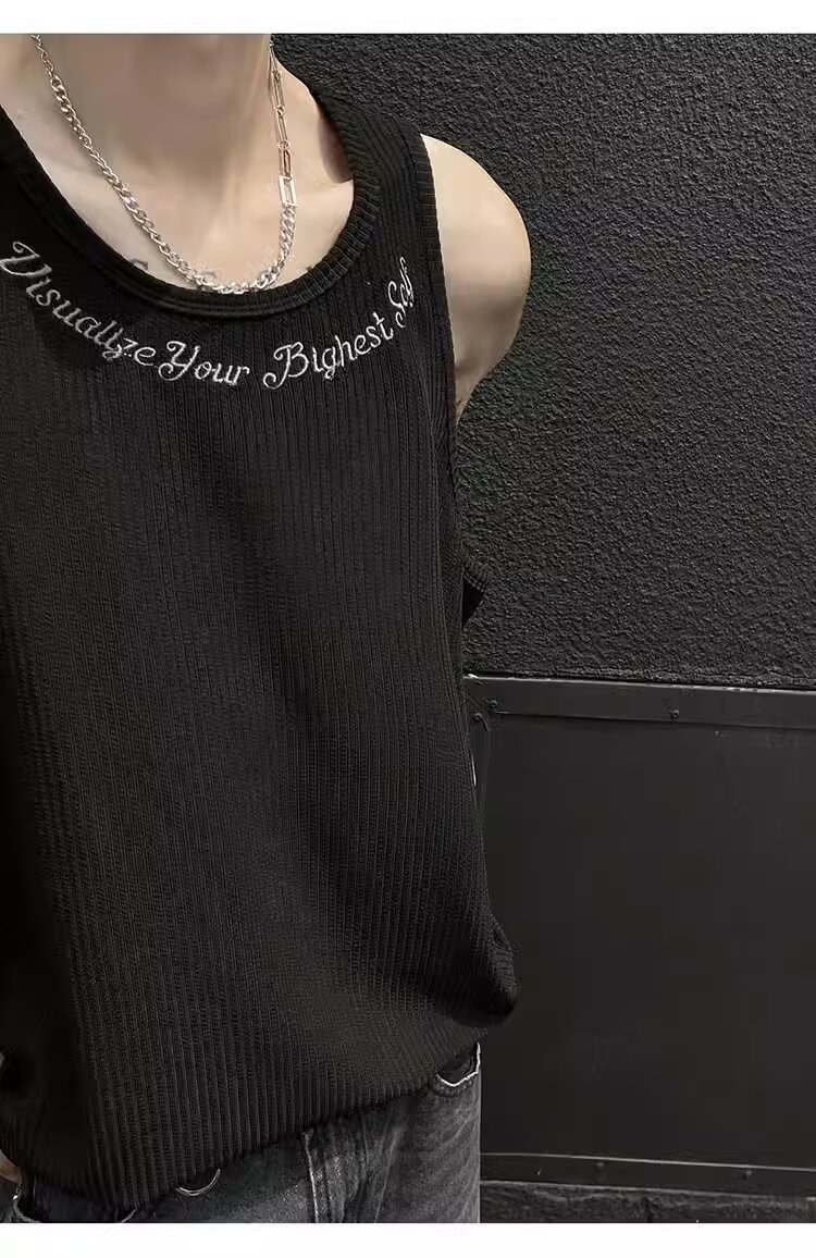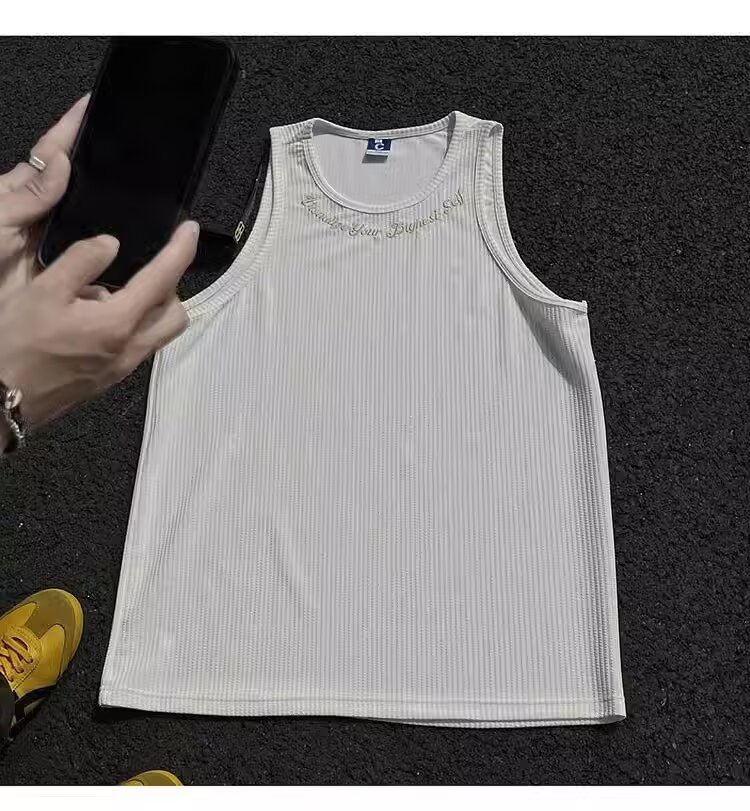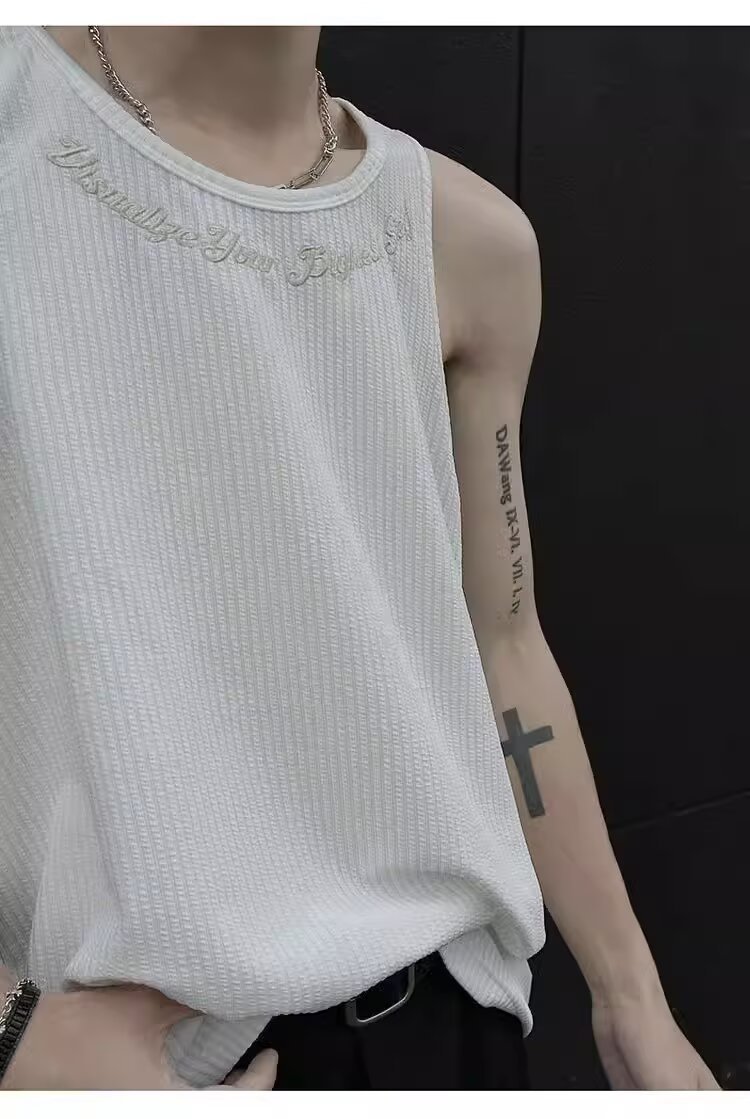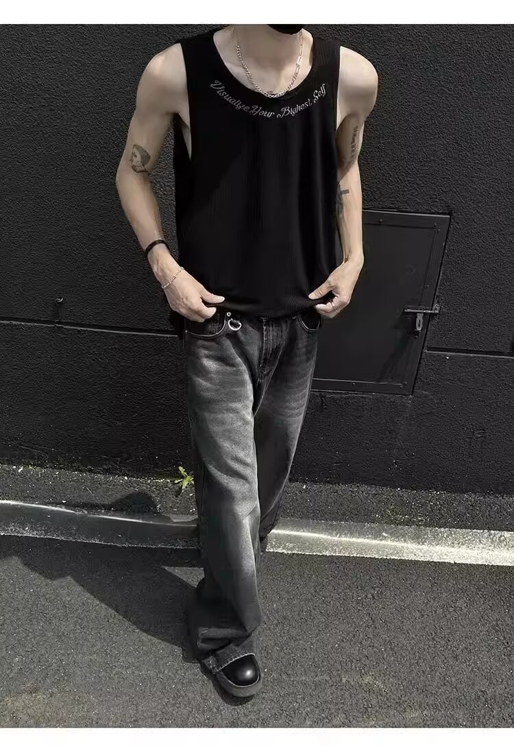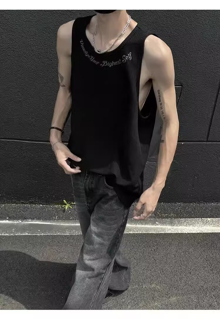 민소매 조끼 남성 여름 신작 미국 오버 사이즈 트렌디 브랜드 루즈 캐주얼 조끼 티셔츠 남성 의류스토어 가기