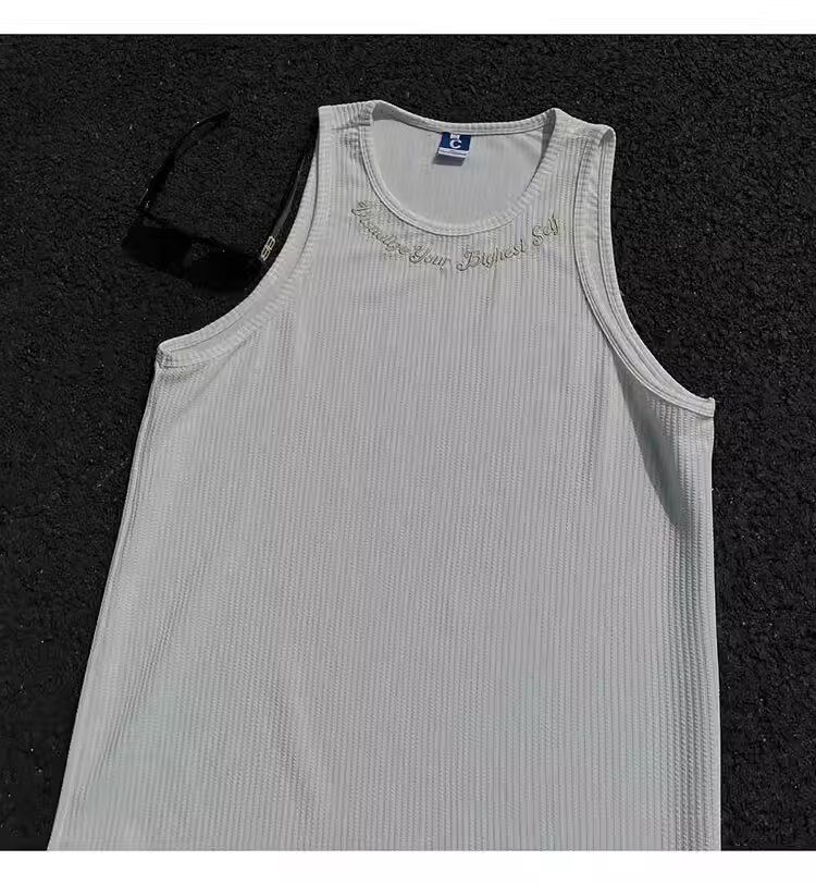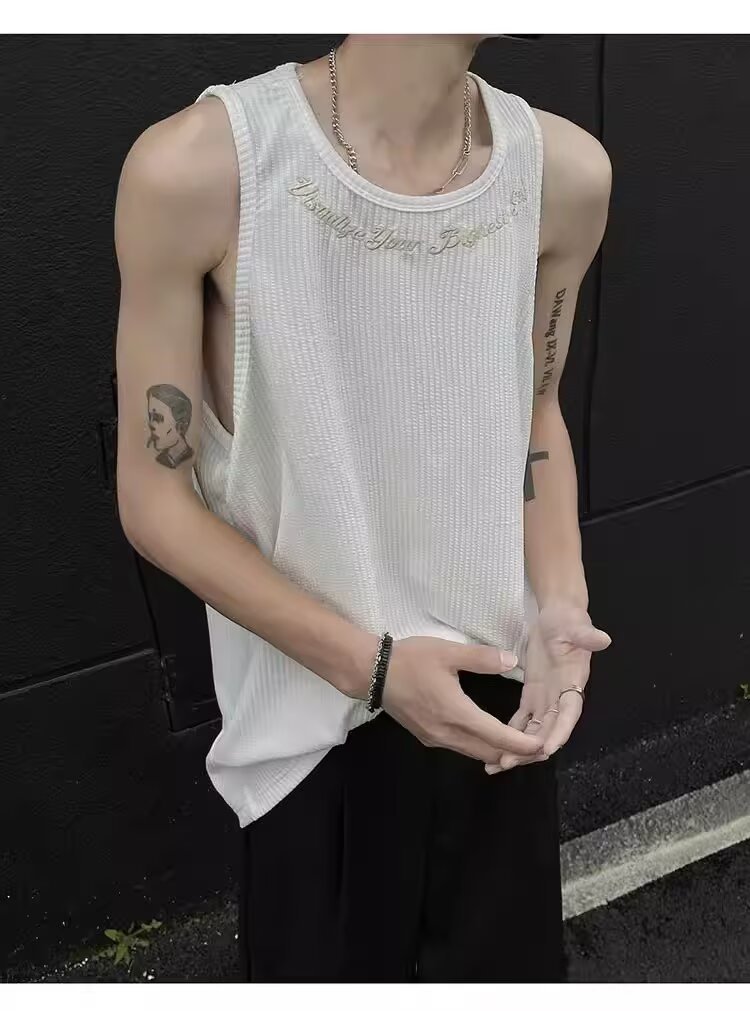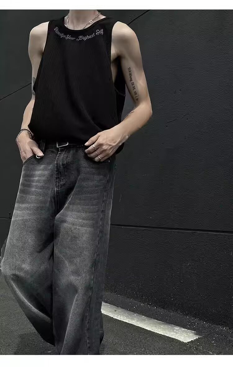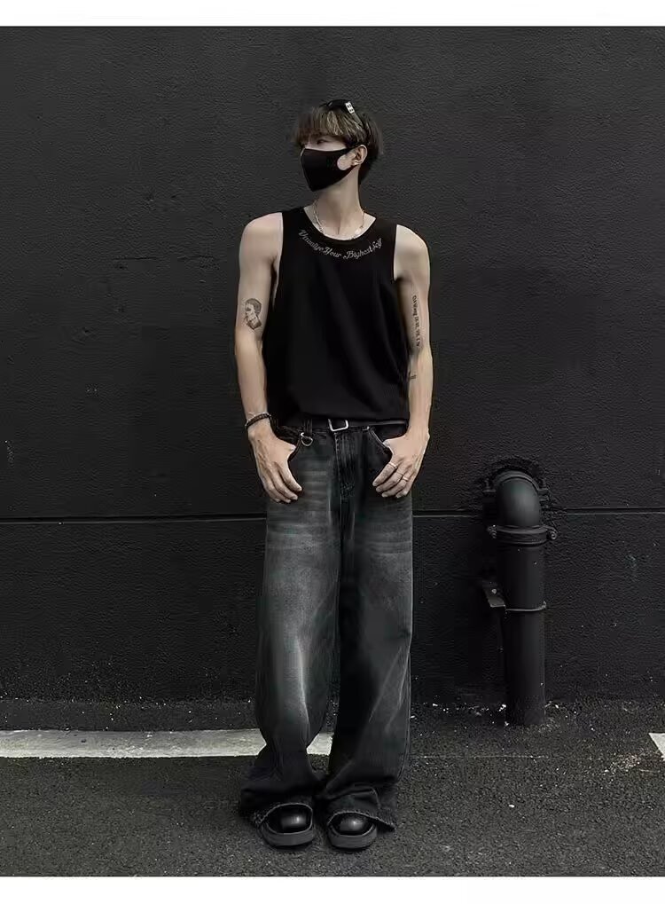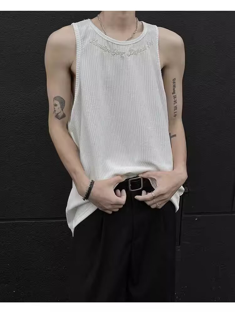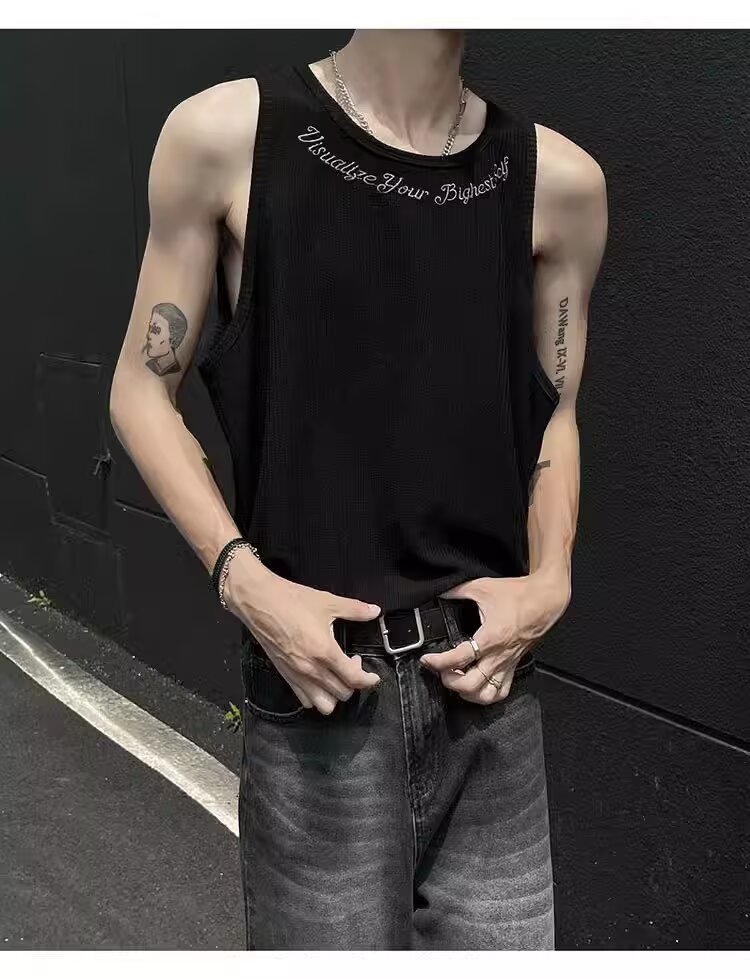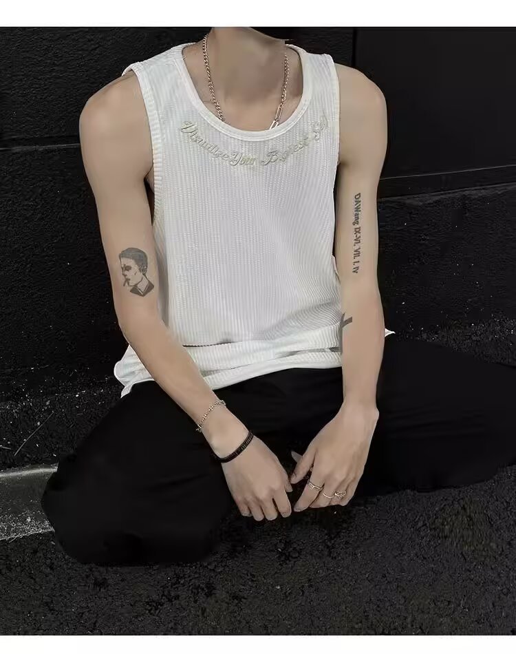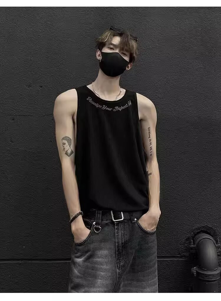 민소매 조끼 남성 여름 신작 미국 오버 사이즈 트렌디 브랜드 루즈 캐주얼 조끼 티셔츠 남성 의류스토어 가기