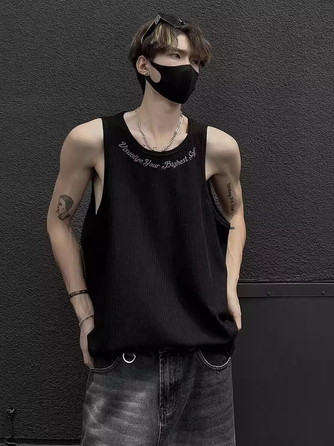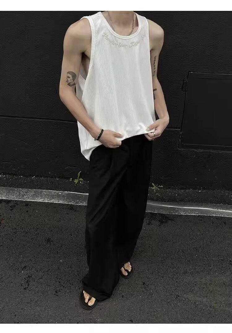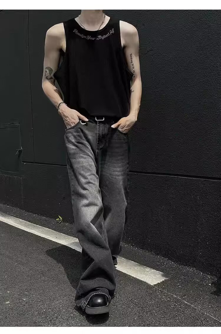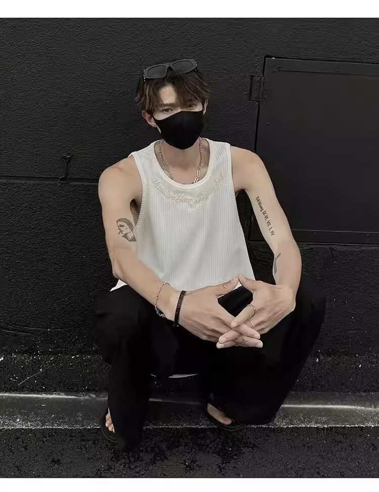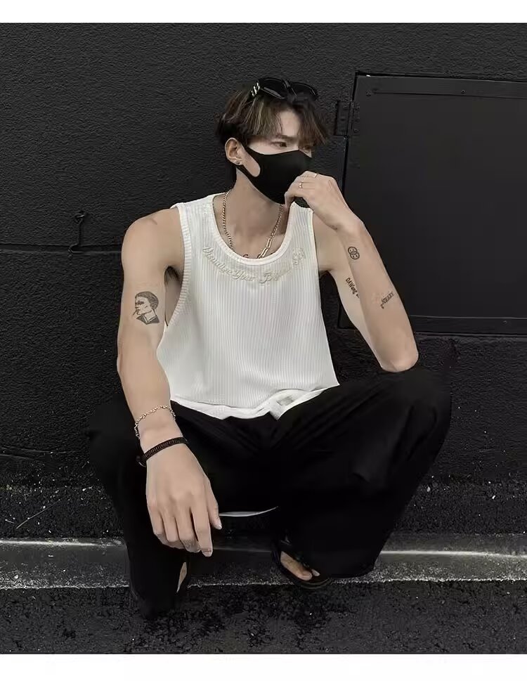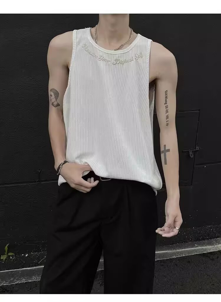 민소매 조끼 남성 여름 신작 미국 오버 사이즈 트렌디 브랜드 루즈 캐주얼 조끼 티셔츠 남성 의류스토어 가기