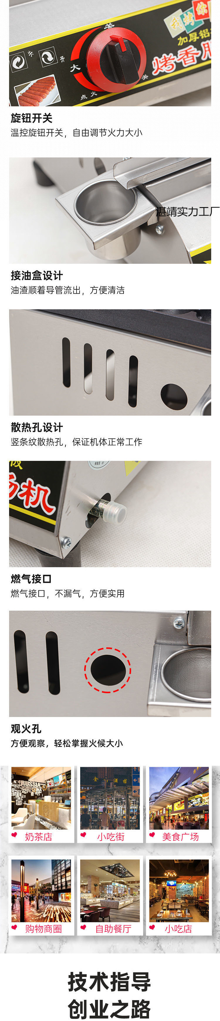골드 크리스피 소시지 구이 기계 상업용 가스 인터넷 연예인 야시장 구이 스템치크 소시지 기계 수제스토어 가기