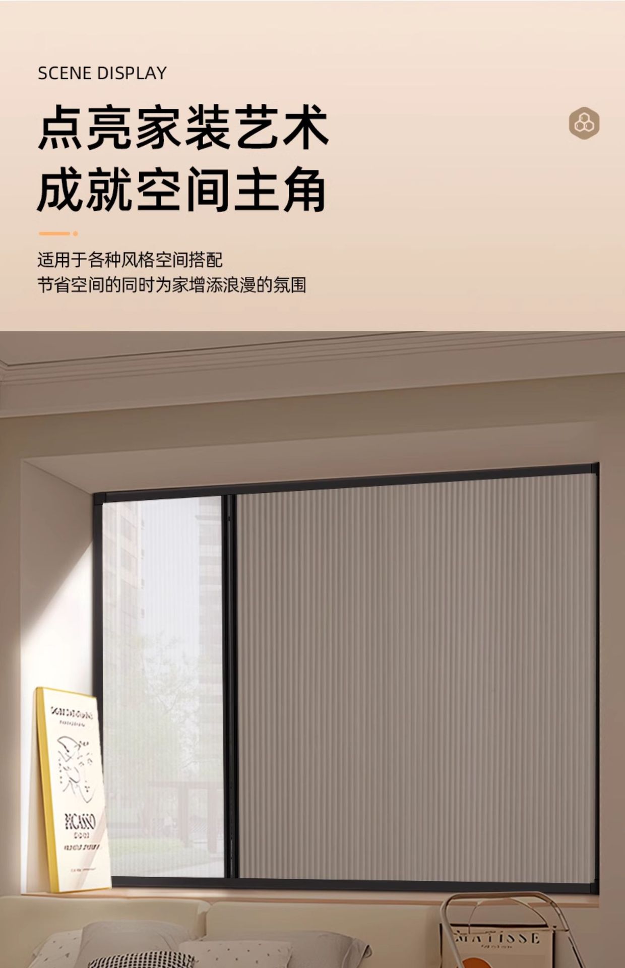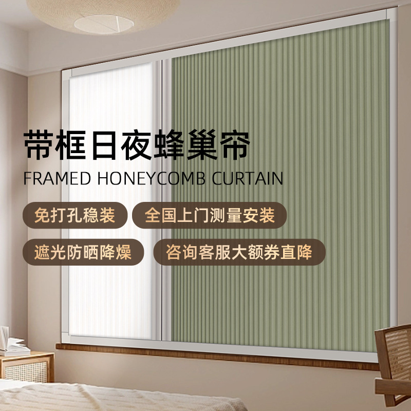 주야간 커튼, 허니컴 커튼, 침실 창문, 펀치 없는 허니컴 차양, 슬라이딩 차광, 보이지 않는 접이식 블라인드스토어 가기