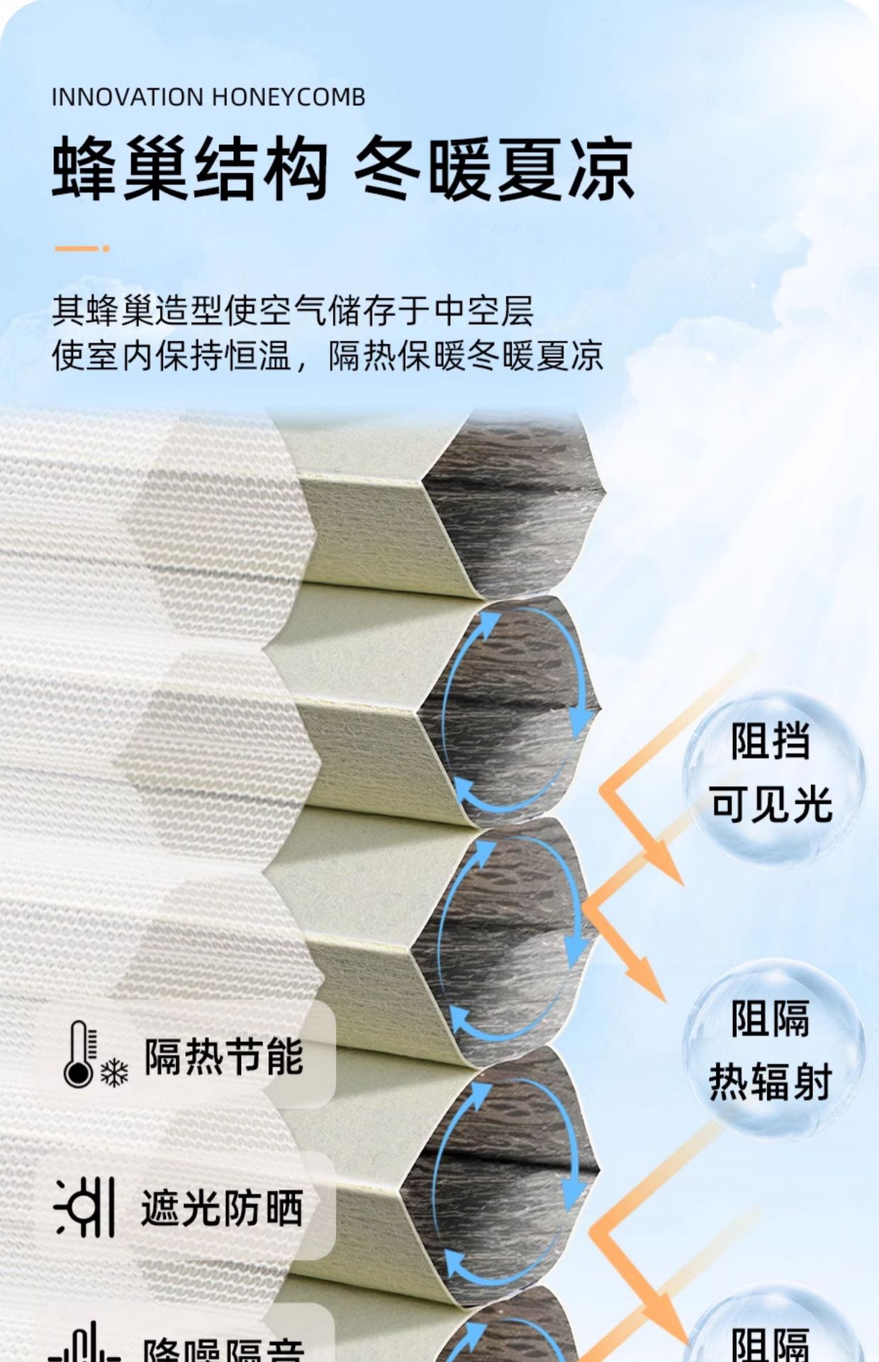 • [차양 및 단열] 푸른 하늘과 흰 구름으로 완전 암막 + 통기성이 뛰어난 이중 흰색 거즈