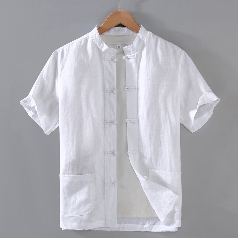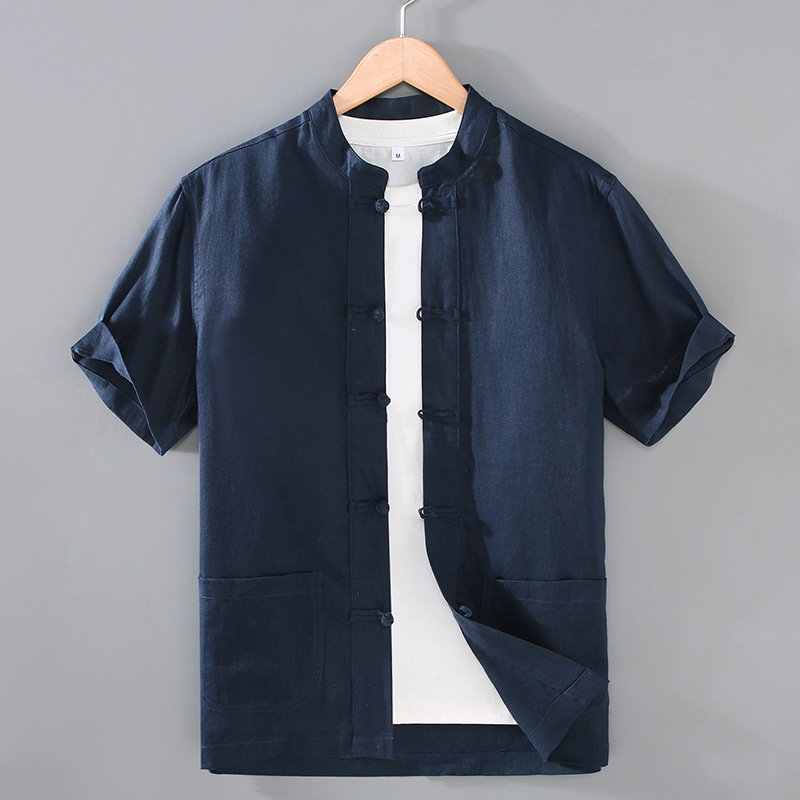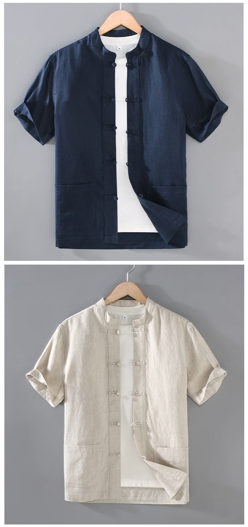 205 여름 중국 스타일 코튼 린넨 반팔 셔츠 남성용 중국 스타일 복고풍 버튼 당나라 정장 Hanfu 탑 남성용 대형스토어 가기